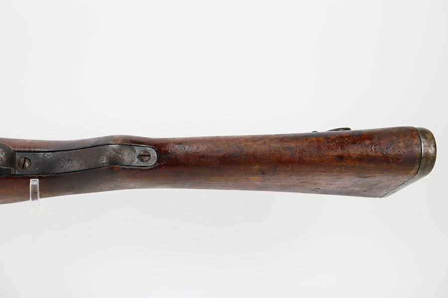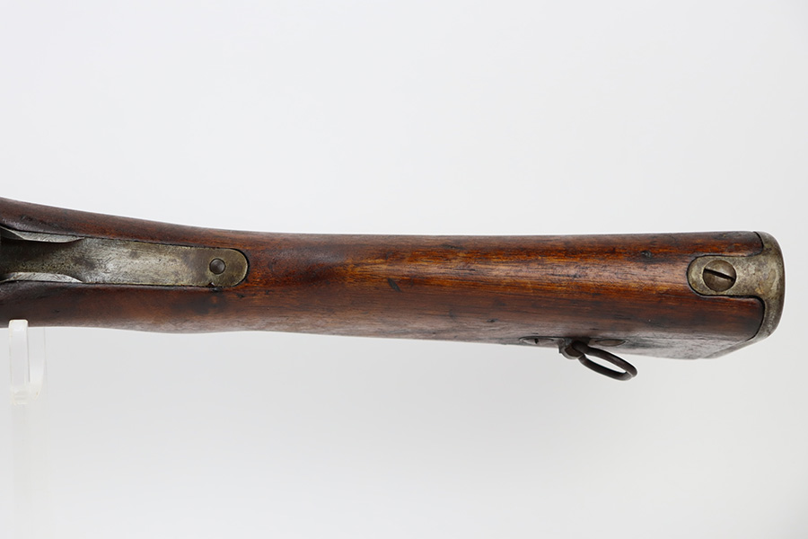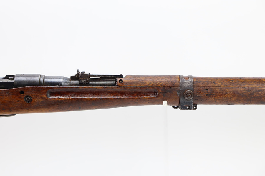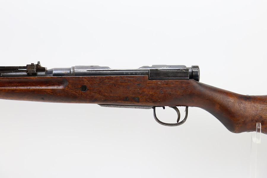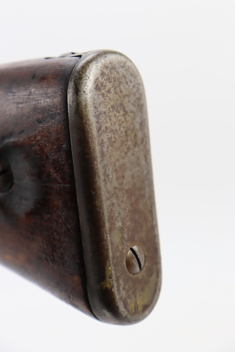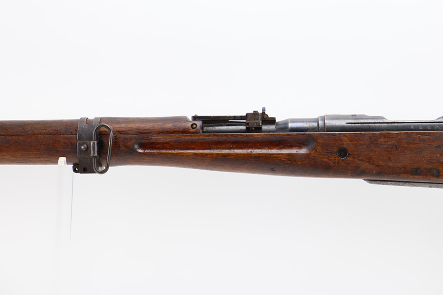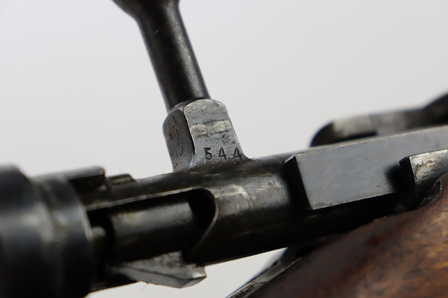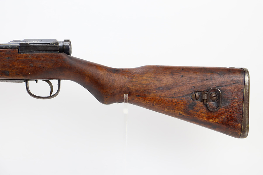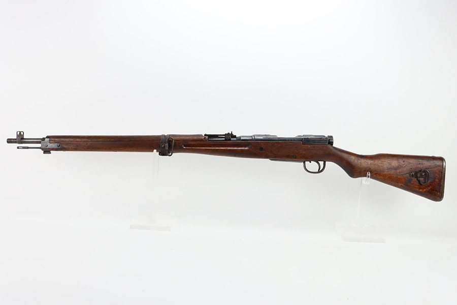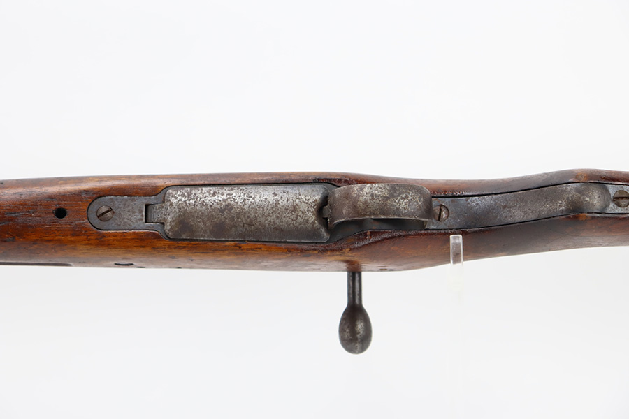 10/6/23 – This is a nice example of an Arisaka Type 99 rifle issued to the Japanese military during WW2. It is all matching with a completely intact Imperial mum stamp on the receiver. The bluing rates roughly 85% with thinning on the barrel and floor plate. While there isn’t a ton of actual finish loss, there is obvious spotty oxidation covering the metal parts. Some light surface rust on the floor plate. The stock shows the typical signs of wear and use. Mint bore.