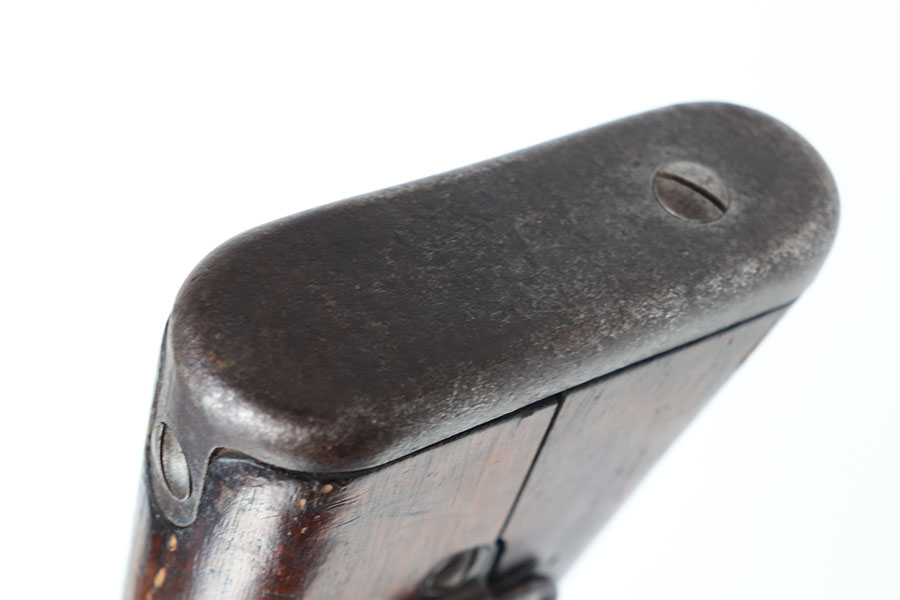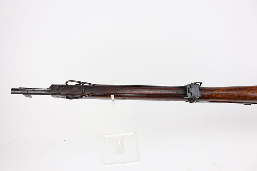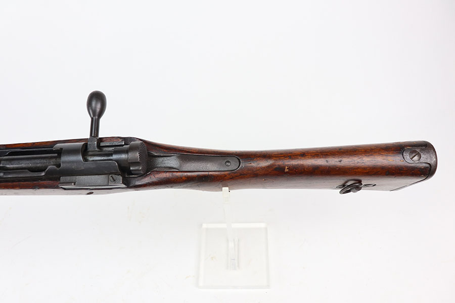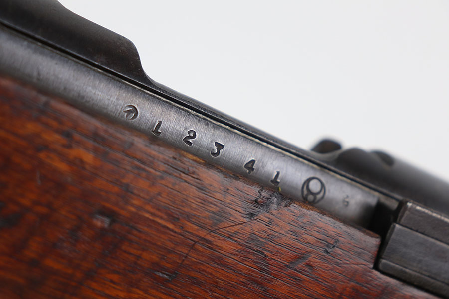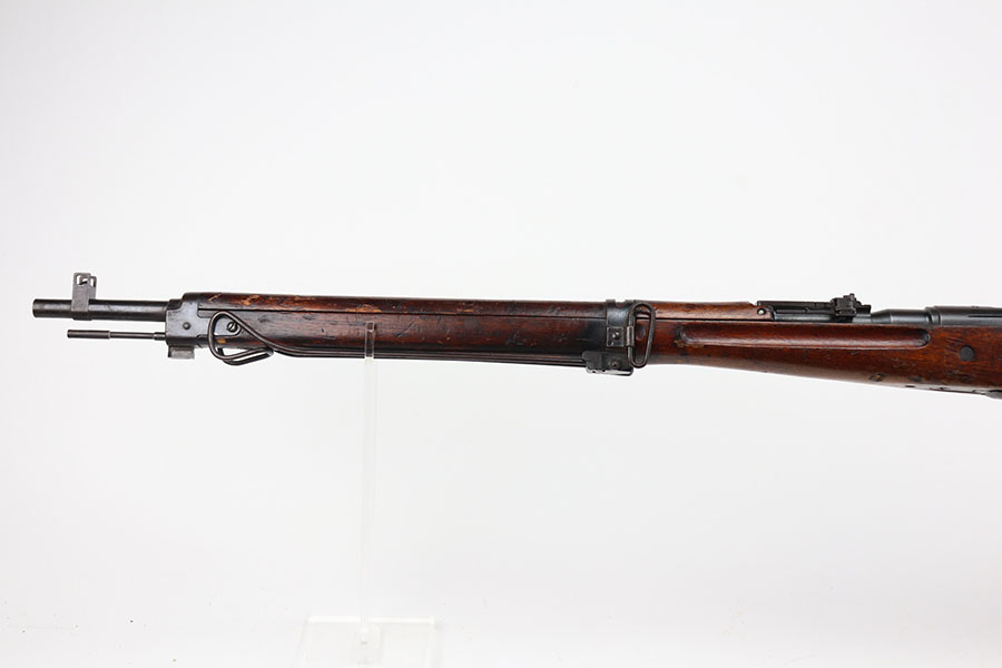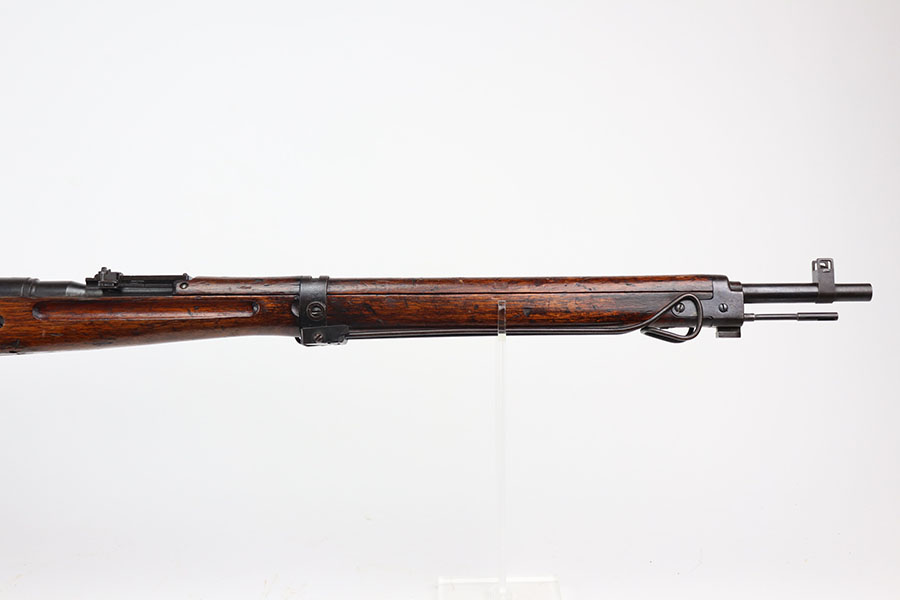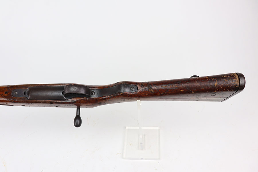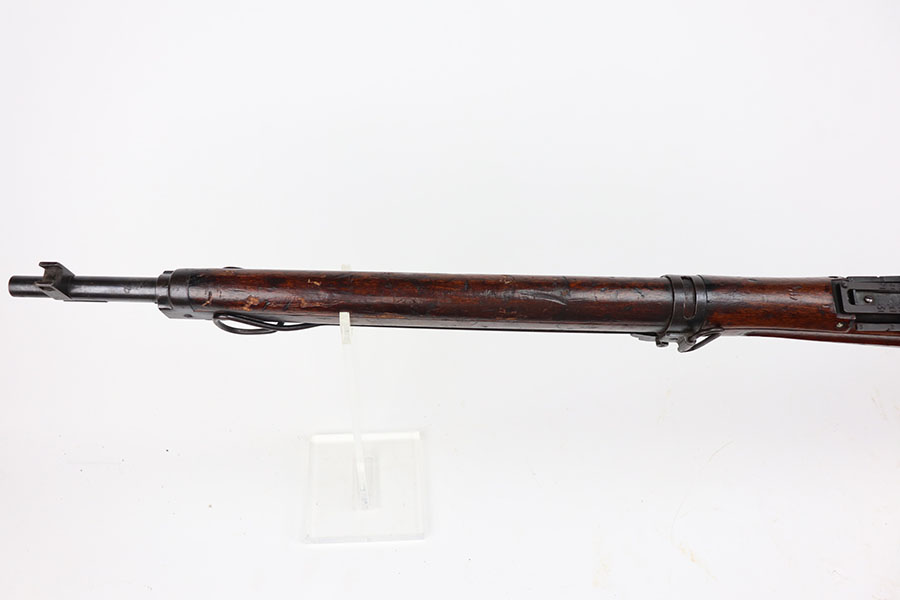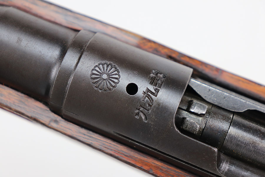 1/26/21 – This is an excellent example of an Arisaka Type 99 rifle issued to the Japanese military during WW2. This one comes with the original monopod and cleaning rod. It also has a fully intact mum. All matching throughout, including bolt, bayo lug, receiver, firing pin, cocking knob. It is in good condition overall, retaining most of its finish.The stock has various scratches, dings, and bruises throughout. The bore is excellent – shiny with strong rifling.