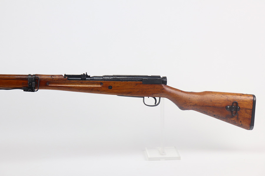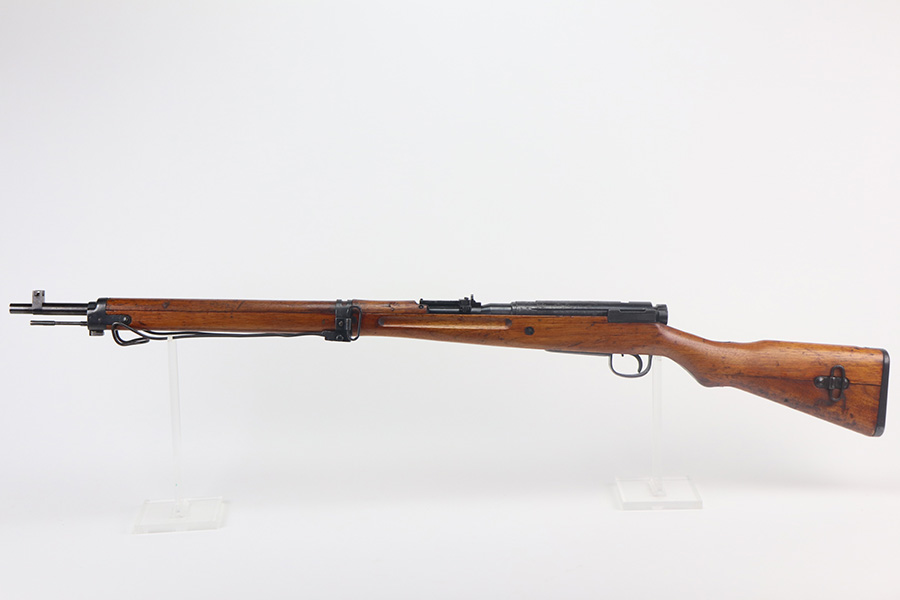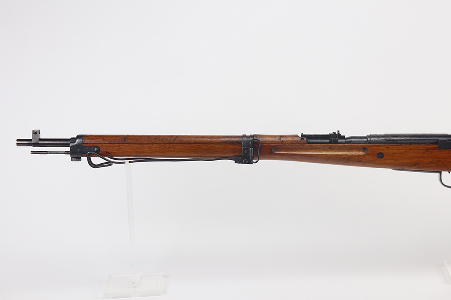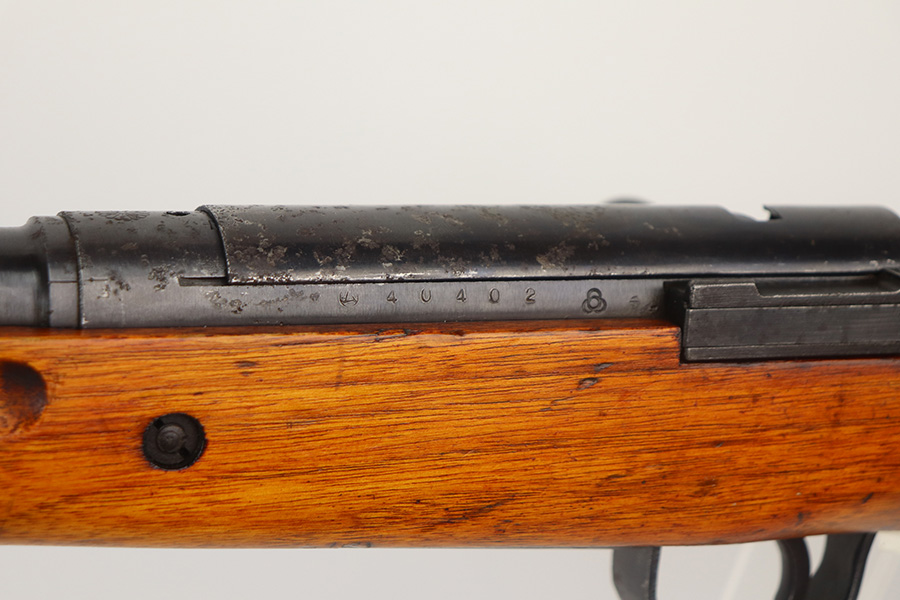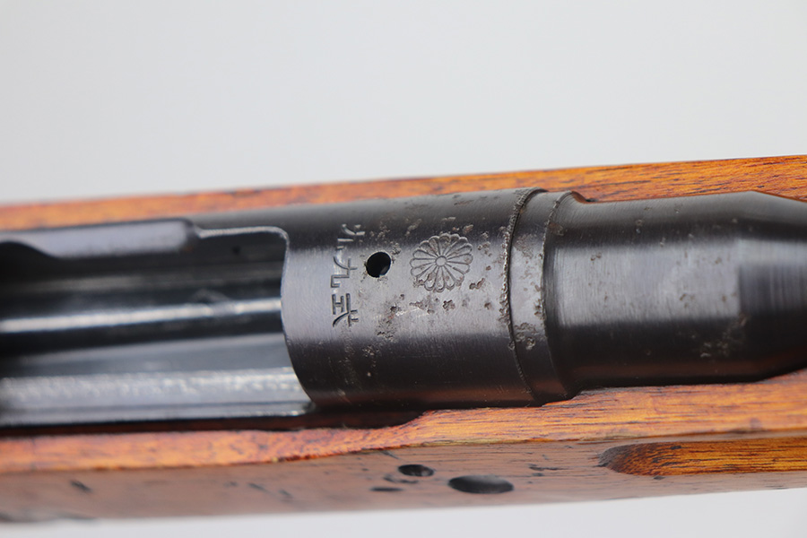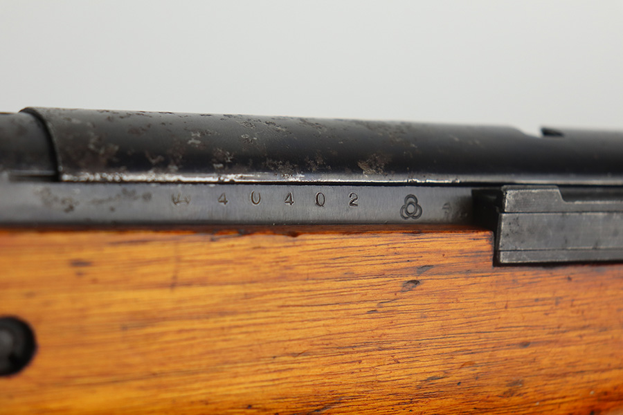 5/14/21 – This is an all matching and original Arisaka Type 99 that was made at the Tokyo Arsenal. It retains all the matching numbered parts, including the original dust cover, as well as original monopod. Matching numbers include the bolt, firing pin, cocking knob, bayo lug, receiver. The gun doesn’t have much actual bluing loss but there is some pitting on the dust cover, top of receiver and trigger group. Includes cleaning rod. Terrific bore. Unfortunately, the monopod does not stay up on its own.