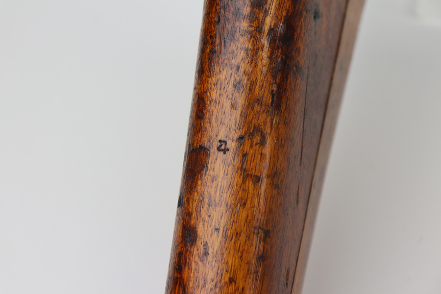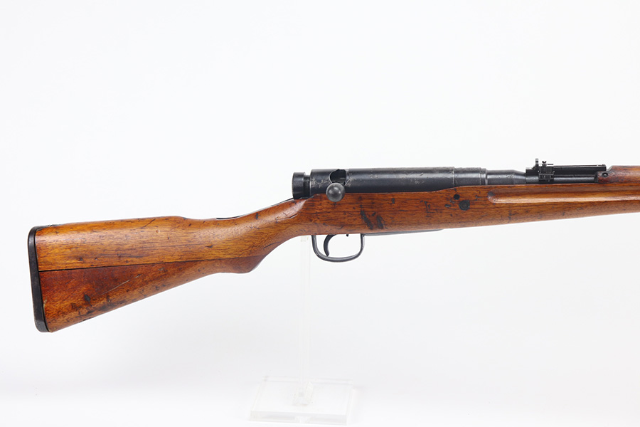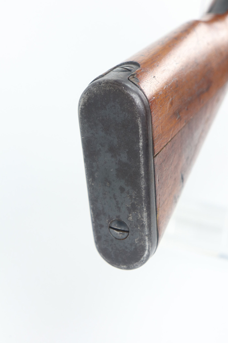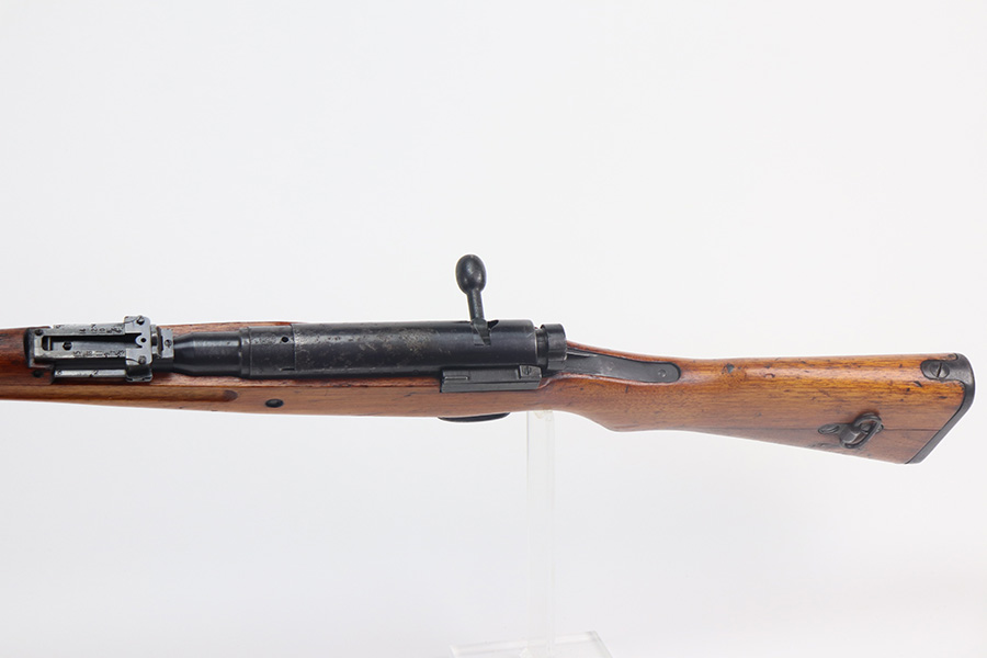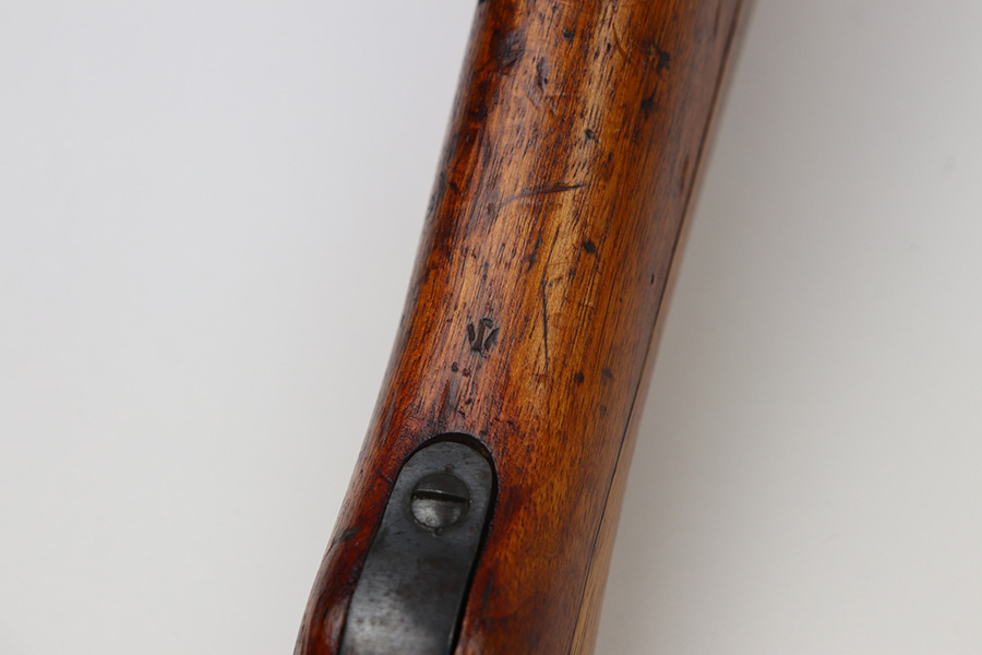 5/14/21 – This is an all matching and original Arisaka Type 99 that was made at the Tokyo Arsenal. It retains all the matching numbered parts, including the original dust cover, as well as original monopod. Matching numbers include the bolt, firing pin, cocking knob, bayo lug, receiver. The gun doesn’t have much actual bluing loss but there is some pitting on the dust cover, top of receiver and trigger group. Includes cleaning rod. Terrific bore. Unfortunately, the monopod does not stay up on its own.