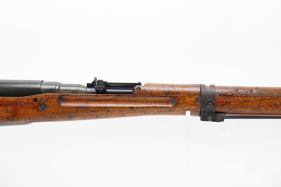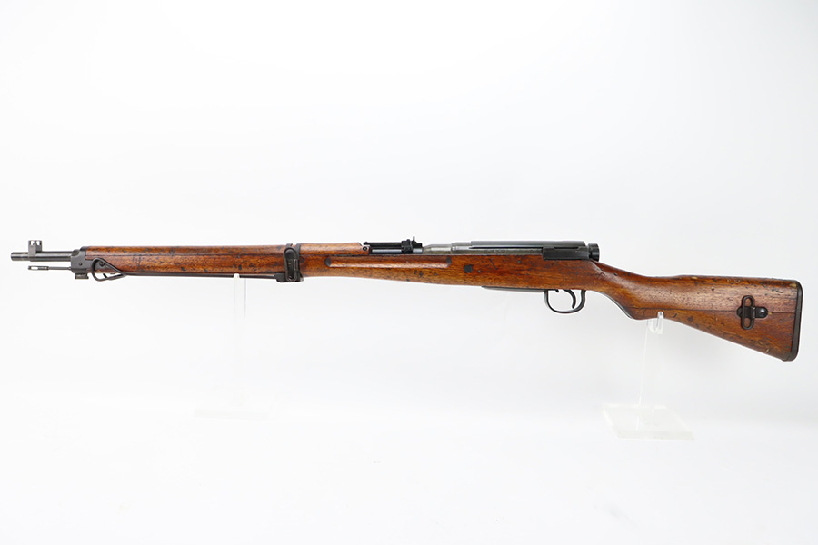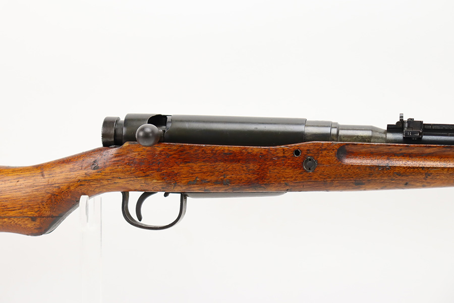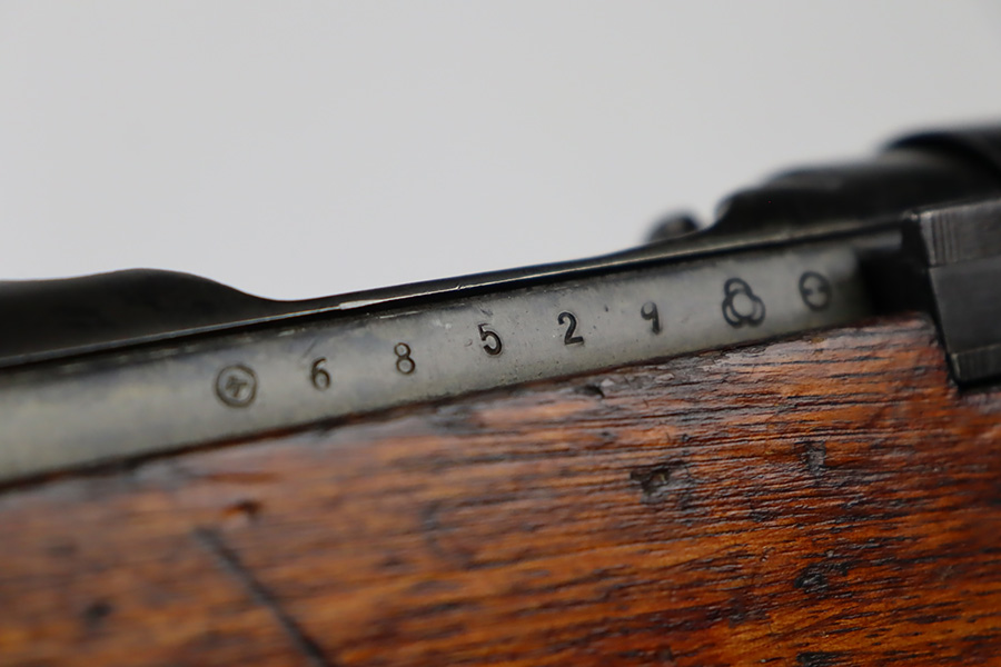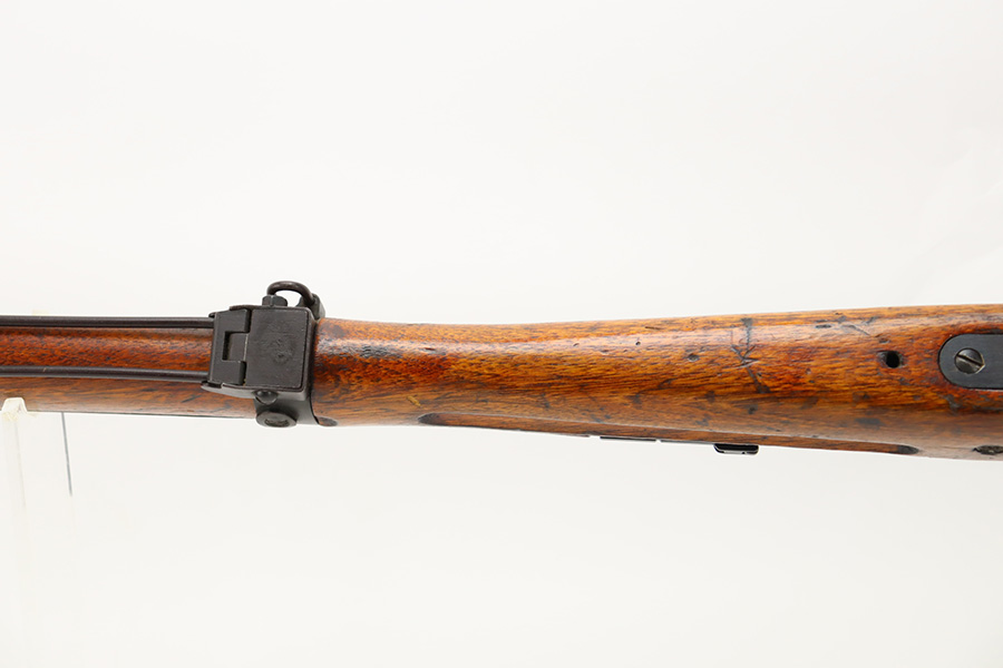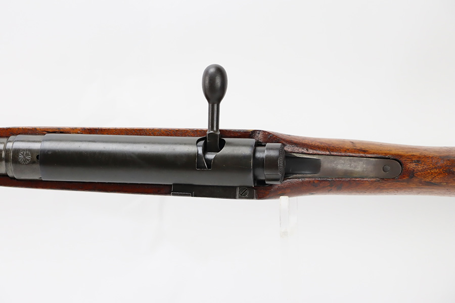 10/5/23 – This is a very nice example of an Arisaka Type 99 rifle issued to the Japanese military during WW2. It is all matching and has a fully intact Imperial mum stamp on the receiver. It comes with an original bayonet, scabbard, monopod, and dust cover (not numbered). The bluing rates roughly 75% with the majority of the finish loss on the receiver. The wood shows the typical signs of wear with no major damage. Mint bore.