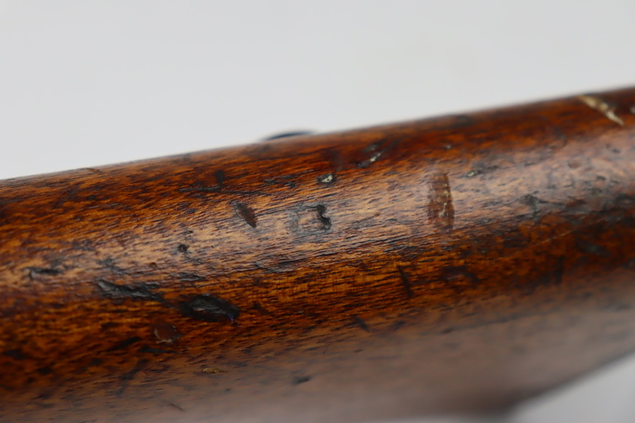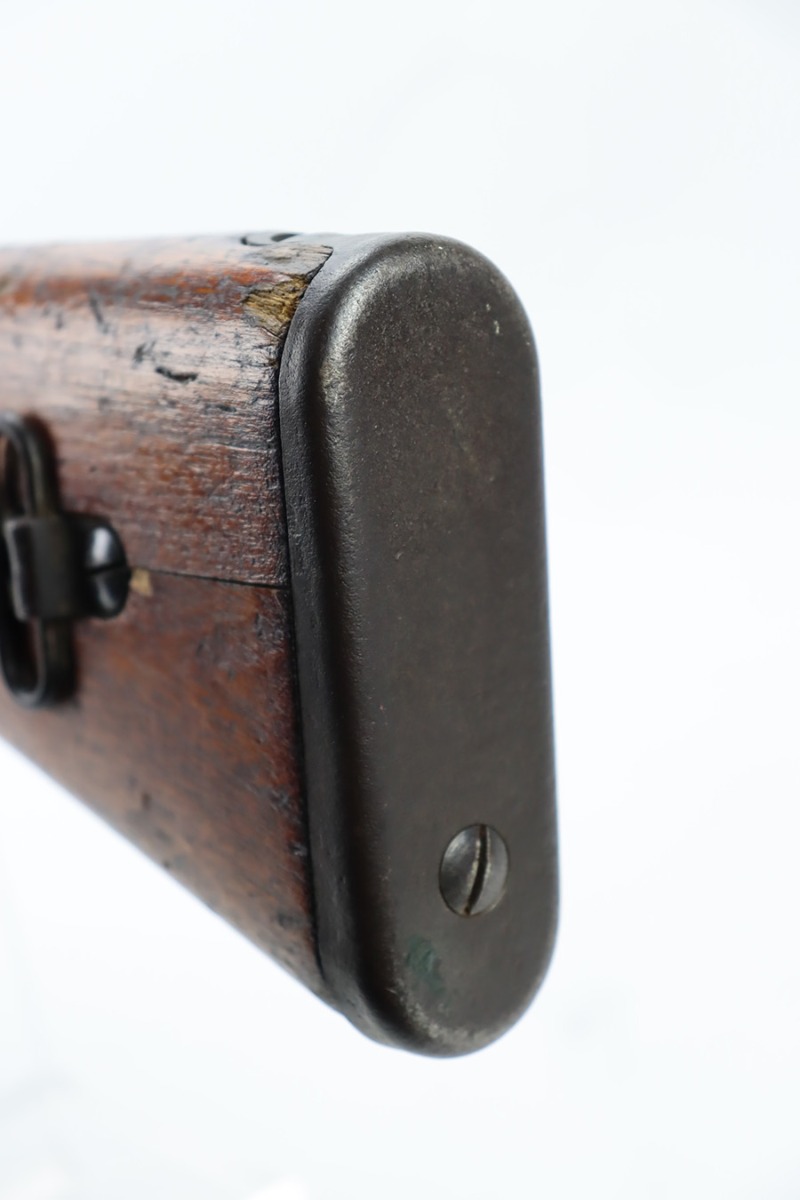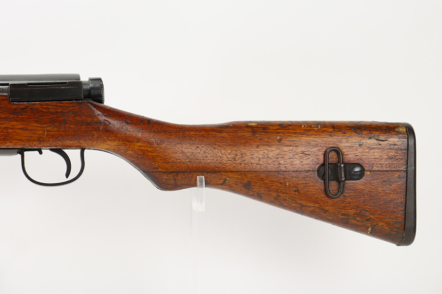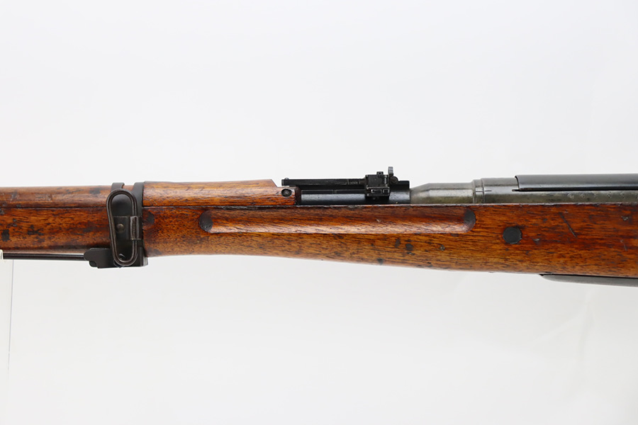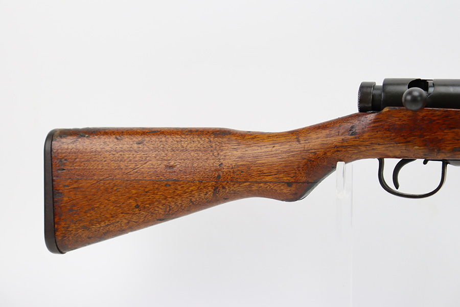 10/5/23 – This is a very nice example of an Arisaka Type 99 rifle issued to the Japanese military during WW2. It is all matching and has a fully intact Imperial mum stamp on the receiver. It comes with an original bayonet, scabbard, monopod, and dust cover (not numbered). The bluing rates roughly 75% with the majority of the finish loss on the receiver. The wood shows the typical signs of wear with no major damage. Mint bore.