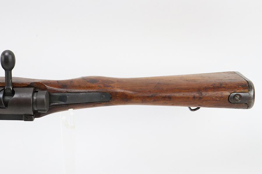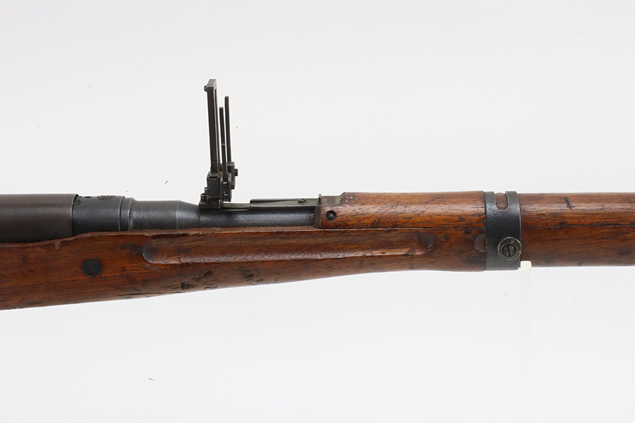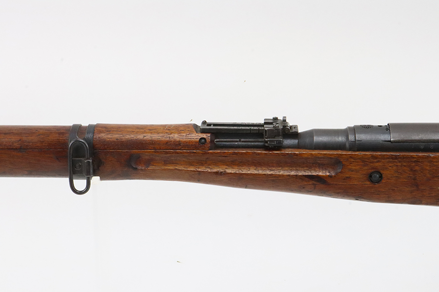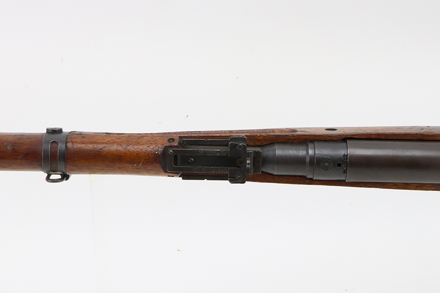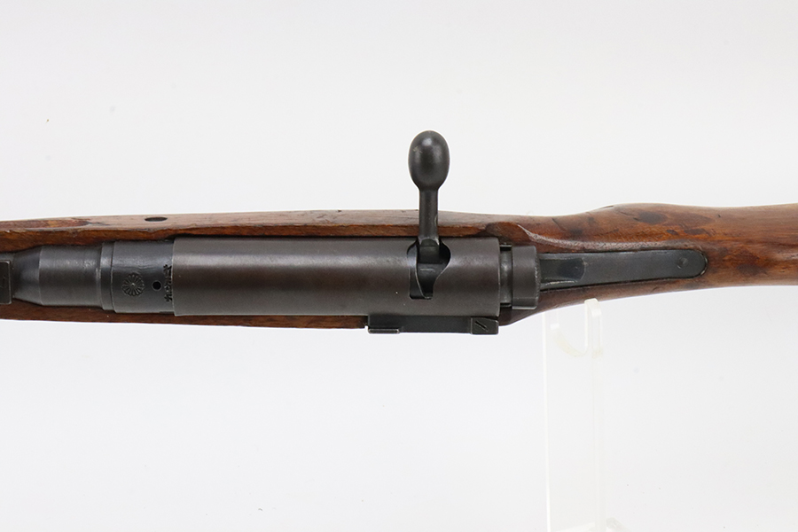 2/5/24 – This is an excellent example of an Arisaka Type 99 issued to the Japanese military during WW2. It is mismatched but has a completely intact Imperial mum stamp on the receiver. It also comes with a period-correct dust cover (numbered but not matching). The metal parts have retained nearly all of their finish with very minor high edge wear and some light brown patina here and there. Nice wood furniture with no major damage – just the typical signs of wear. Mint bore.