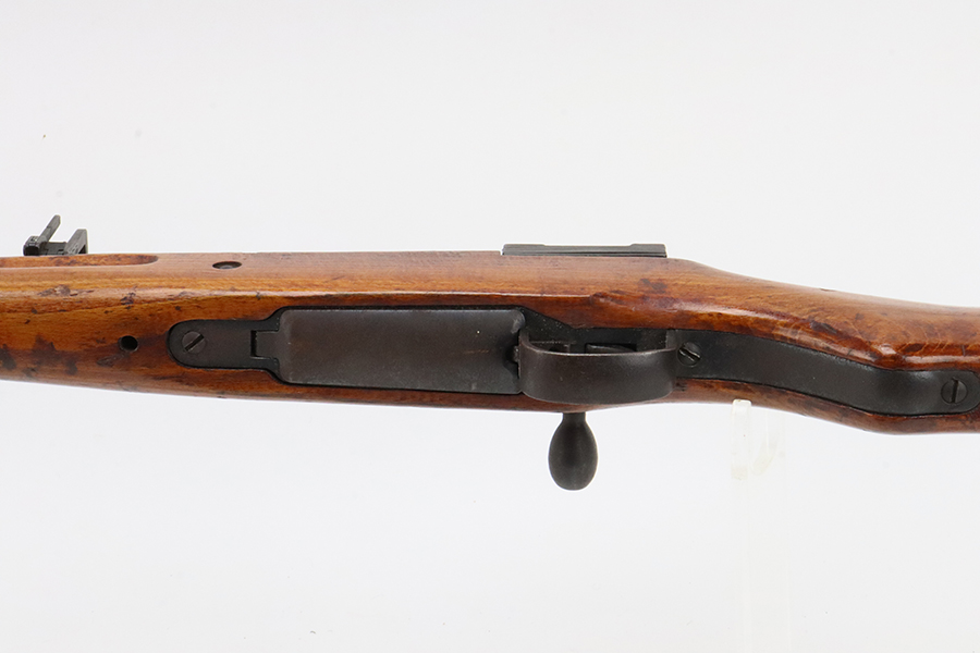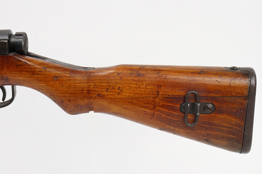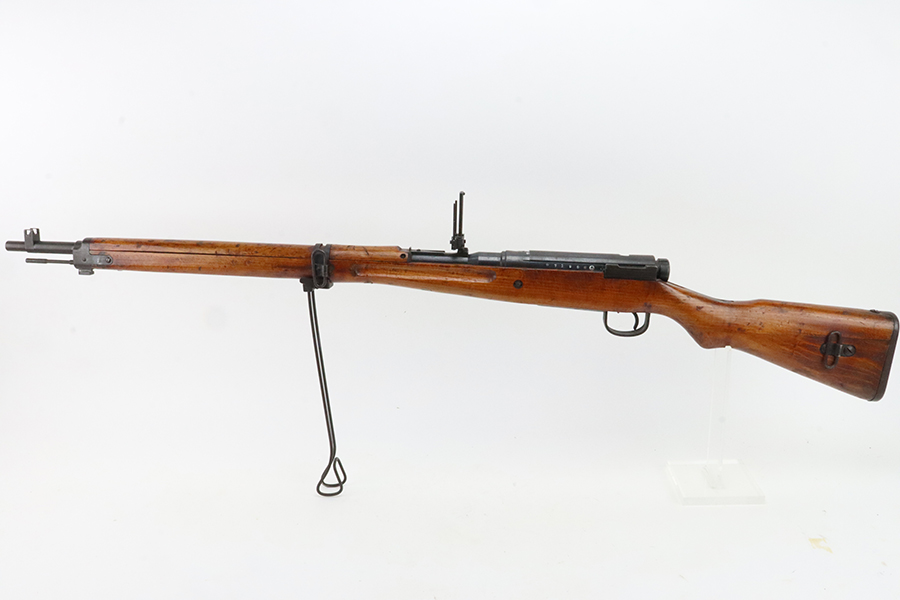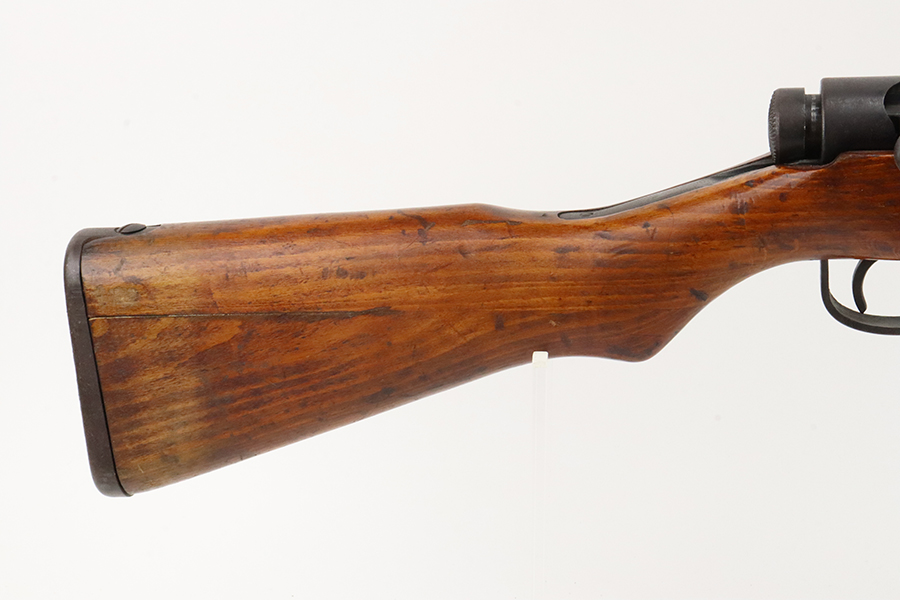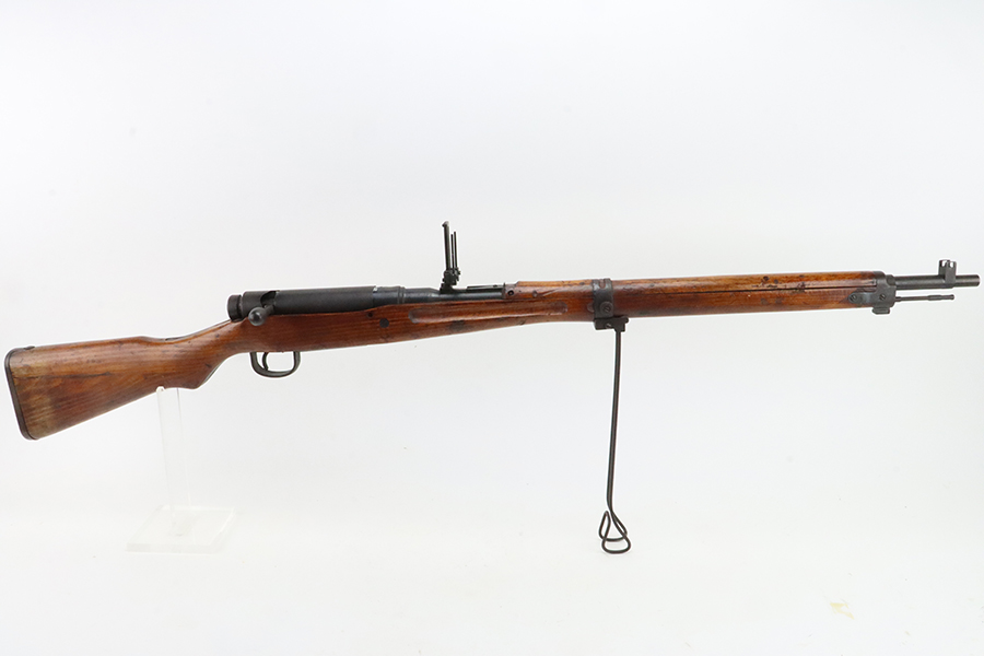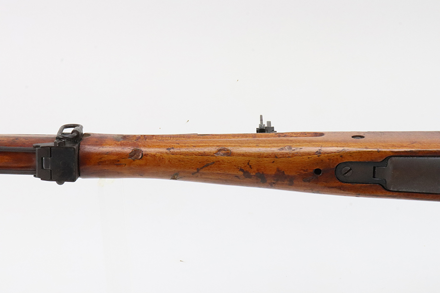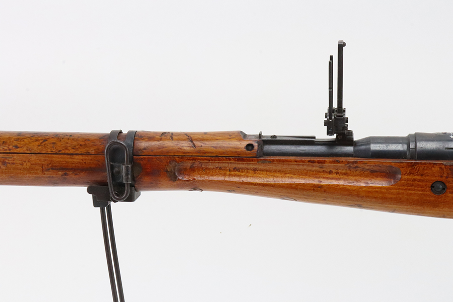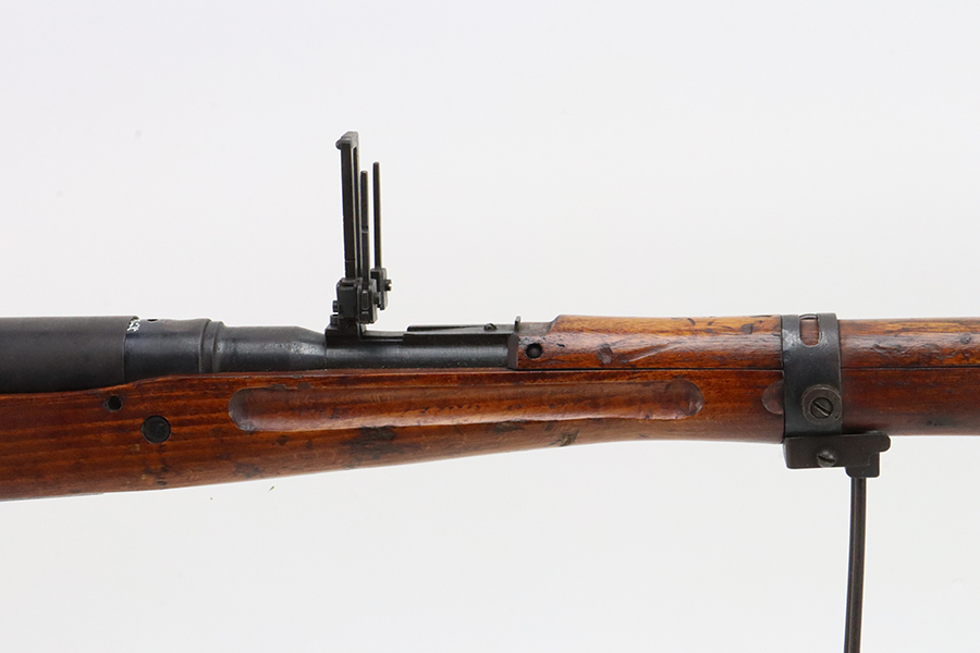 2/5/24 – This is an excellent example of an Arisaka Type 99 issued to the Japanese military during WW2. All matching but has a ground Imperial mum stamp on the receiver. It comes with an original monopod and a matching-numbered dust cover. It also has the original cleaning rod and anti-aircraft sights. The gun itself has retained about 98% of its original finish. While there is almost no actual finish loss, there is spotty brown patina on virtually all of the parts. The wood furniture has no major damage with below-average signs of wear. Terrific bore.