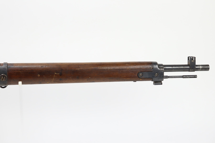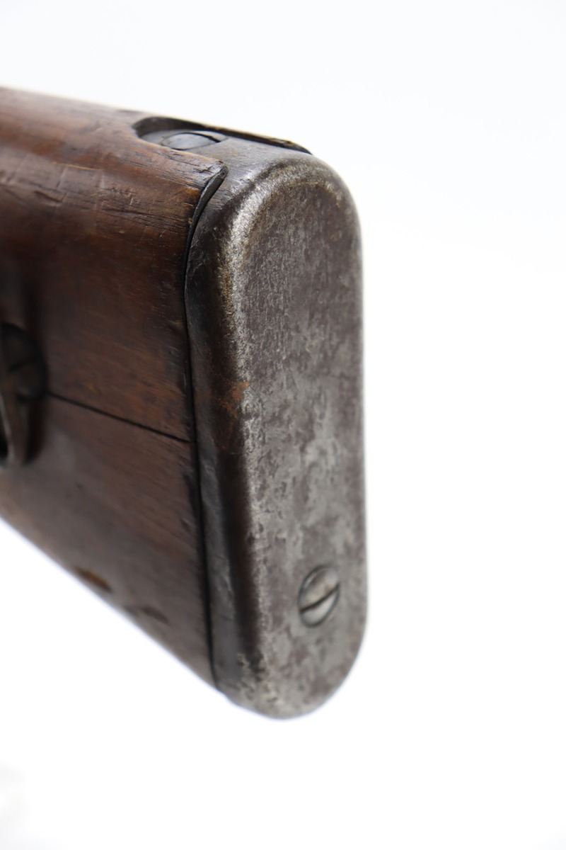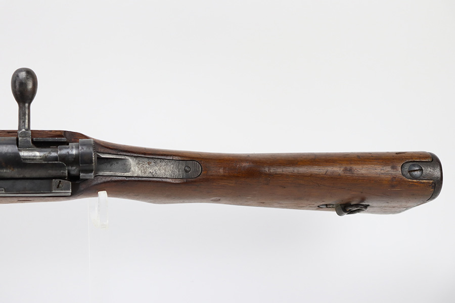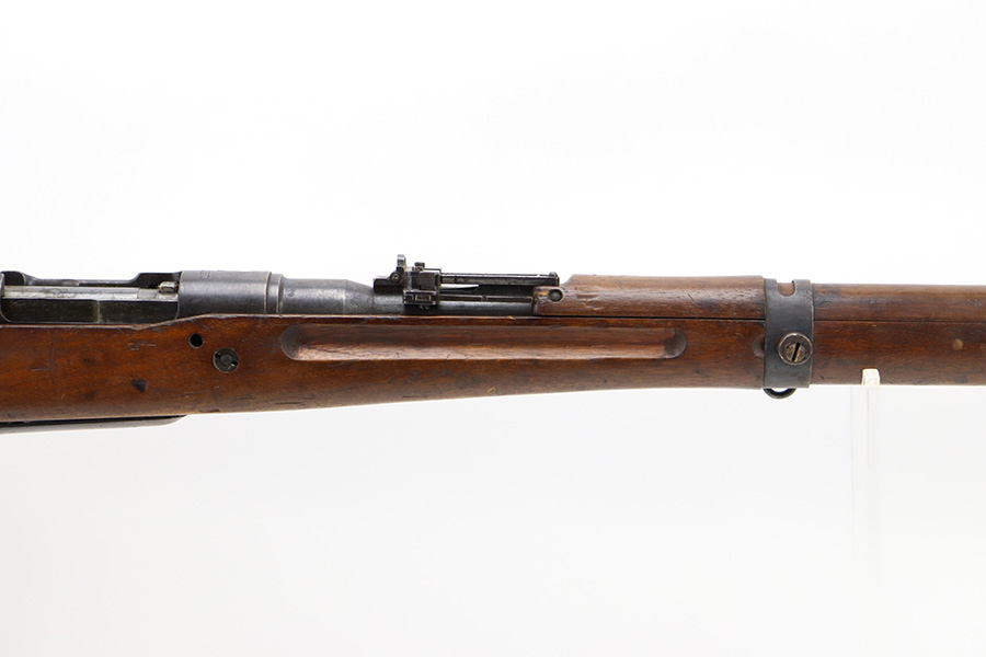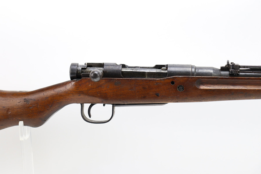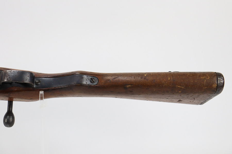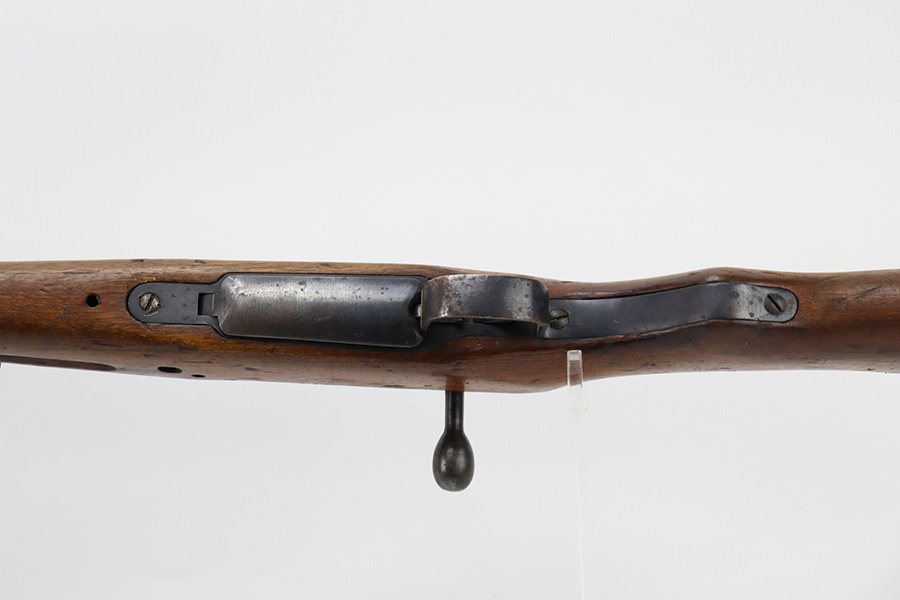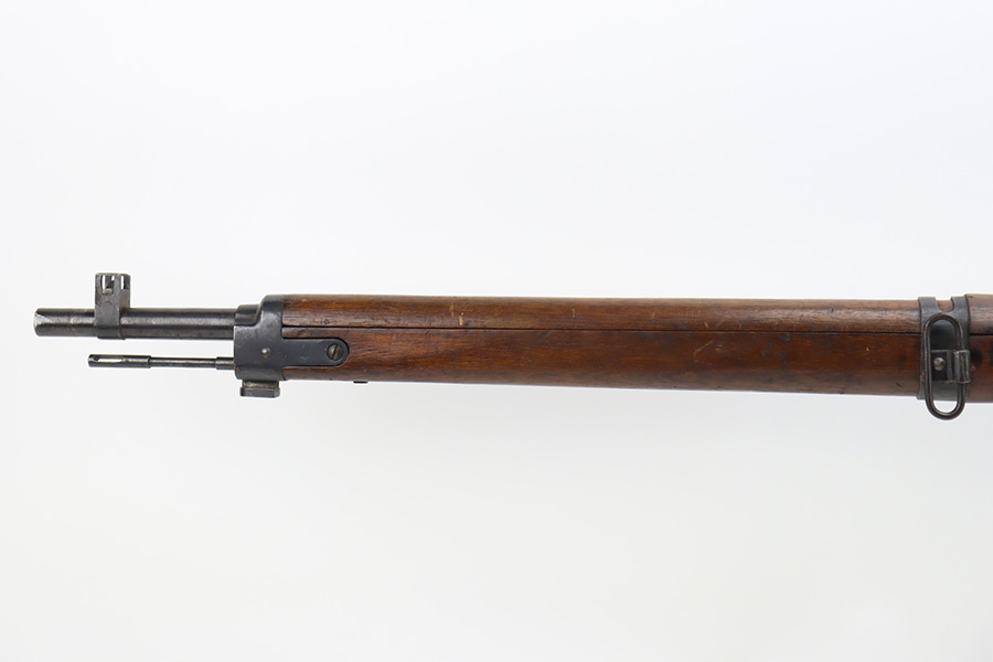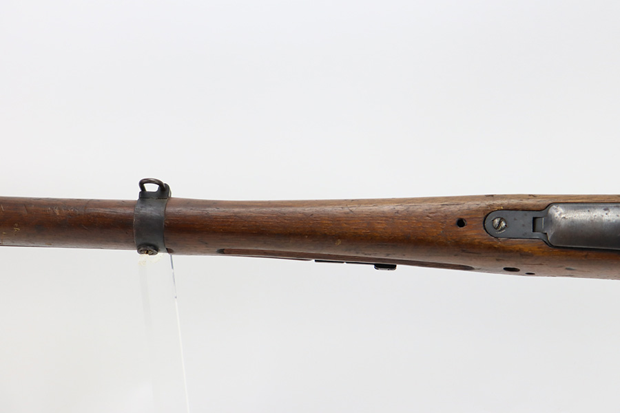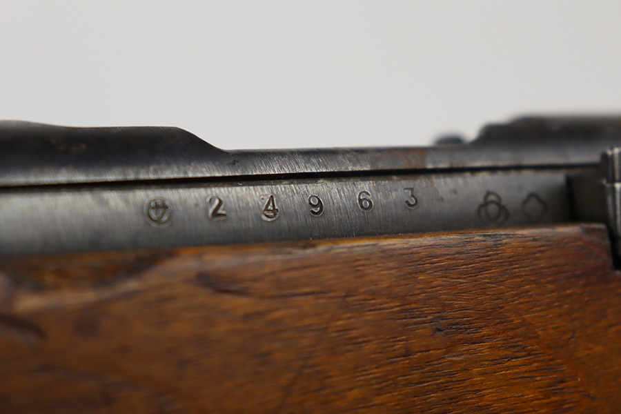2/6/24 – This is an Arisaka Type 99 issued to the Japanese military during WW2. The bolt is mismatched. The Imperial mum stamp on the receiver is mostly visible, but it has been defaced. The finish on the metal parts rates somewhere between 85-90%. Minor thinning on the receiver and on the floor plate. Light spotty oxidation on most of the metal parts. No major damage to the wood, but it shows the typical signs of wear and use. Mint bore.