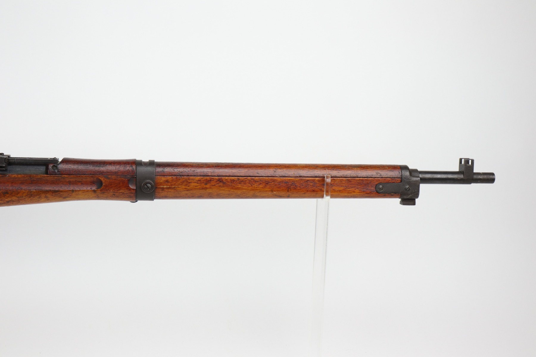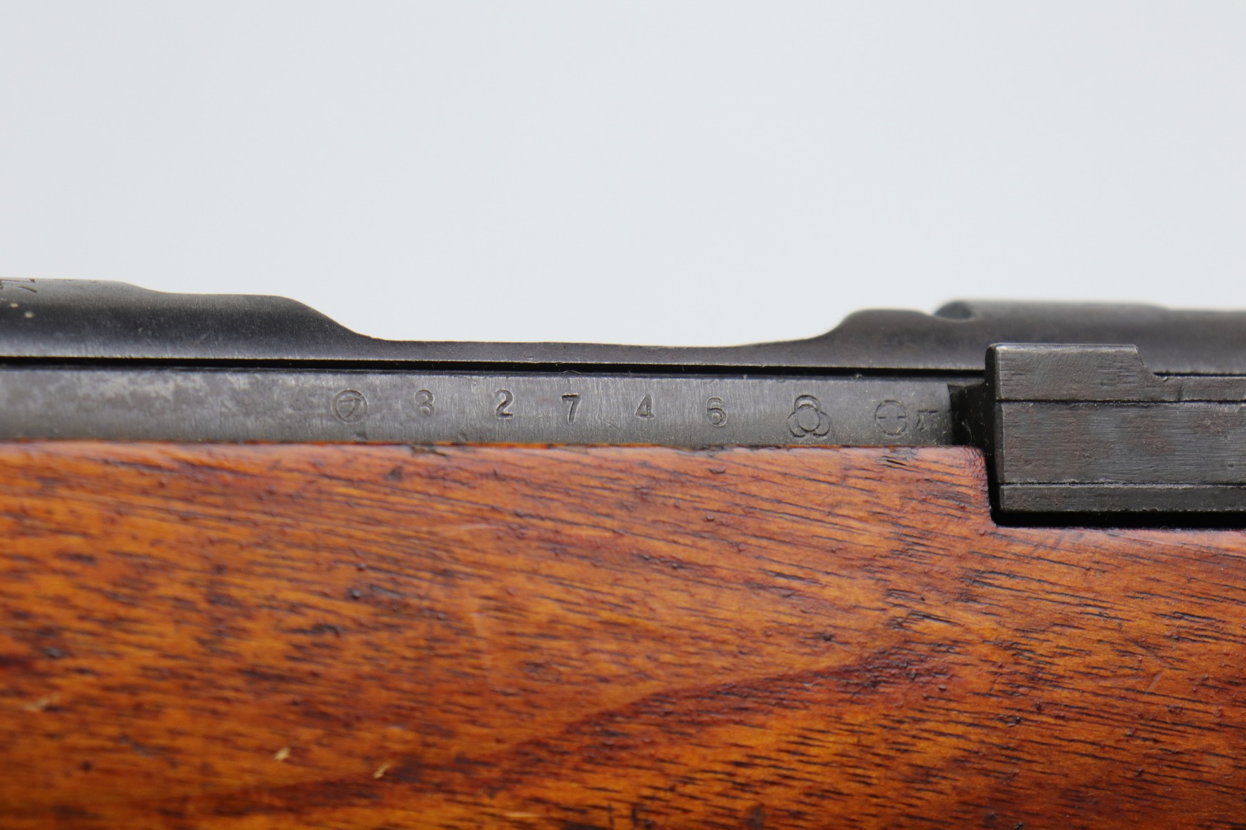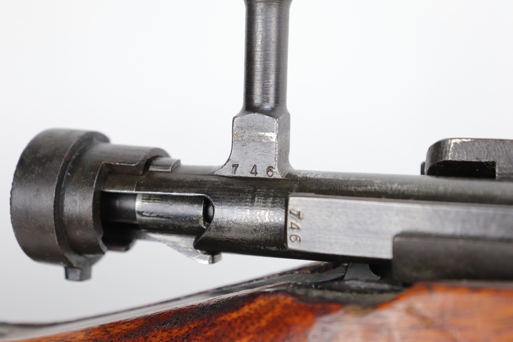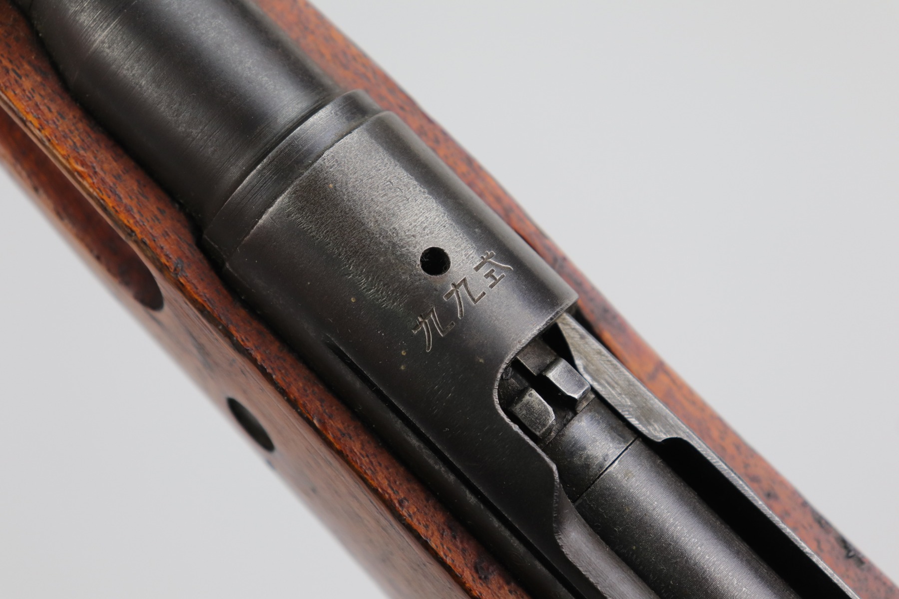 10/8/20 – This is an excellent Arisaka Type 99 Bolt Action Rifle, issued to the Japanese military during WW2. It was made in the Kokura Arsenal. The gun is matching except for the cocking knob and firing pin. It is fully functional. Unfortunately, the mum has been ground off and that small area was touched up to match the rest of the gun. The gun is in excellent condition, retaining most of its bluing. The metal parts have rough machining and areas of very light freckling. A few handling marks here and there. Overall, the stock is nice, just typical dings, dents, and scratches throughout. The bore is minty.