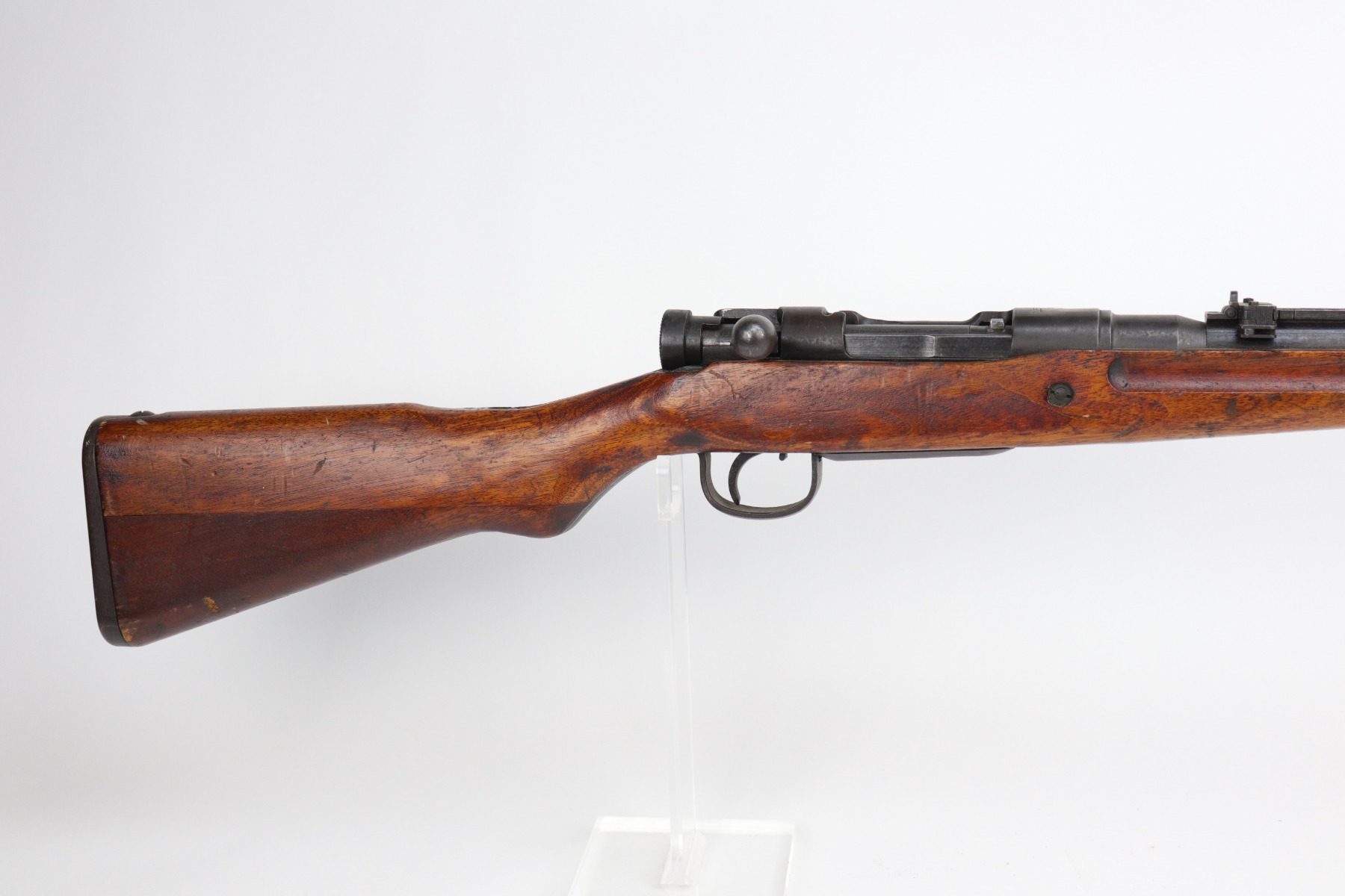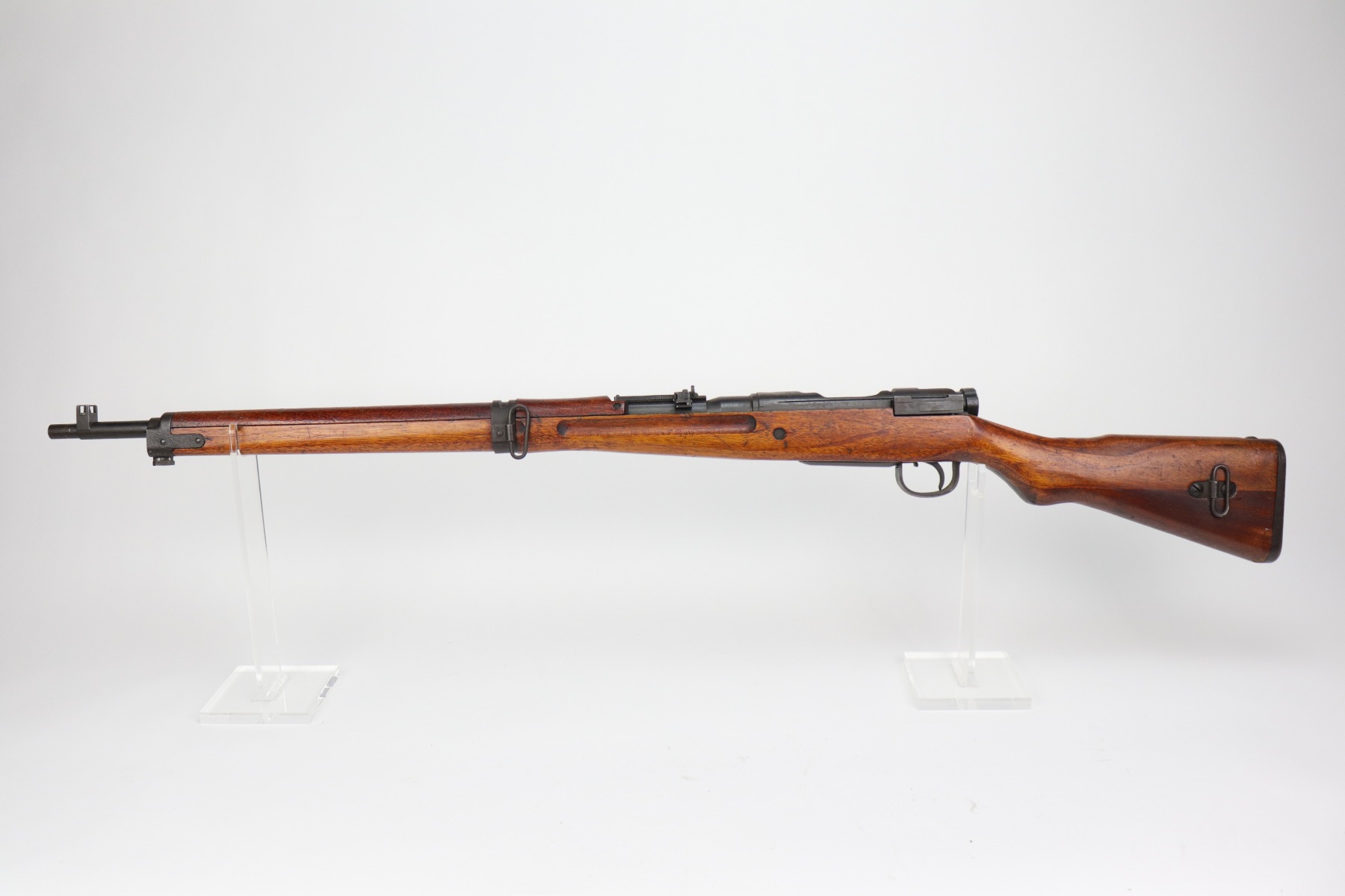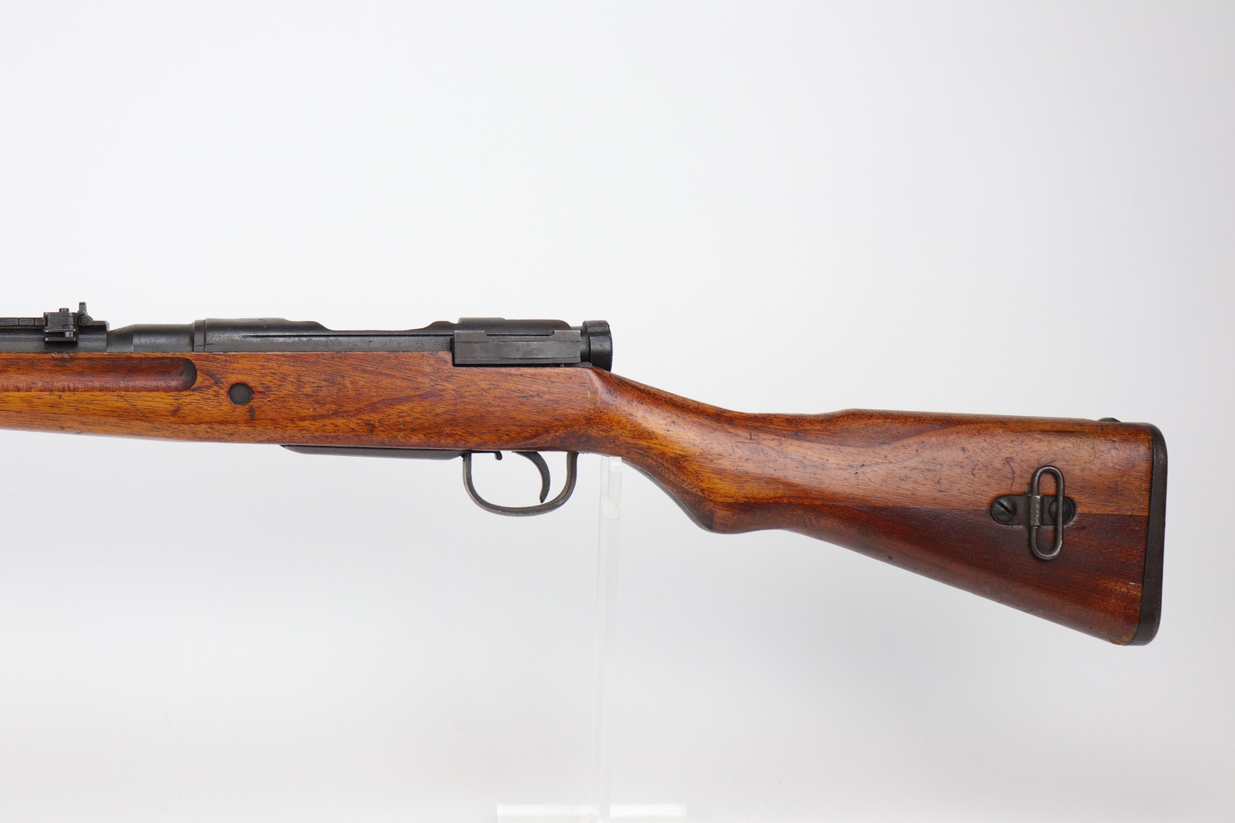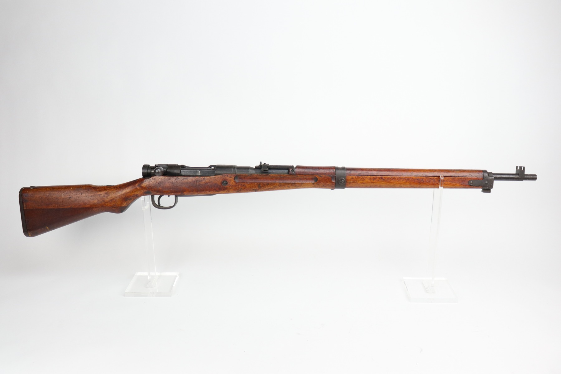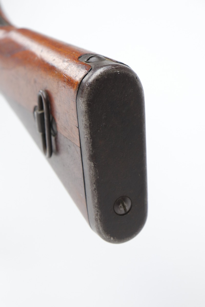 10/8/20 – This is an excellent Arisaka Type 99 Bolt Action Rifle, issued to the Japanese military during WW2. It was made in the Kokura Arsenal. The gun is matching except for the cocking knob and firing pin. It is fully functional. Unfortunately, the mum has been ground off and that small area was touched up to match the rest of the gun. The gun is in excellent condition, retaining most of its bluing. The metal parts have rough machining and areas of very light freckling. A few handling marks here and there. Overall, the stock is nice, just typical dings, dents, and scratches throughout. The bore is minty.