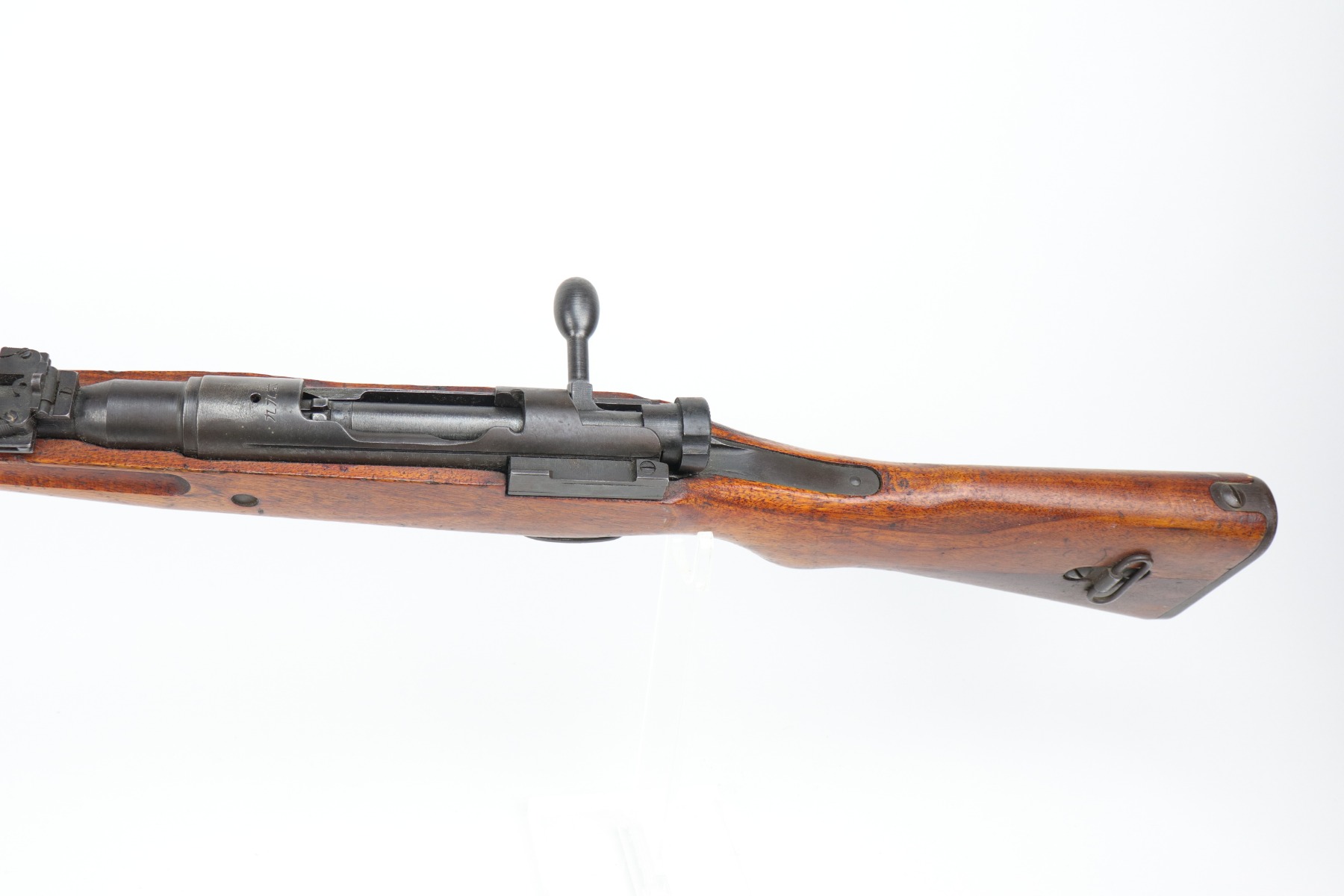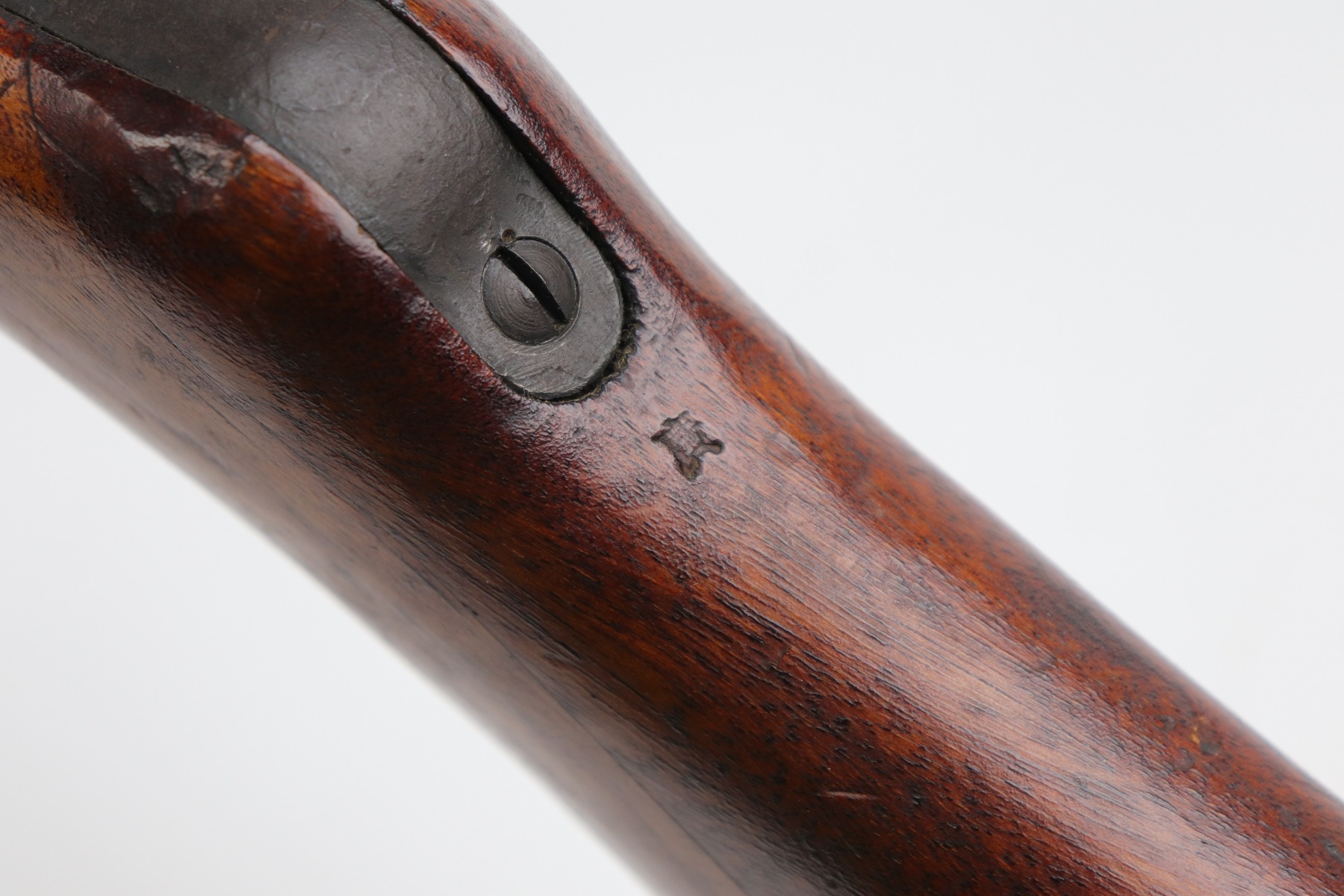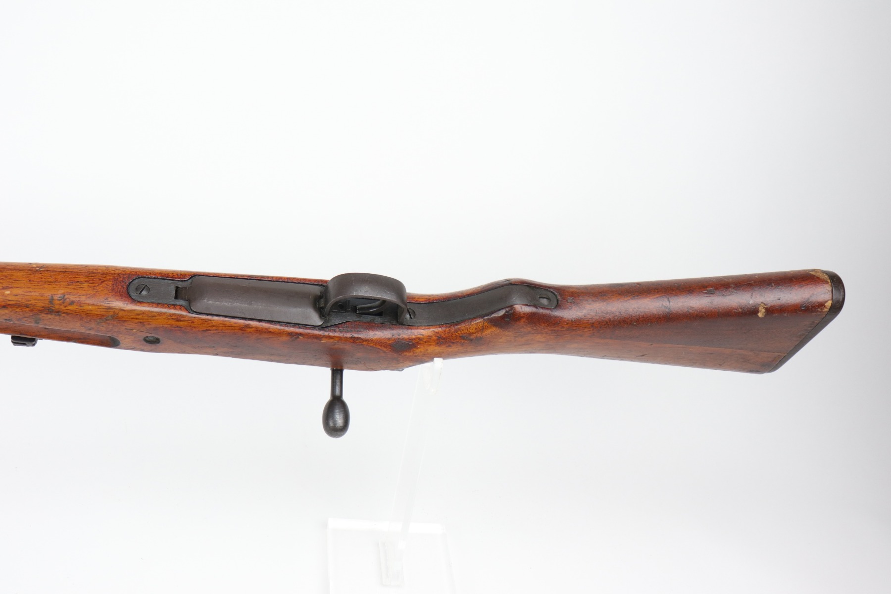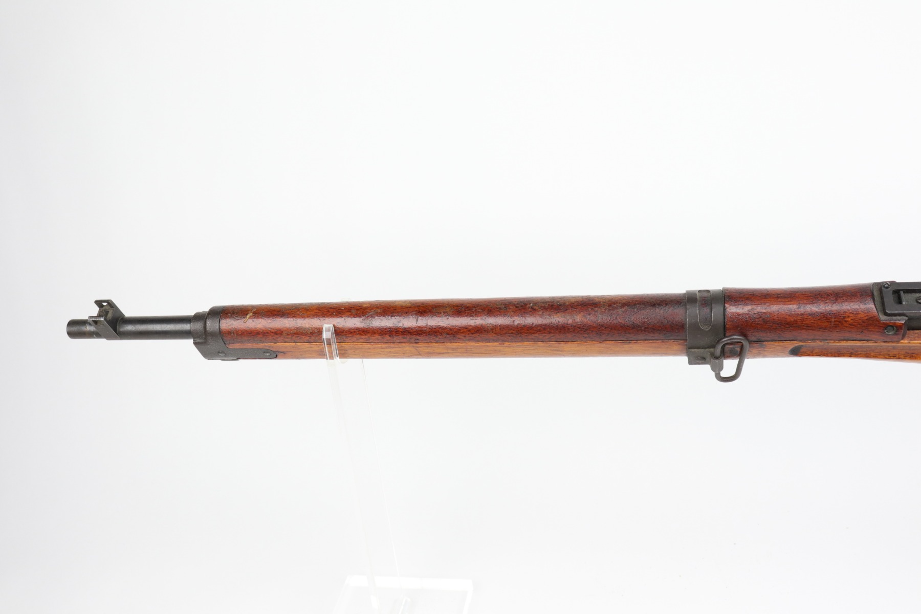 10/8/20 – This is an excellent Arisaka Type 99 Bolt Action Rifle, issued to the Japanese military during WW2. It was made in the Kokura Arsenal. The gun is matching except for the cocking knob and firing pin. It is fully functional. Unfortunately, the mum has been ground off and that small area was touched up to match the rest of the gun. The gun is in excellent condition, retaining most of its bluing. The metal parts have rough machining and areas of very light freckling. A few handling marks here and there. Overall, the stock is nice, just typical dings, dents, and scratches throughout. The bore is minty.