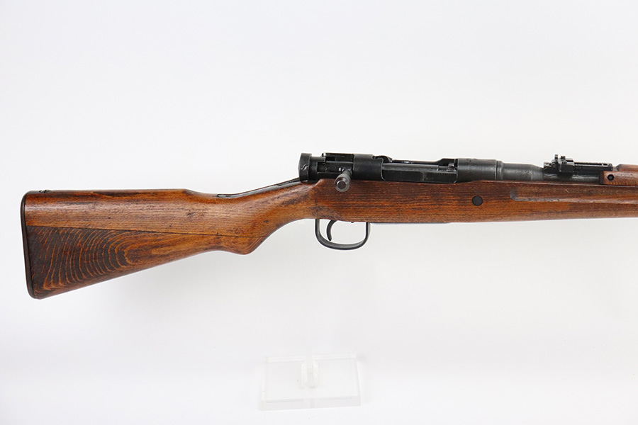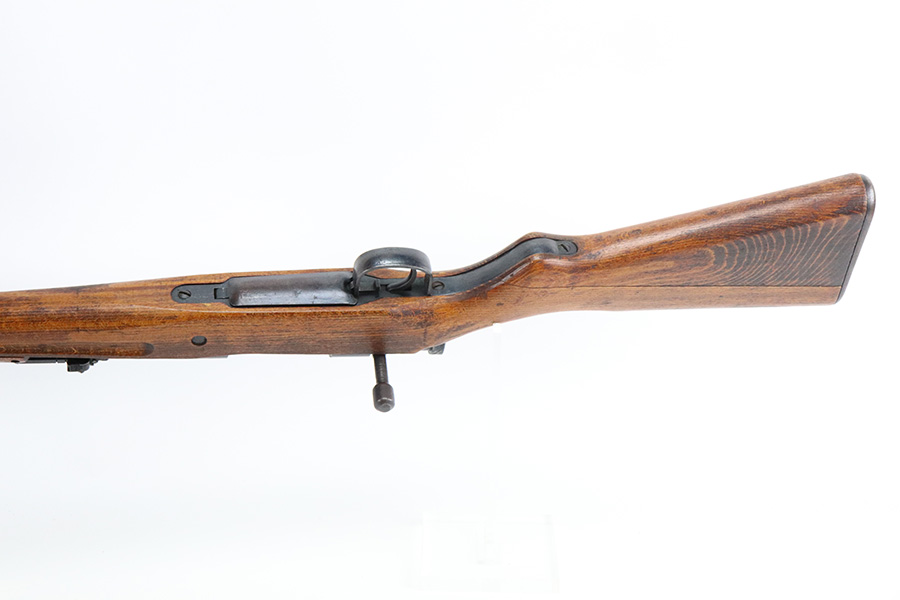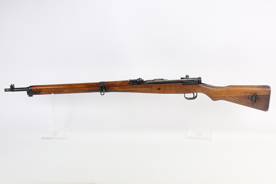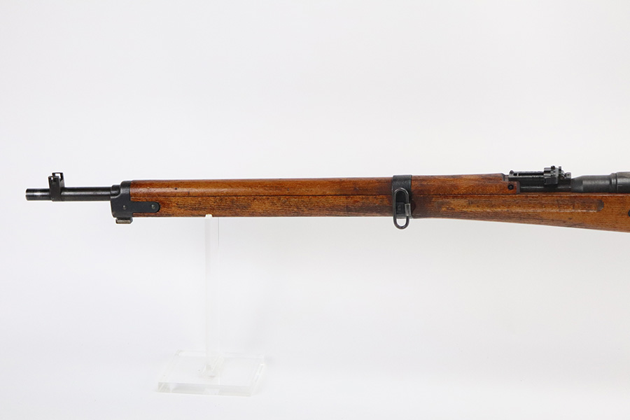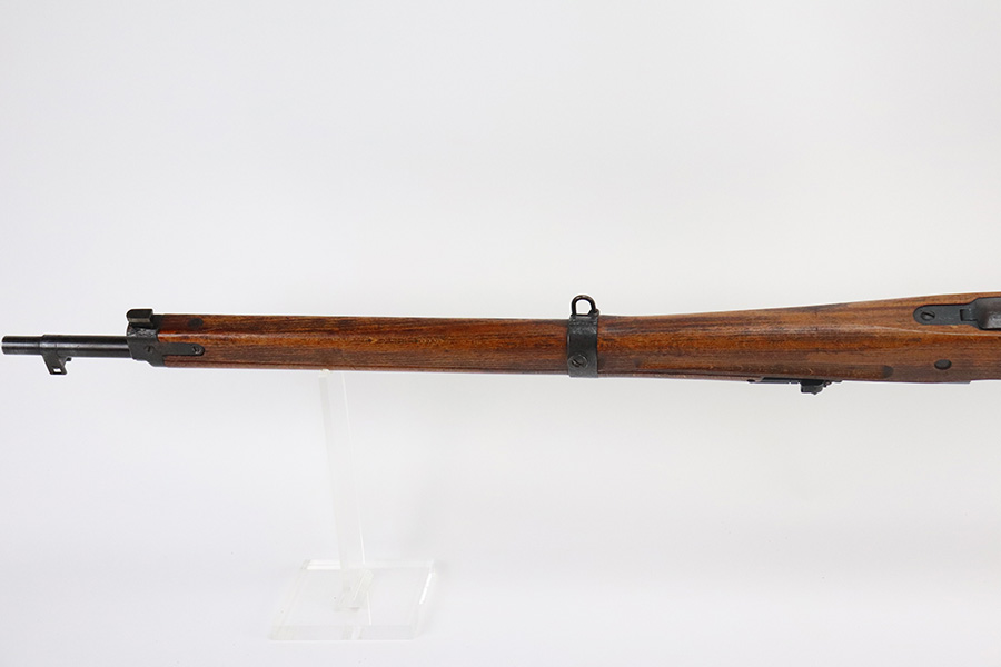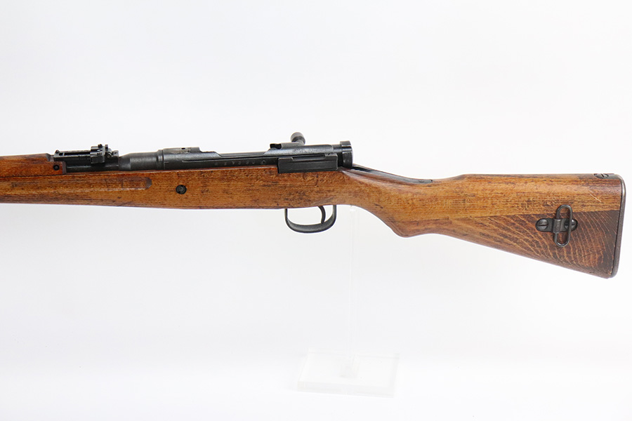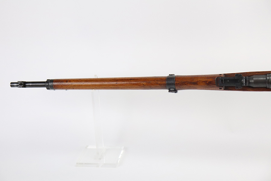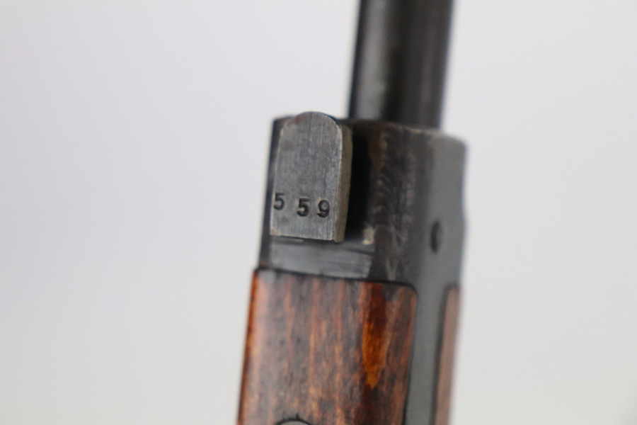 7/9/21 – This is an excellent example of an Arisaka Type 99 rifle issued to the Japanese military during WW2. The gun is all matching except for the cocking knob. The mum stamp has been ground off. It has retained most of its finish. There is wear where the mum was ground off and some patina on the barrel and floor plate. Some spots of oxidation on the receiver. Excellent stock with minor dings and dents here and there. Excellent bore – shiny with strong rifling.