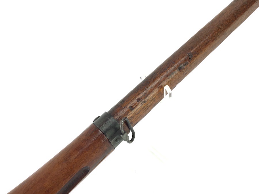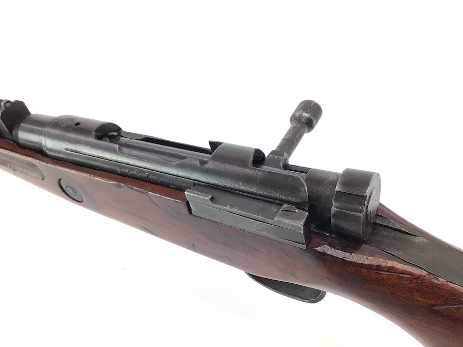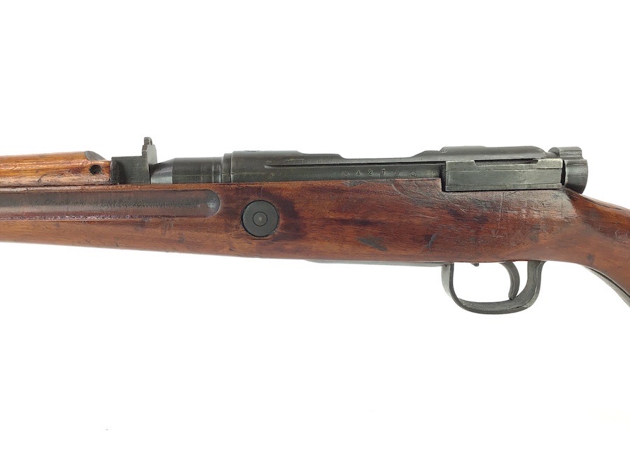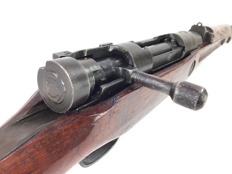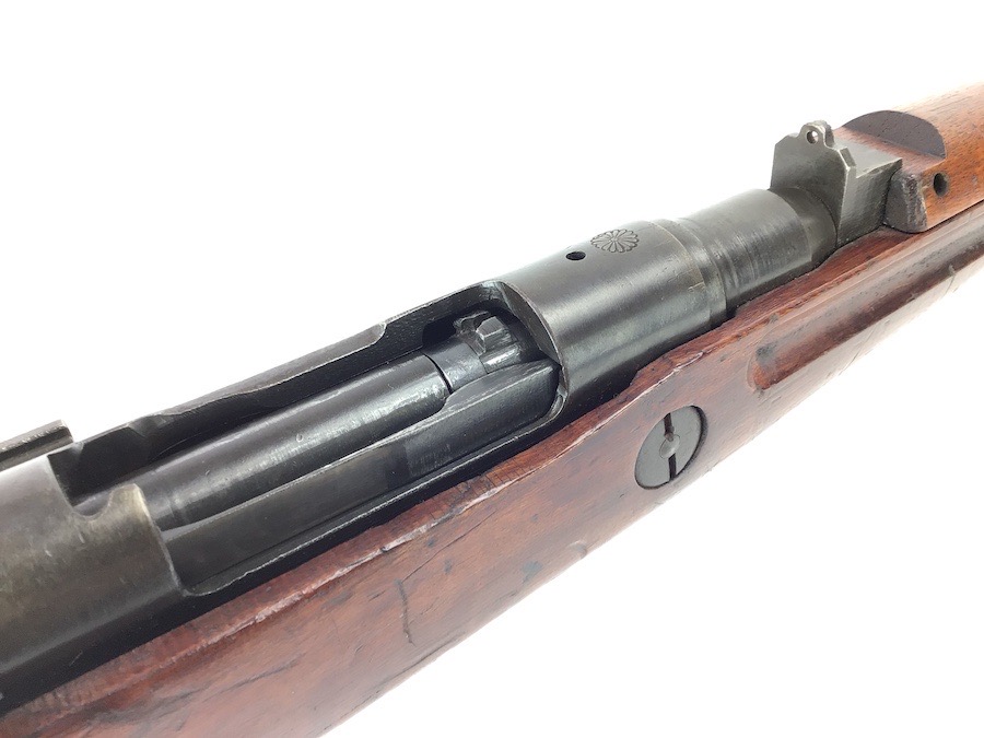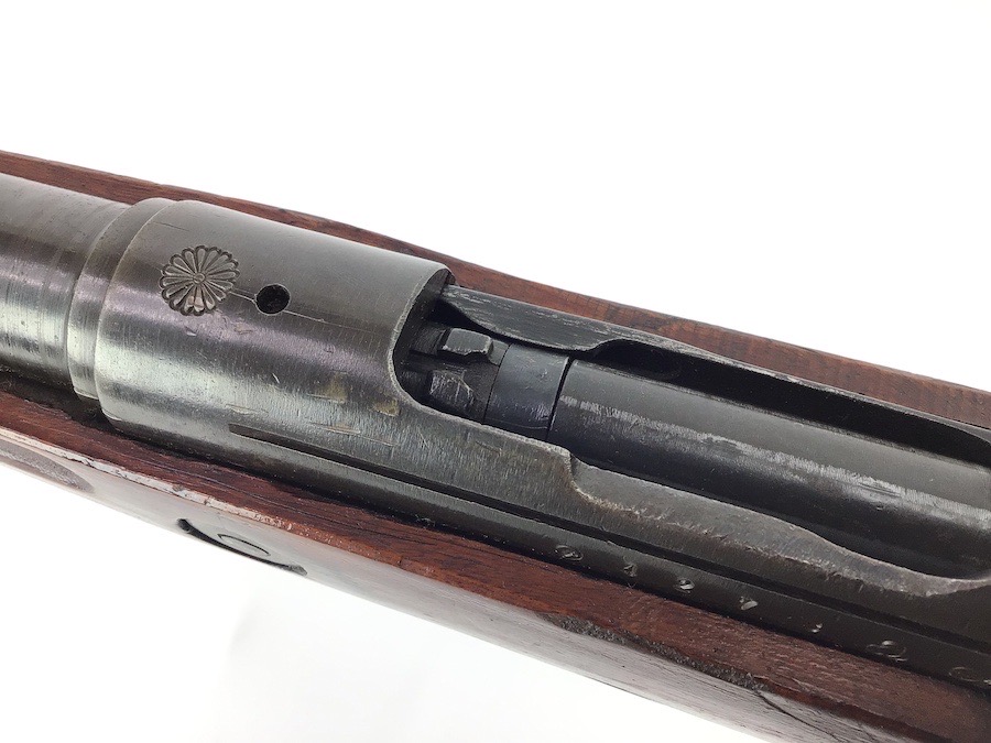 11/9/23 – This is an Arisaka Type 99 issued to the Japanese military during WW2. This one has a completely in tact mum stamp on the receiver. This series 35 weapon came from the Tokyo-Kogyo arsenal as indicated by the stamps on the left side of the receiver. The bolt is unmarked. Overall, it is in nice condition. There is some minor wear on the metal parts and the bluing rates about 90%+ On the wood stock, there is the typical “split” in buttstock area, but it is intact. The bore has good rifling and rates out 7 of 10. Smooth action and fully functional.