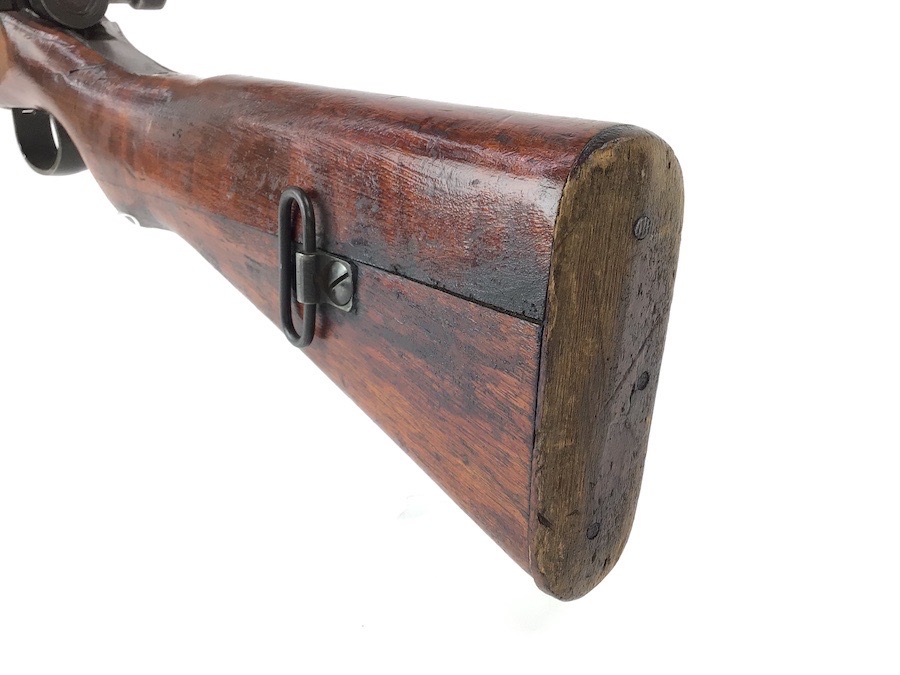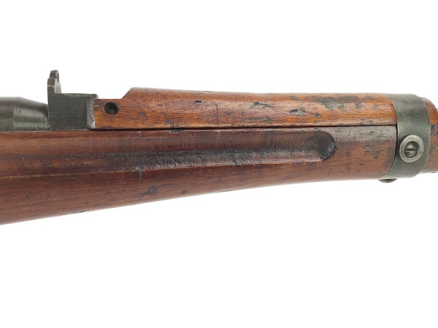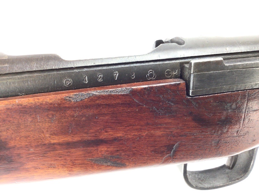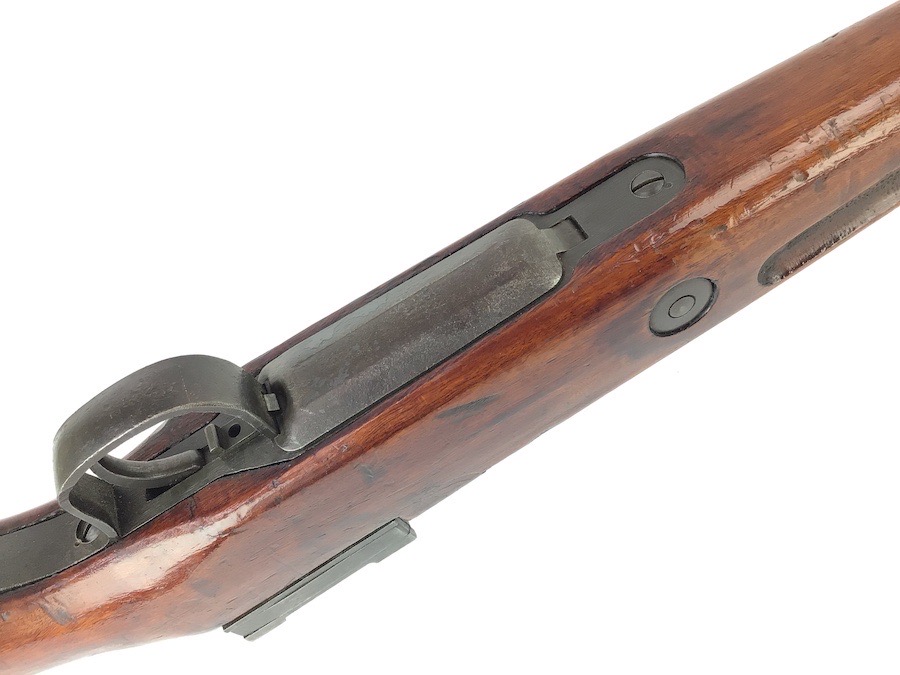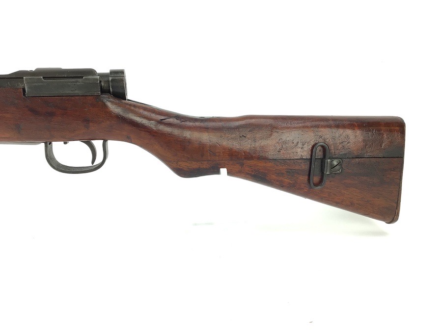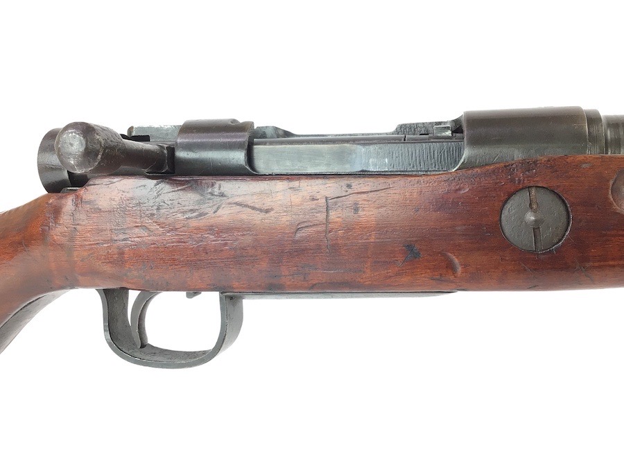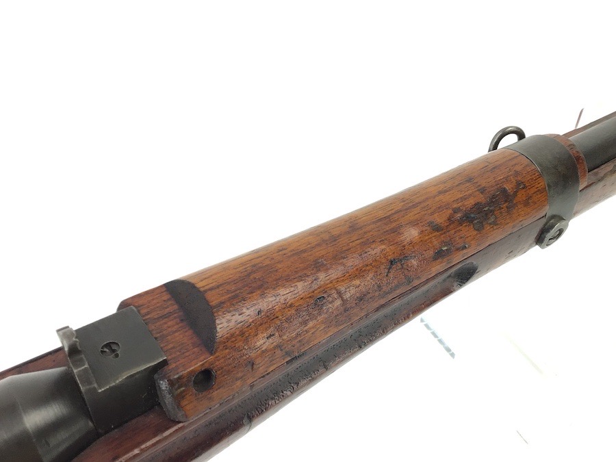 11/9/23 – This is an Arisaka Type 99 issued to the Japanese military during WW2. This one has a completely in tact mum stamp on the receiver. This series 35 weapon came from the Tokyo-Kogyo arsenal as indicated by the stamps on the left side of the receiver. The bolt is unmarked. Overall, it is in nice condition. There is some minor wear on the metal parts and the bluing rates about 90%+ On the wood stock, there is the typical “split” in buttstock area, but it is intact. The bore has good rifling and rates out 7 of 10. Smooth action and fully functional.