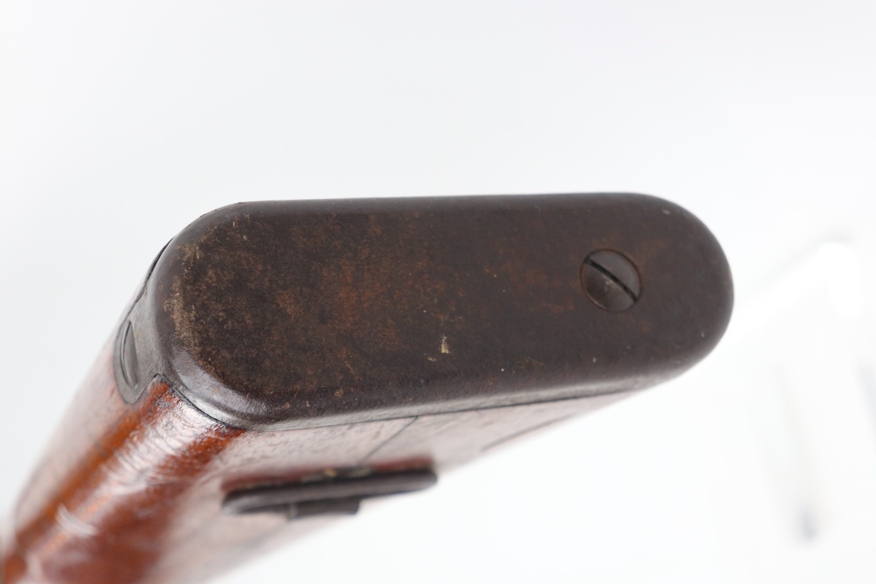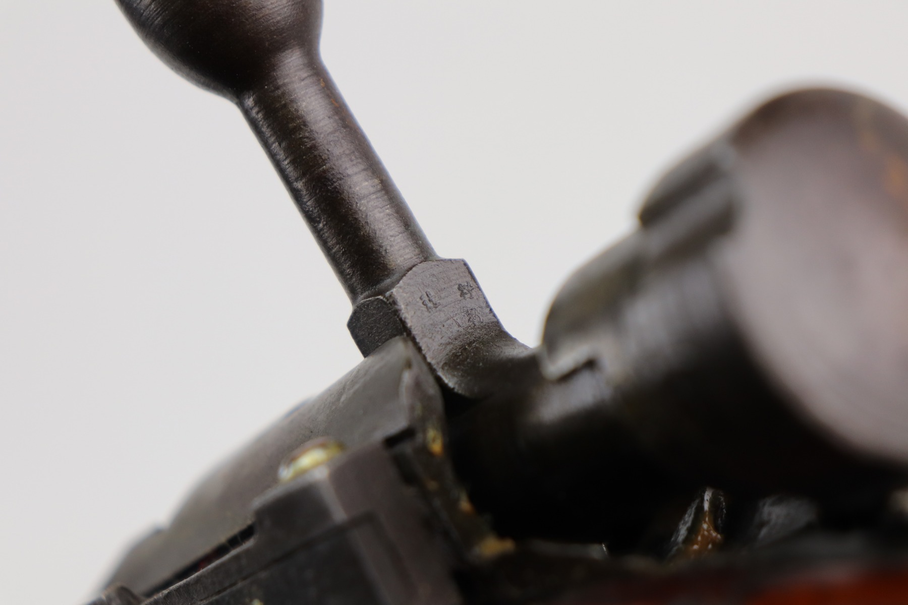 4/12/21 – This is a very nice example of an Arisaka Type 99 Rifle issued to the Japanese military during WW2. The gun is all matching and was made in the Tokyo arsenal. Mum on the receiver is fully intact. Overall, it is in very nice condition. There is minor patina throughout and spotty discoloration on the receiver. The stock is nice but has minor dings, dents, and scratches throughout. Looks like there’s a small repair on the underside of the stock near the muzzle. Comes with an original cleaning rod. Excellent bore – shiny with strong rifling.