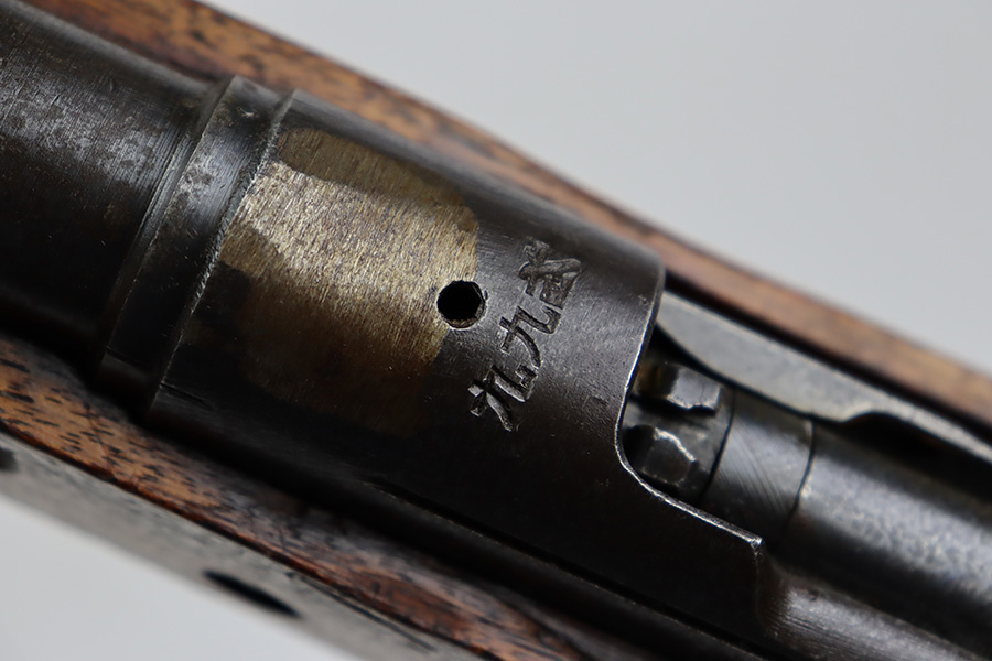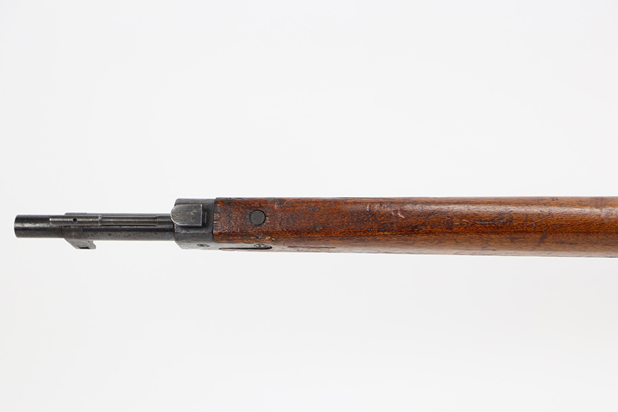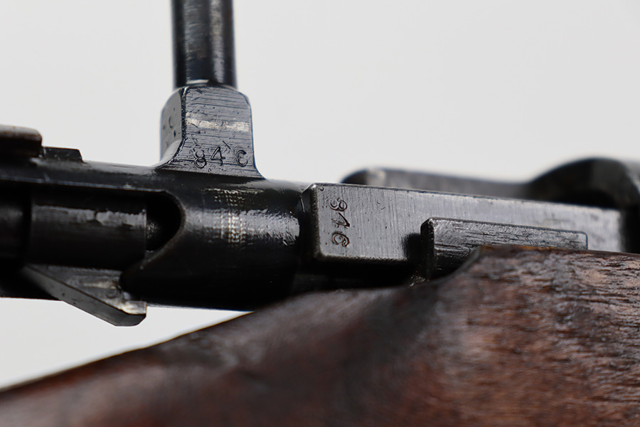 7/21/23 – This is an original WW2 production Japanese Arisaka Type 99 rifle. The rifle is has all matching numbered parts and is in original condition. We rate the finish around 75% because although there is not very much finish loss, there’s mild brown speckling surface patina mixed throughout the finish. The metal also shows typical wartime production machine markings and general roughness to the metal. The wood stock is in great condition with typical small bumps and bruises throughout. There’s some very mild chips in the wood near the rear barrel band, but otherwise no notable flaws. The bore rates 8/10 overall with strong rifling and some mild surface wear and patina within the grooves. Mechanically sound. Comes with an original cleaning rod as well.