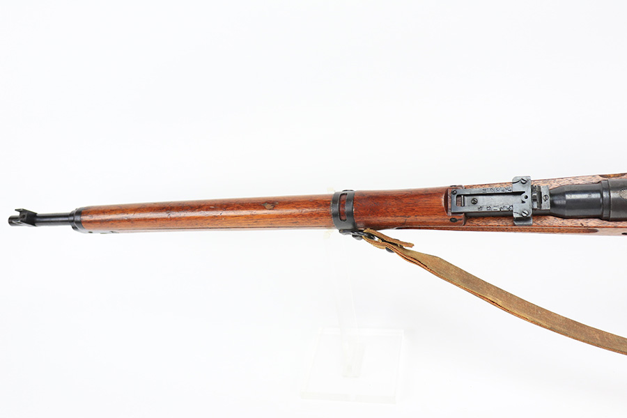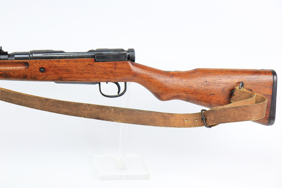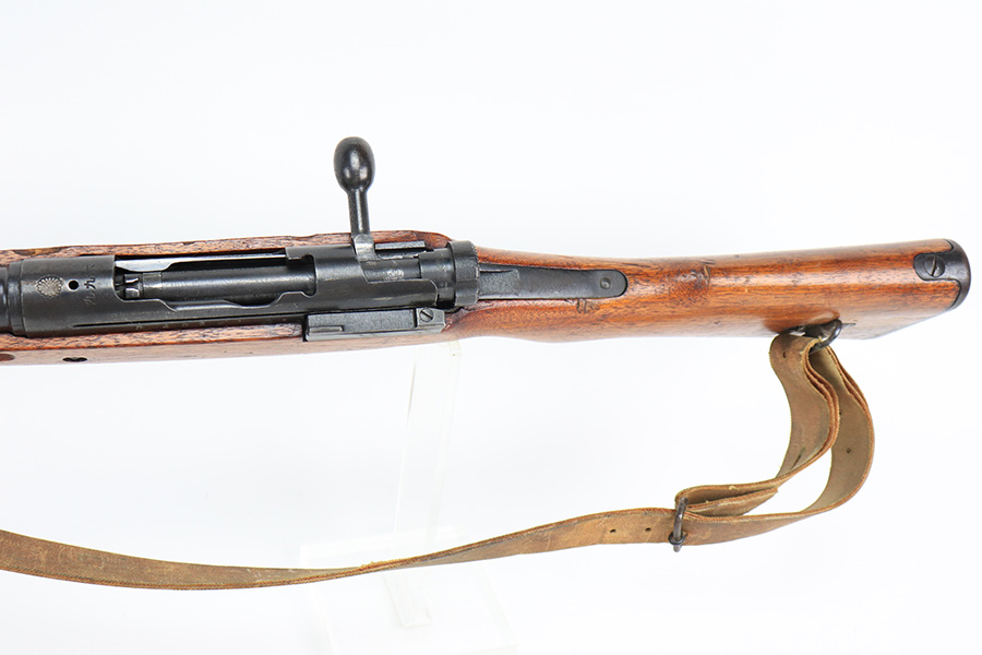 6/7/22 – This is a very nice example of an Arisaka Type 99 rifle issued to the Japanese military during WW2. The gun is mismatched and has only a partially intact Imperial mum stamp on the receiver. Comes with a period-correct cleaning rod and rubberized canvas sling. There is minor muzzle wear, some tiny freckling on the receiver, and spotty oxidation on the floor plate / trigger group. Noticeable thinning and heavy oxidation on the butt plate. The stock has noticeable dings, scratches, bruises throughout. A few more noticeable gouges here and there. Minty bore.