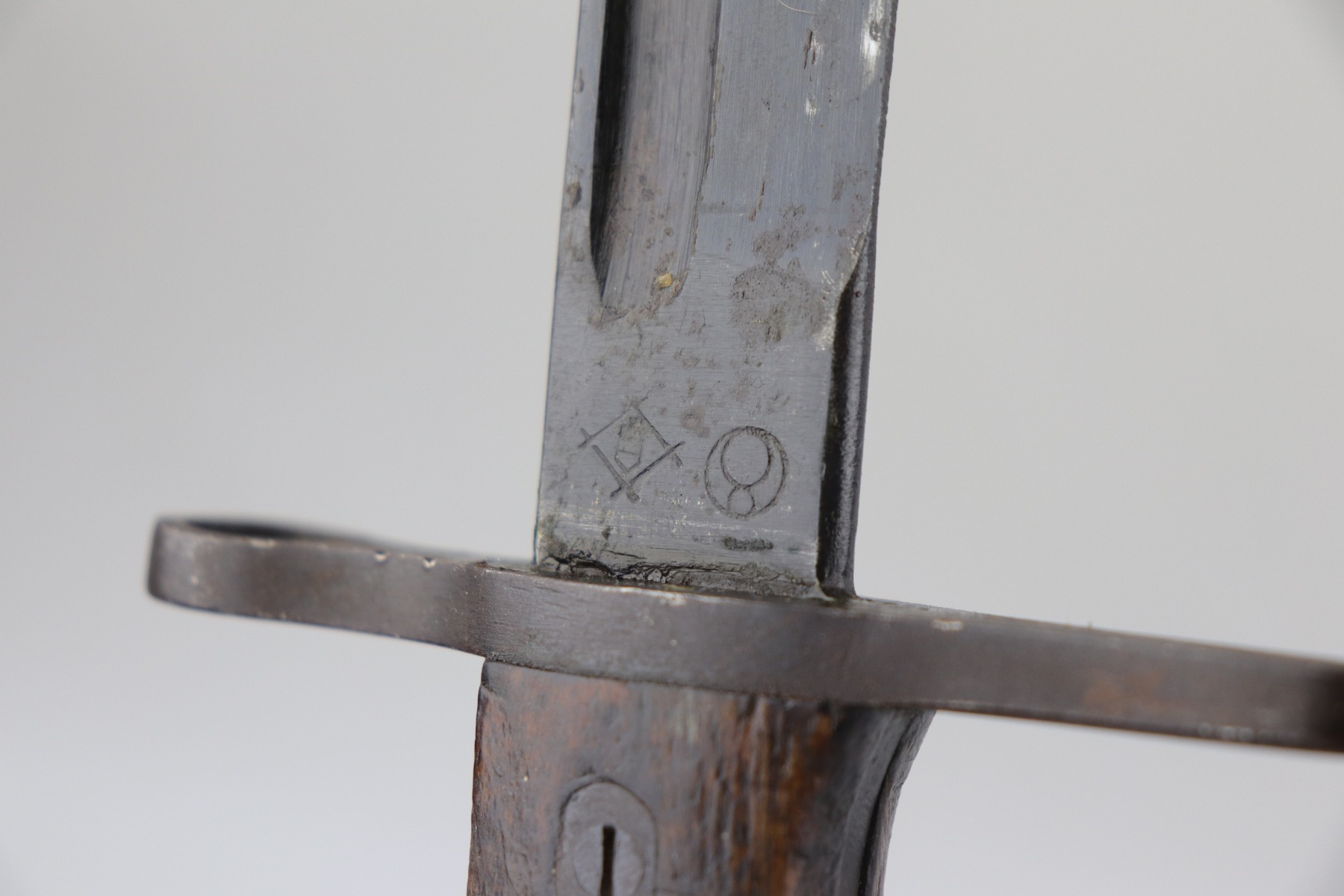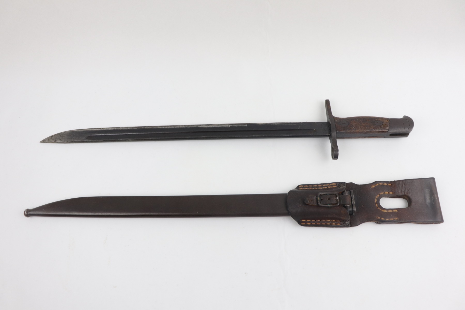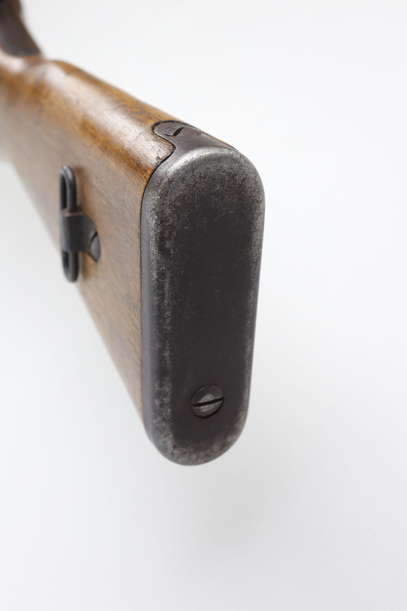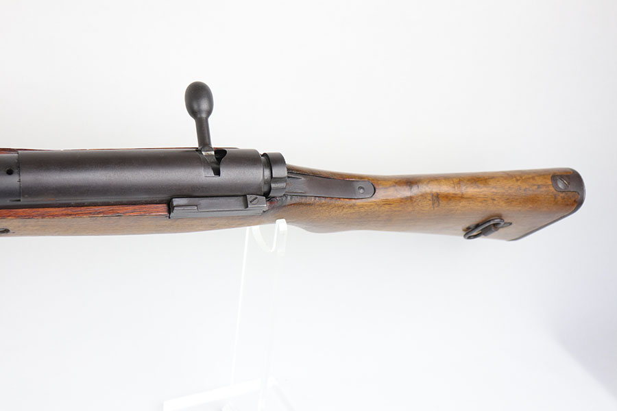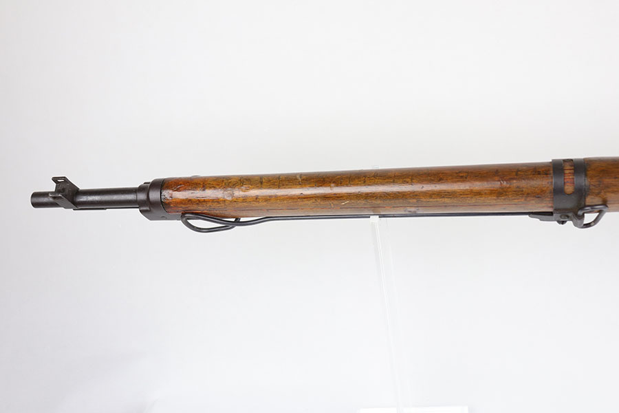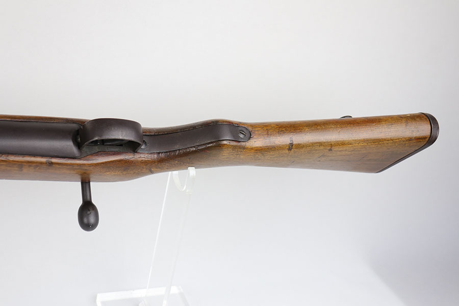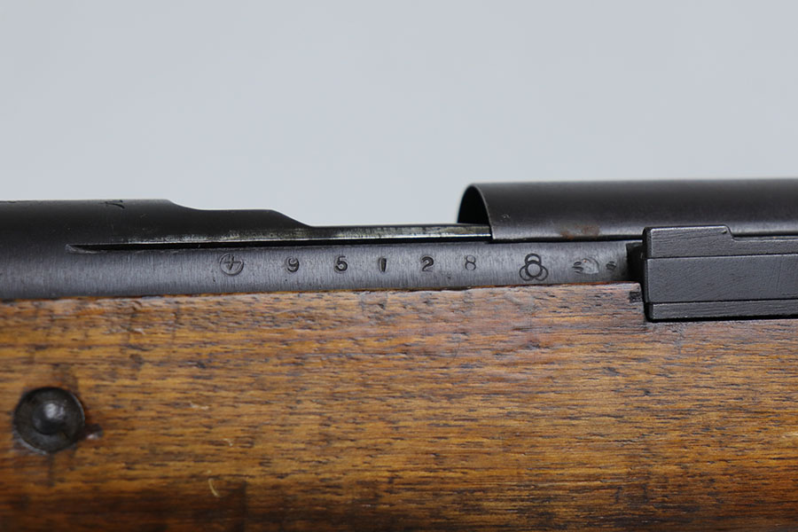 7/24/20 – This is a Type 99 Arisaka by Kokura (made in 1942). Has a very nice finish throughout and an intact chrysanthemum. Also has the bipod and a dust cover. The dust cover is matching numbered to the gun. There is patina throughout the dark finish, but it is all original and we’d rate around 85%. The stock appears to have been stained, as many were after they were brought home from the war. Numbered small parts appear to be matching. The stock is not numbered or marked. The bore is very nice with strong rifling, but there is some signs of light wear in the grooves. It comes with an original bayonet – Nagoya arsenal marked. The bayo comes in the original scabbard with the leather belt loop. Everything is in excellent condition. The blade has retained much of its original bluing.