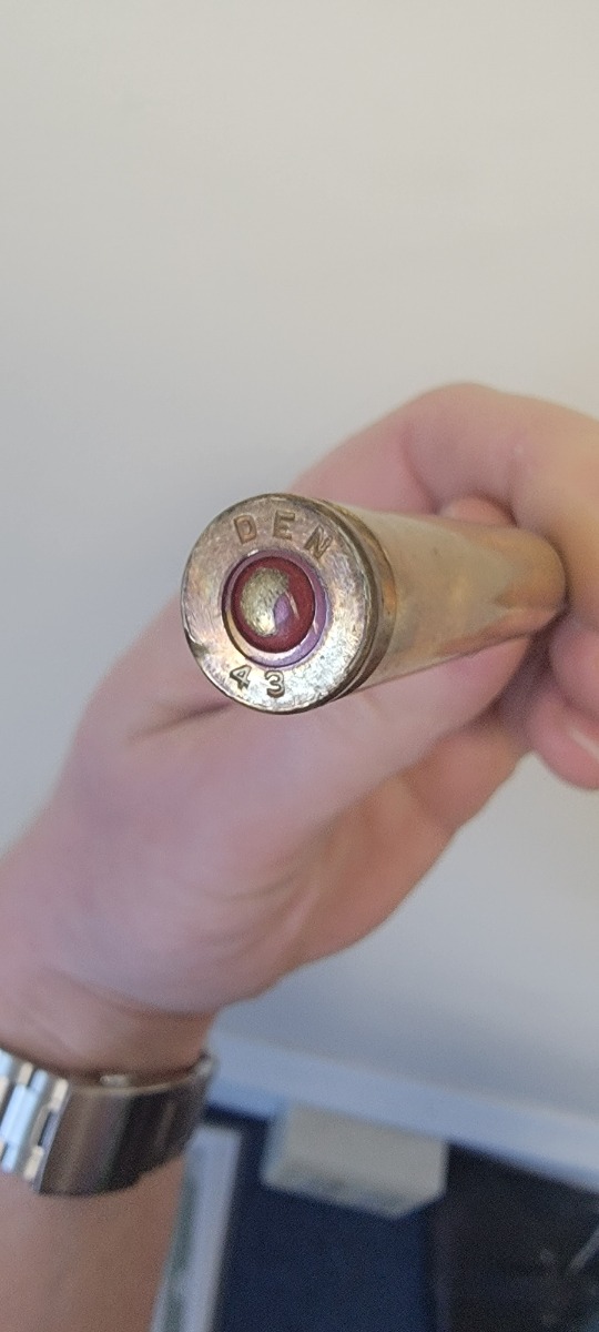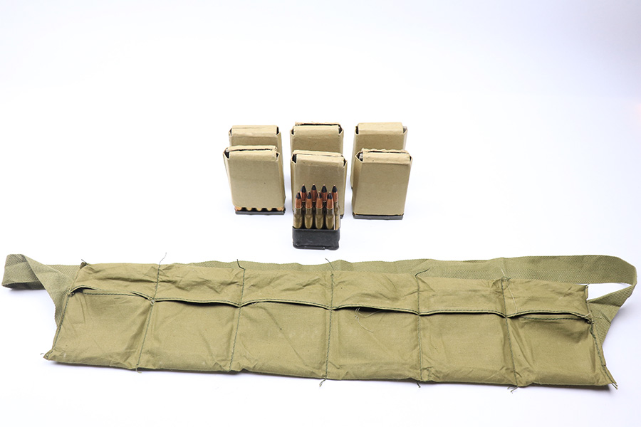4/20/22 – This is a lot of 68 armor piercing .30-06 rounds of ammunition. The rounds come in sets of 5 on metal stripper clips for the M1903 rifle. There’s one M1 Garand clip of 8 rounds, as shown. Also included is a olive green ammo pouch. All rounds are in excellent condition. Most of the rounds are head stamped “DEN 43”, and a few others are stamped “FN 68” or “FN 66”.