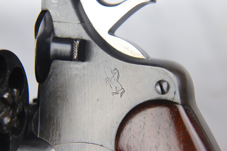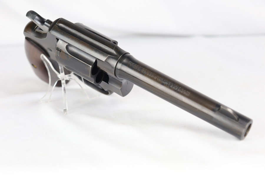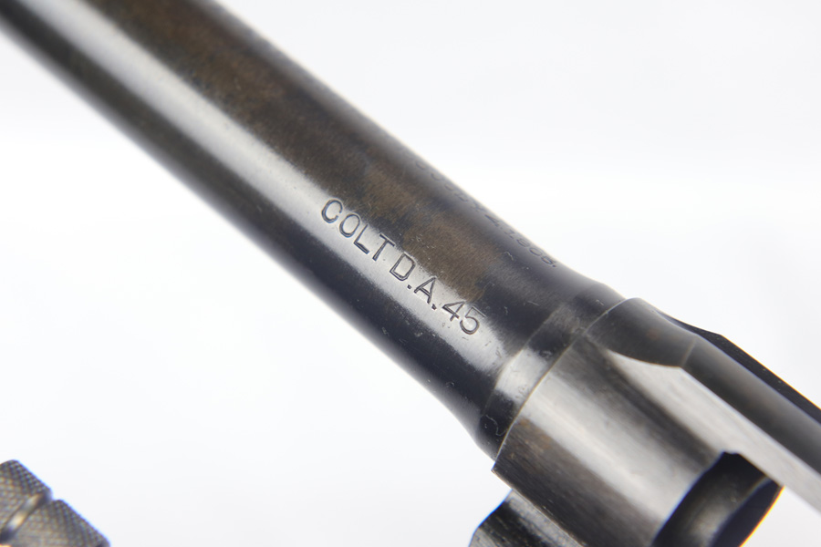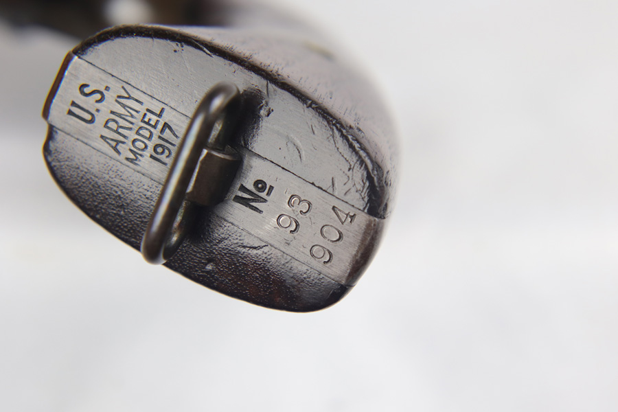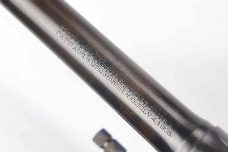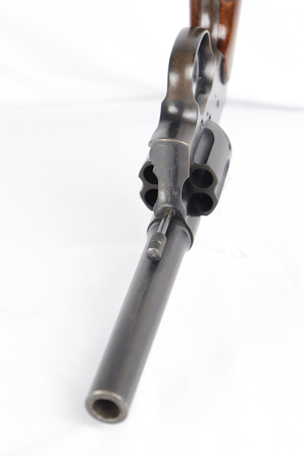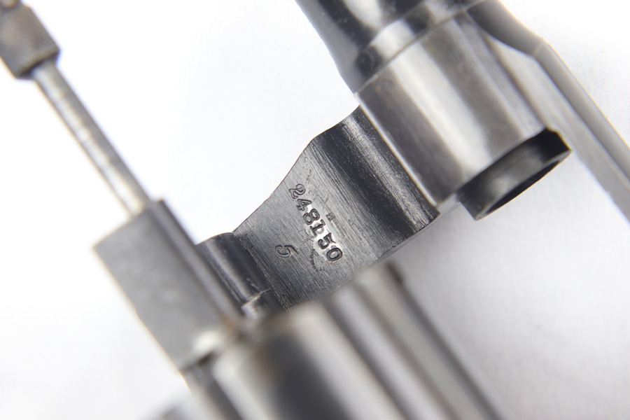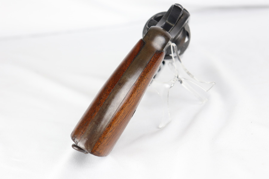 11/6/18 – This is a military issued Colt M1917 revolver from the Great War era. This is a nice example of an original M1917, with the original matching numbered grips. The revolver shows minimal actual finish loss or rub wear aside from the back strap, but there is browning coming through all over. Good timing and action. Barrel is UNITED STATES PROPERTY marked. Bore is nice and shiny.