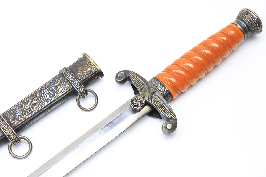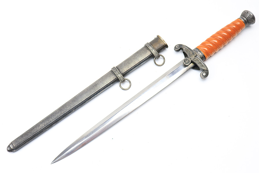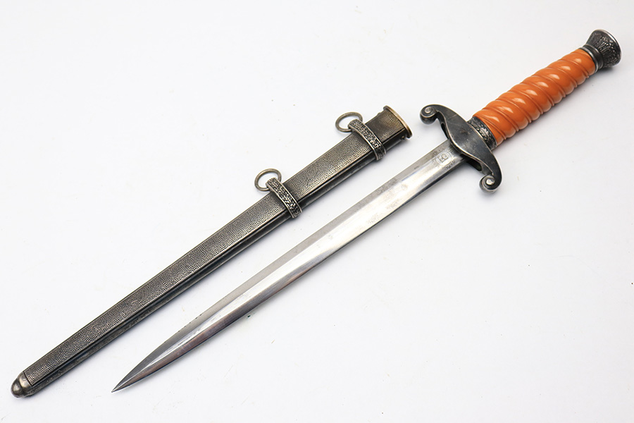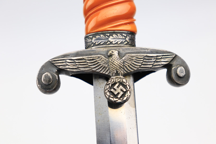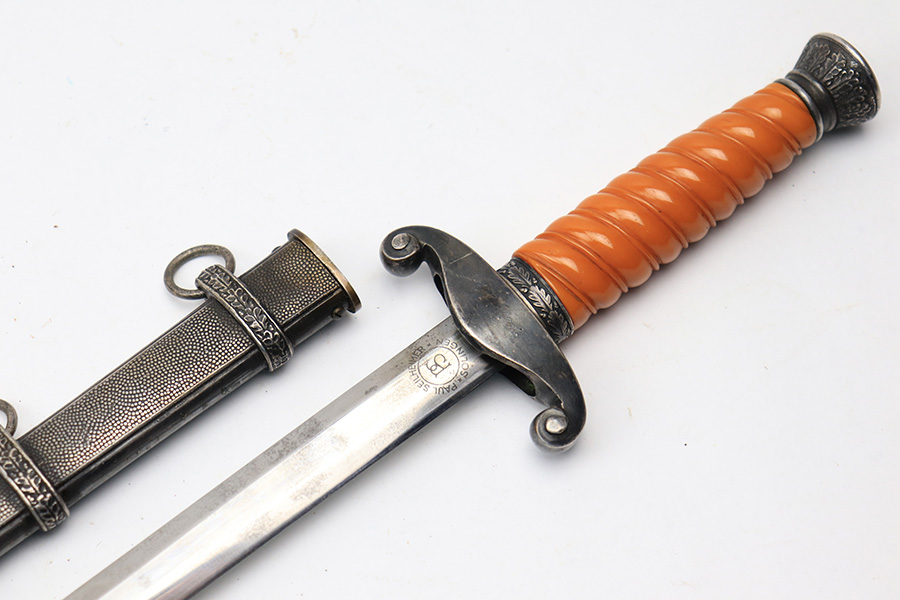 3/24/22 – This is an original Nazi Army dagger by Paul Seilheimer. The dagger is in great overall condition with a clean blade that has minimal surface discoloration and mild signs of aging. No evidence of sharpening along the edge. Excellent burnt orange handle. Comes with an original scabbard that has no dents or issues.
