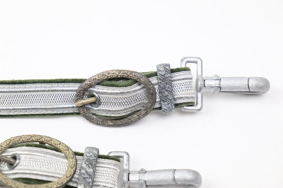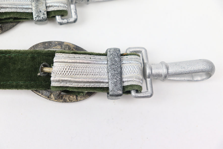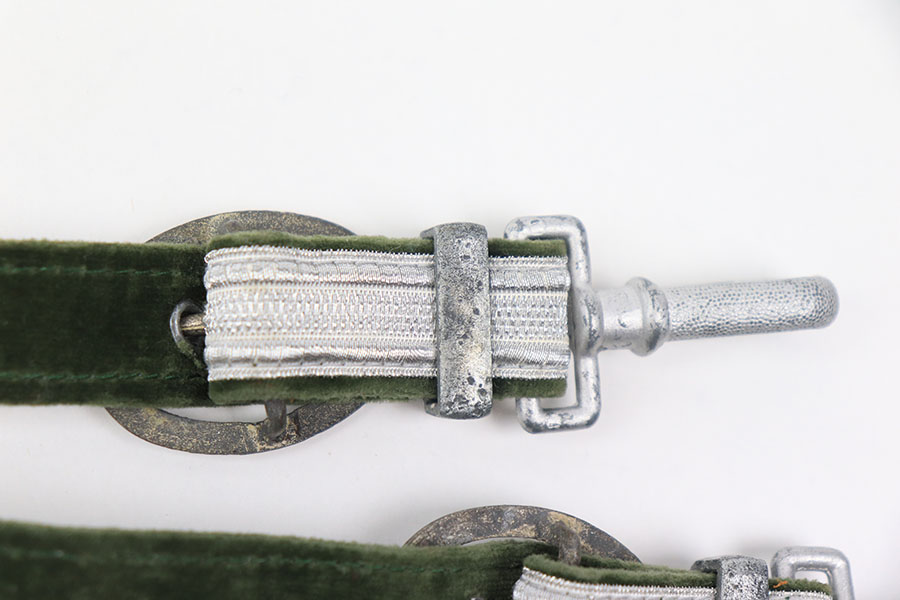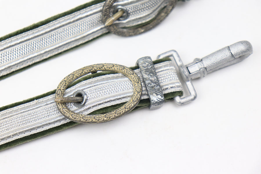 11/29/21 – This is a minty condition WW2 era Nazi Army Dagger hanger. The hanger is in beautiful condition with aluminum fittings and no notable markings or stamps. There’s some mild patina but no major wear.