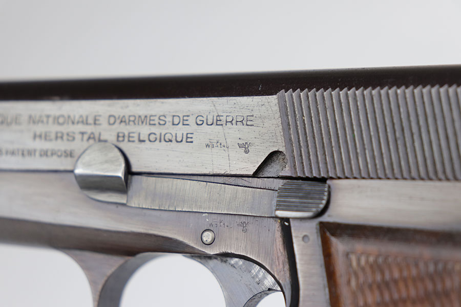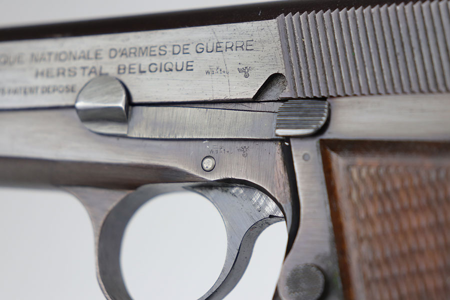 5/7/20 – This is an all matching FN Browning High Power in excellent condition. There is only very minor thinning on the straps, as well as some oxidation in those areas. Terrific profile view with hardly any bluing loss. Excellent grips and strong bore. WaA140 proofs on slide, frame and magazine.