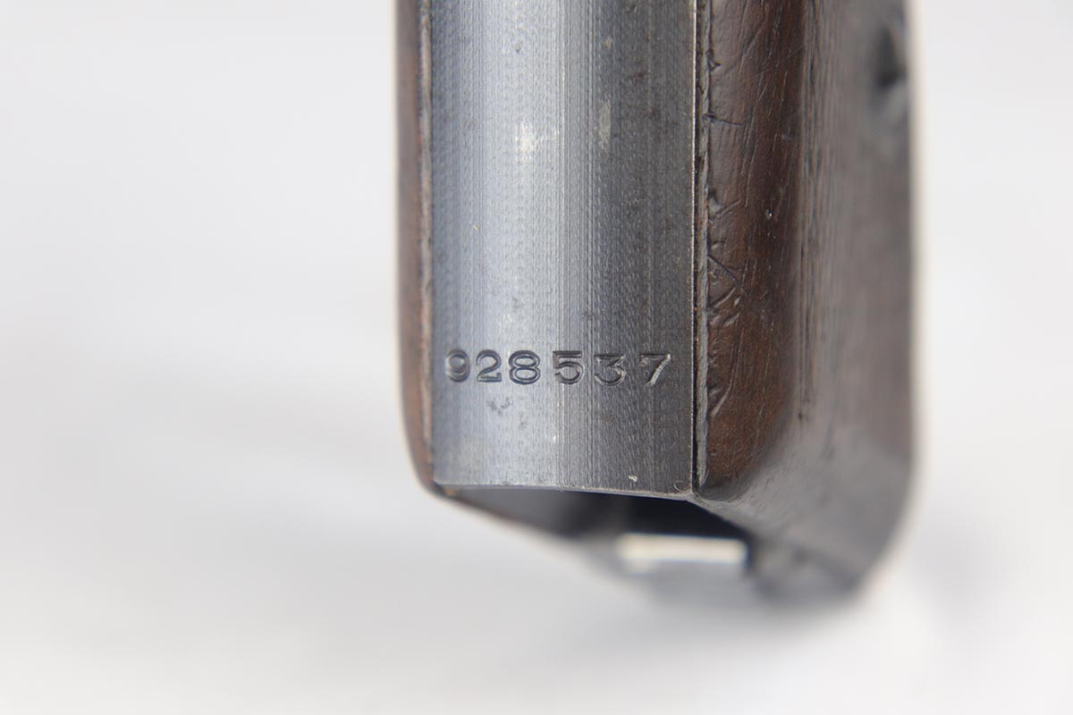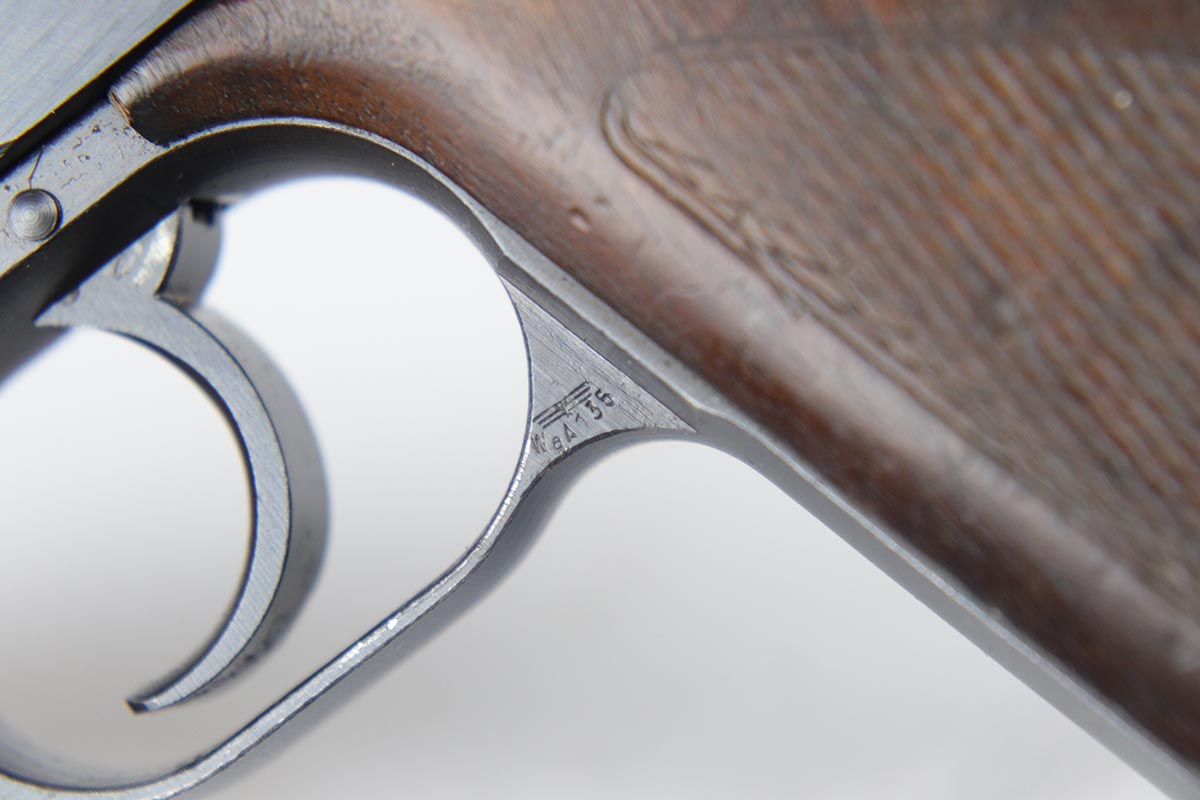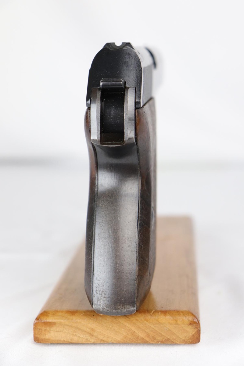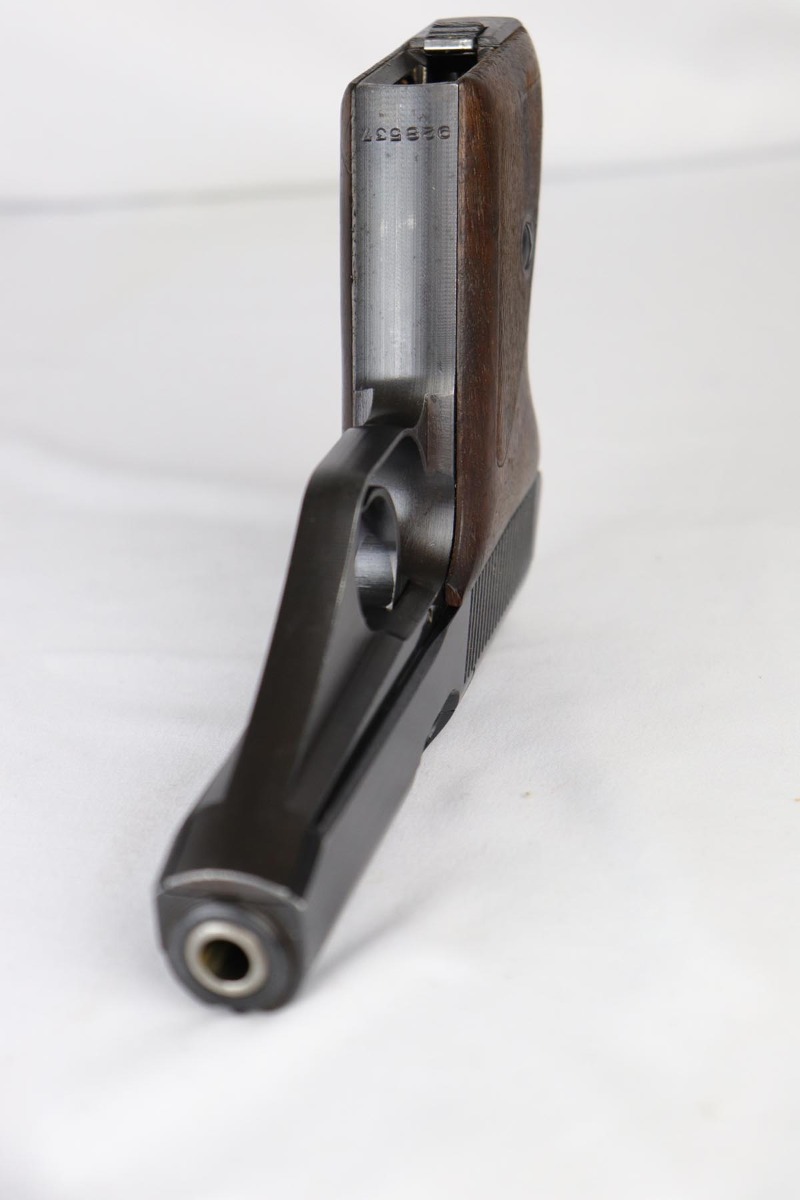 7/2/18 – This is an excellent, all matching and original Mauser HSc that was issued to the German Army toward the tail end of the war.  Bluing rates at 96-97% with some dulling of the straps, and minor finish loss on the bottom of the back strap, middle of front strap and the muzzle.  Grips have some nicks and dings but no major cracks or chips.  Mint bore.