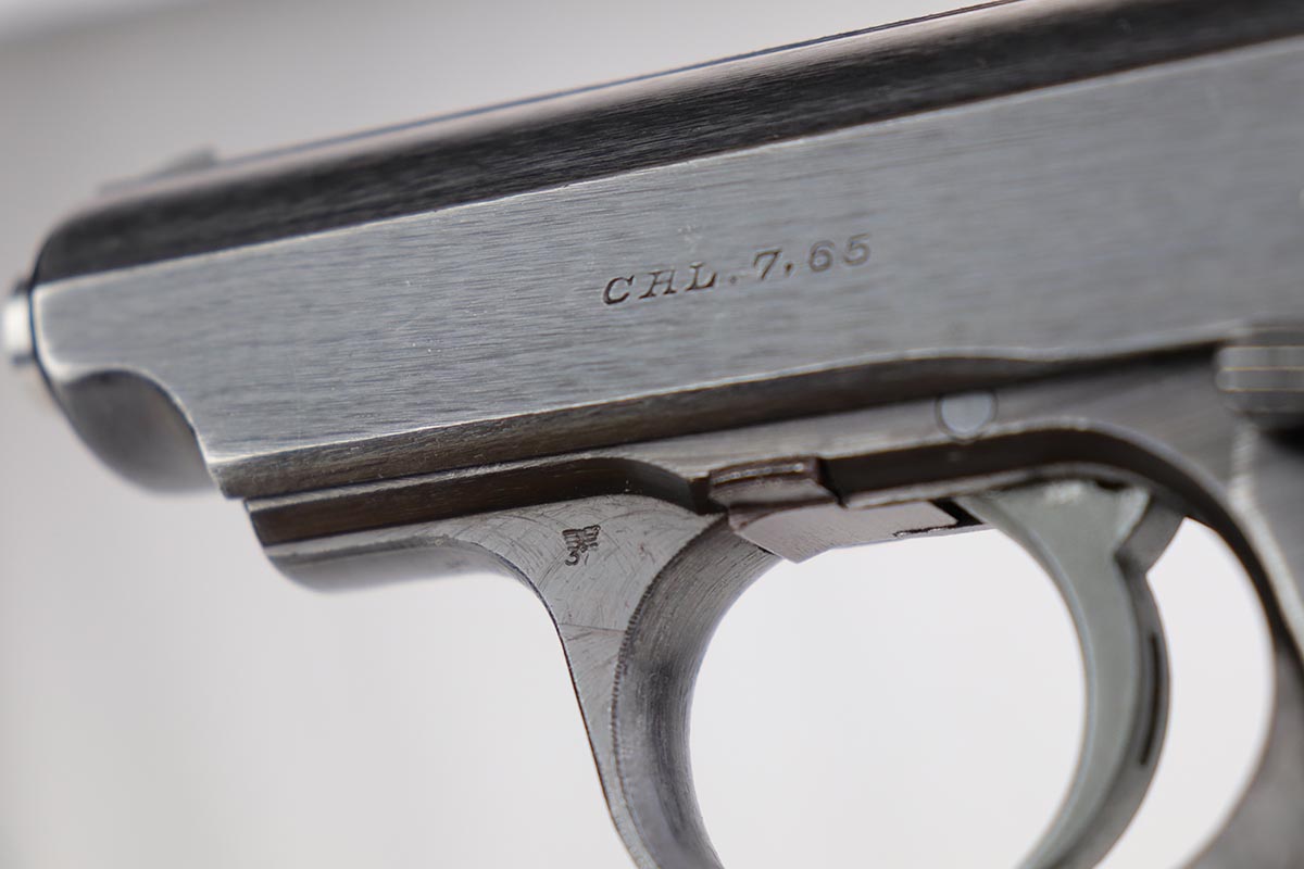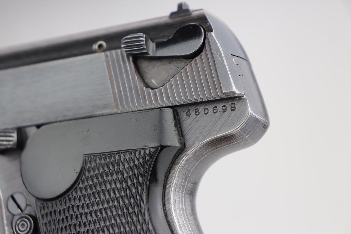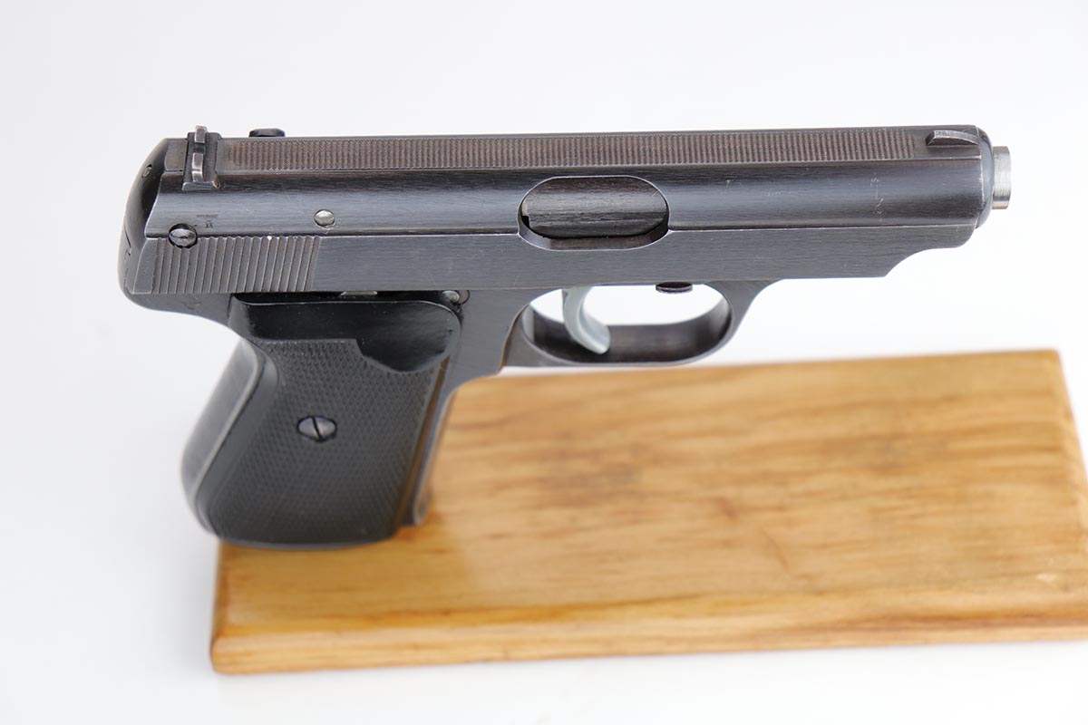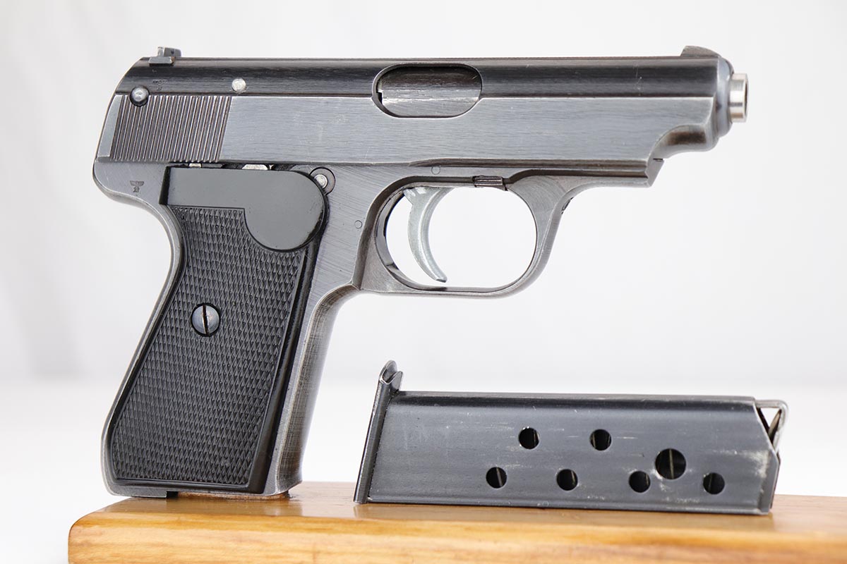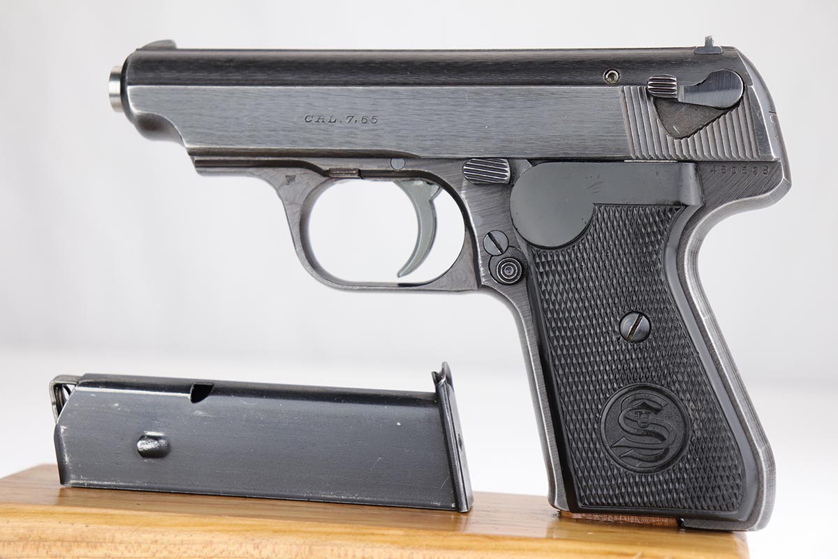 10/16/19 – This is an all original and correct Sauer 38h that was issued to the Nazi military. It has an excellent profile view but notably thin straps. Excellent grips and bore. Half-moon magazine.