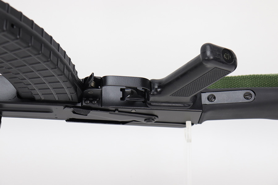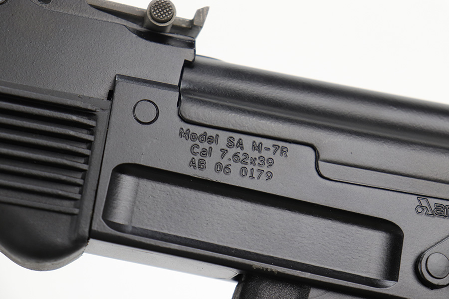 6/15/23 – This is a like-new example of an Arsenal SA M-7R semi auto rifle, chambered in 7.62x39mm. Built on Bulgarian parts. This one has almost no signs of wear except for a few tiny handling marks here and there. Mint bore. Comes with a cleaning rod, green canvas sling, and one magazine. From the Arsenal website: “Arsenal, Inc., the premier American importer and manufacturer of semi-auto rifles, is proud to offer to American shooters the SAM7R. This 7.62×39 caliber rifle combines authentic, high-quality features rarely seen in the American market. From its intermediate-length trapdoor buttstock to its removable muzzle nut, every component of the SAM7R is engineered to provide decades of dependable and accurate service. The SAM7R rifle is bound to become a sought-after shooter and collectible firearm. Each SAM7R receiver is milled from a hot-die hammer forged receiver blank by Arsenal, Bulgaria. Arsenal’s hot-die hammer forging produces stronger and finer-grained steel. Internal voids and cooling deformations are eliminated by the 5-ton hammer forging process.”