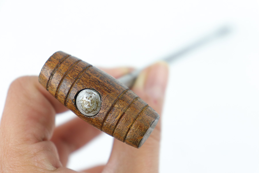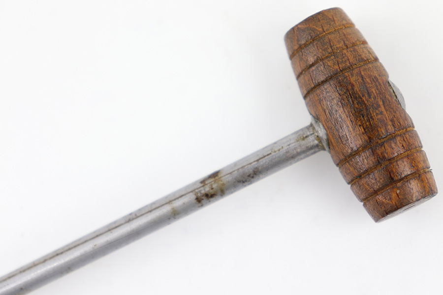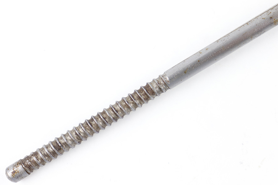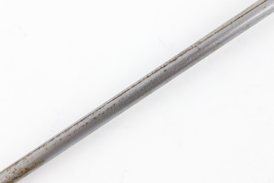5/25/23 – This is an original WW1 production Artillery Luger cleaning rod. The steel rod has a wood handle that swivels freely in its socket. There’s some mild surface patina and discoloration on the rod, but no rust or pitting. The wood is excellent. Measures approximately 25cm long.