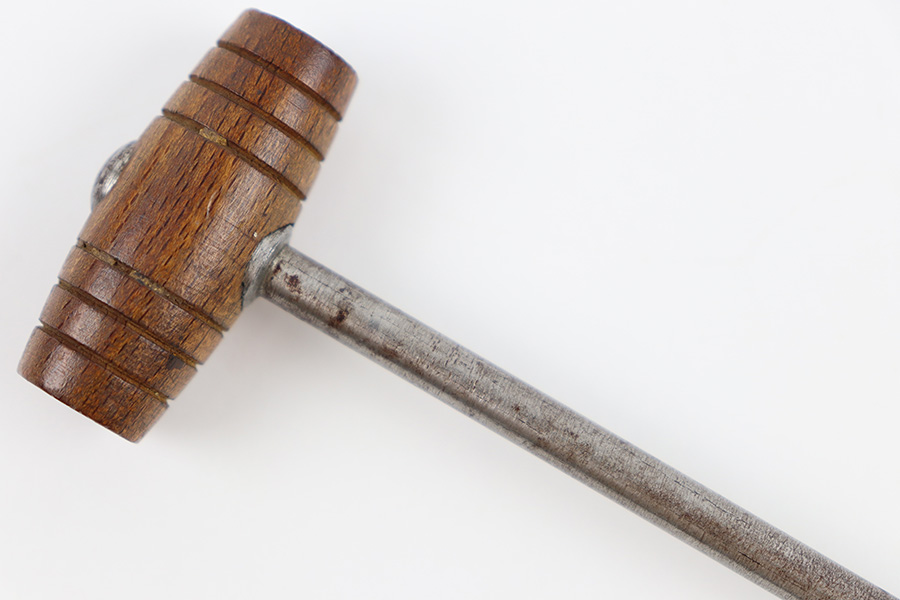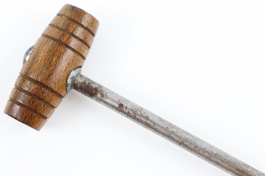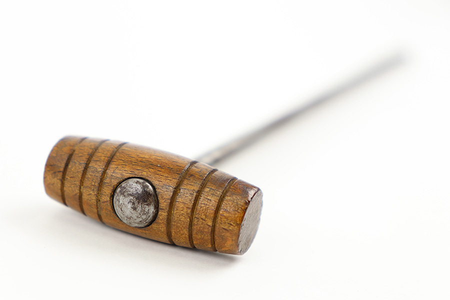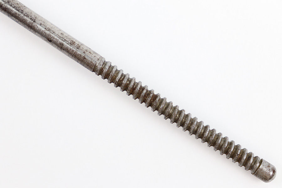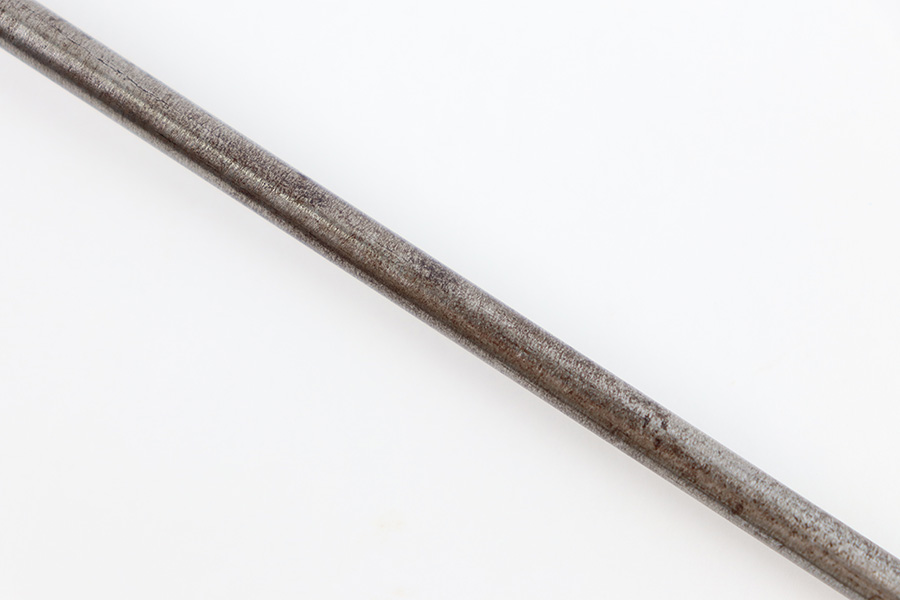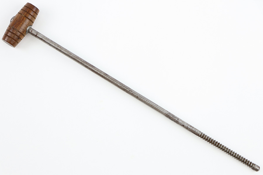 10/23/23 – This is an original WW1 era production Artillery Luger cleaning rod. The rod is in great condition with some light browning patina and surface wear throughout the metal, but no rust or pitting. The wood handle rotates freely on a ball socket, and has no cracks or chips. Measures 25.1cm long (just under 10 inches).