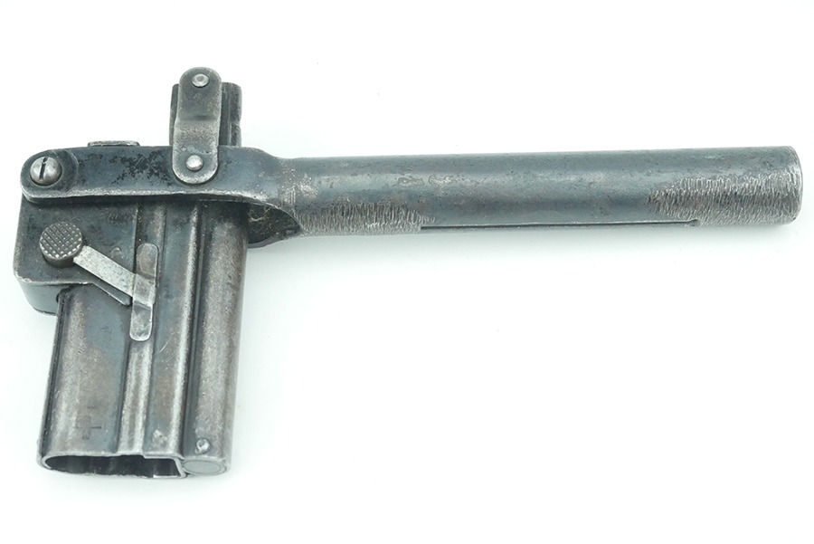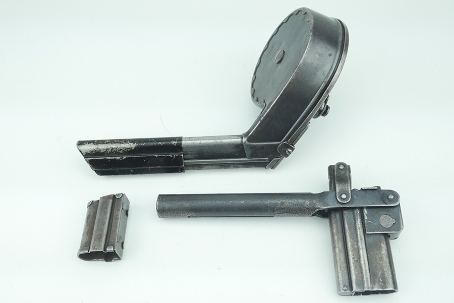 10/29/24 – This is an original Type 2 variation Artillery Luger snail drum magazine with an original loading tool, dust cover, and MG adapter from WW1. All parts are original and authentic, and fully functional. The drum magazine holds 32 rounds of 9mm and is maker stamped by Bing. Matching numbered on the top and bottom of the drum, as shown. Most of the original finish is intact with some typical edge wear and surface patina but no rust or pitting. Imperial proof stamped near the top of the tube. The dust cover is in similar condition with no markings or stamps. The loading tool is Imperial proof stamped and maker stamped by Bing on one side. There’s finish loss and surface patina throughout, but mechanically sound and in very good overall condition.