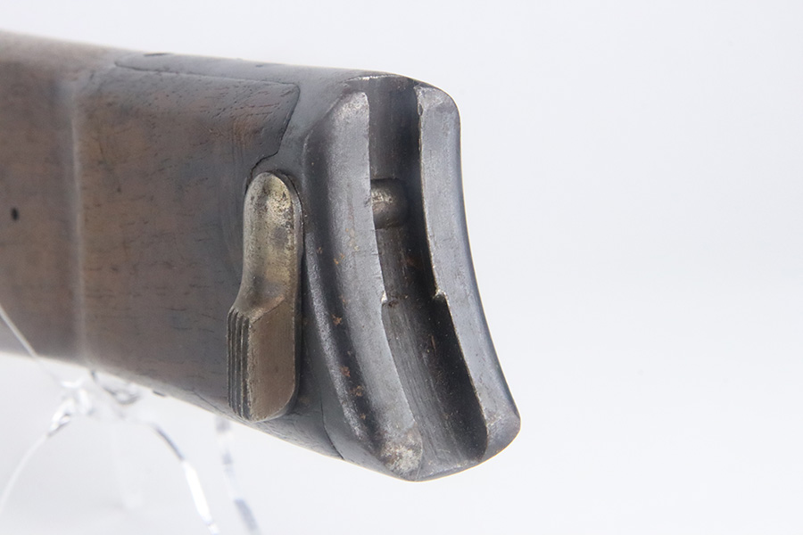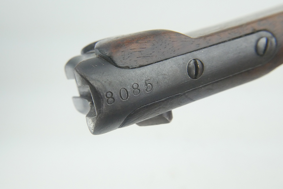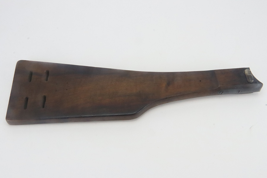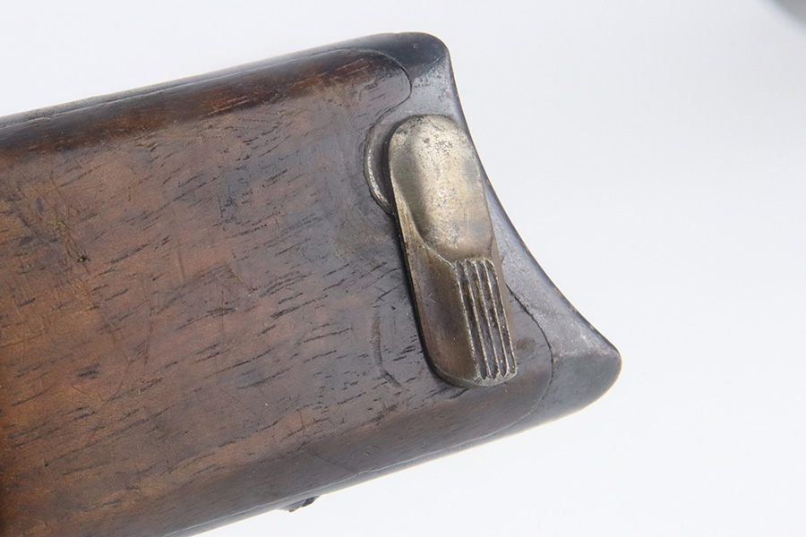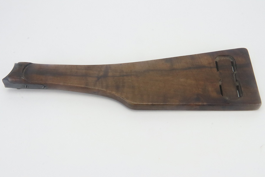 9/12/24 – This is an excellent condition WW1 artillery luger stock. The wood on this stock is in excellent condition with only minor handling wear and pressure marks. The metal on this stock is also in excellent condition and is serial numbered “8085”. The metal parts maintain almost all of their original finish, with only minor finish loss in the areas that would be associated with standard use.