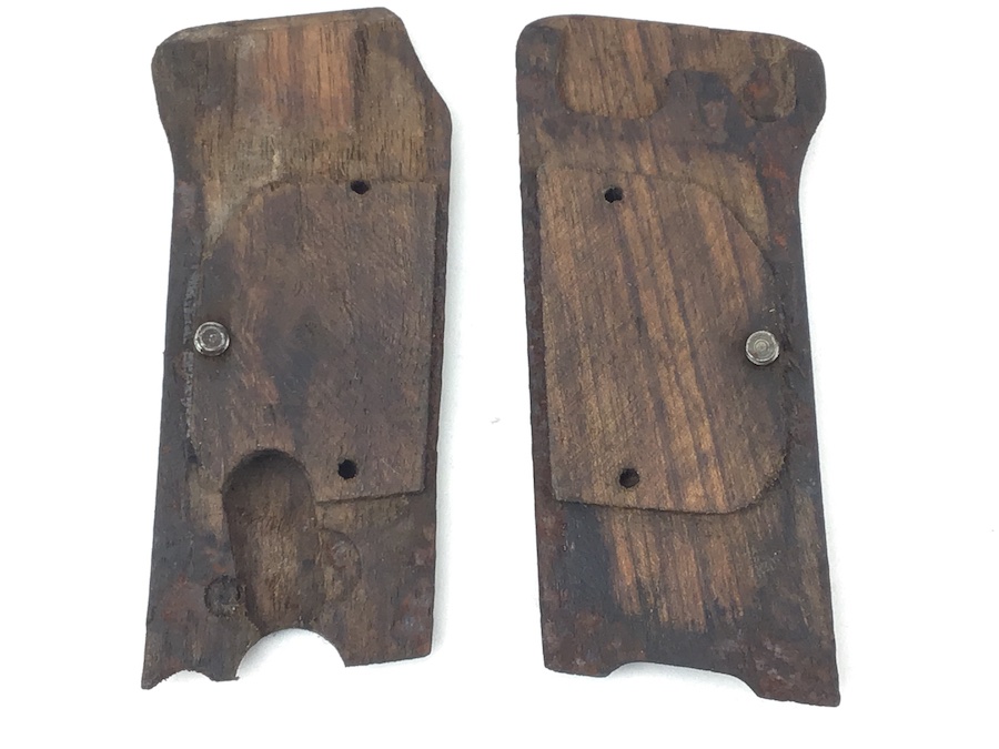 3/19/20 – Original and great condition accessories for the Astra 300, 9mm handgun. Beautiful wood grips and screws. Nice checkering with no chips or cracks. Original magazine with strong, functional spring. Small parts package includes everything pictured. All usable parts.