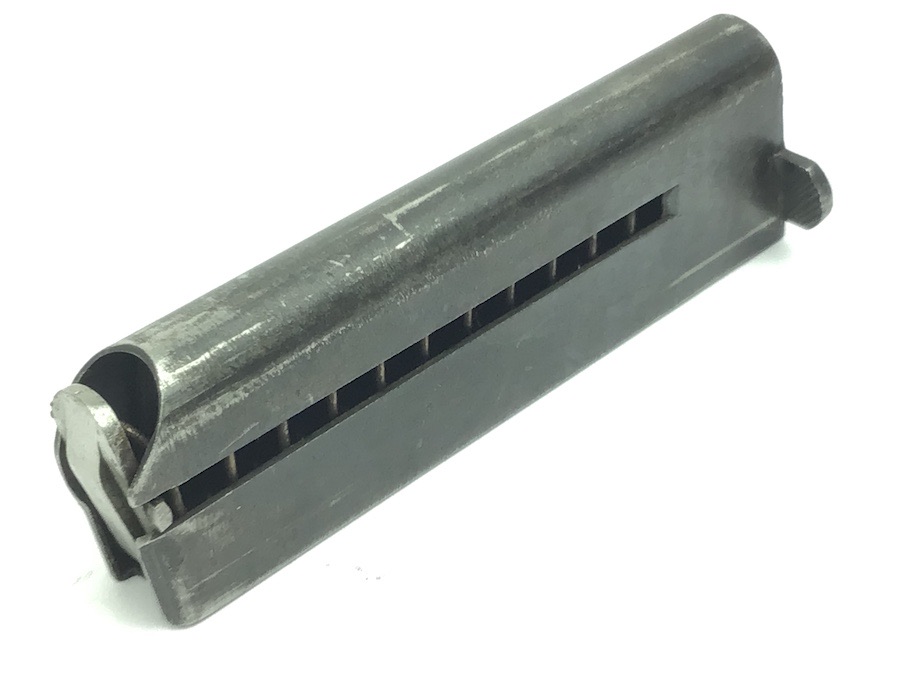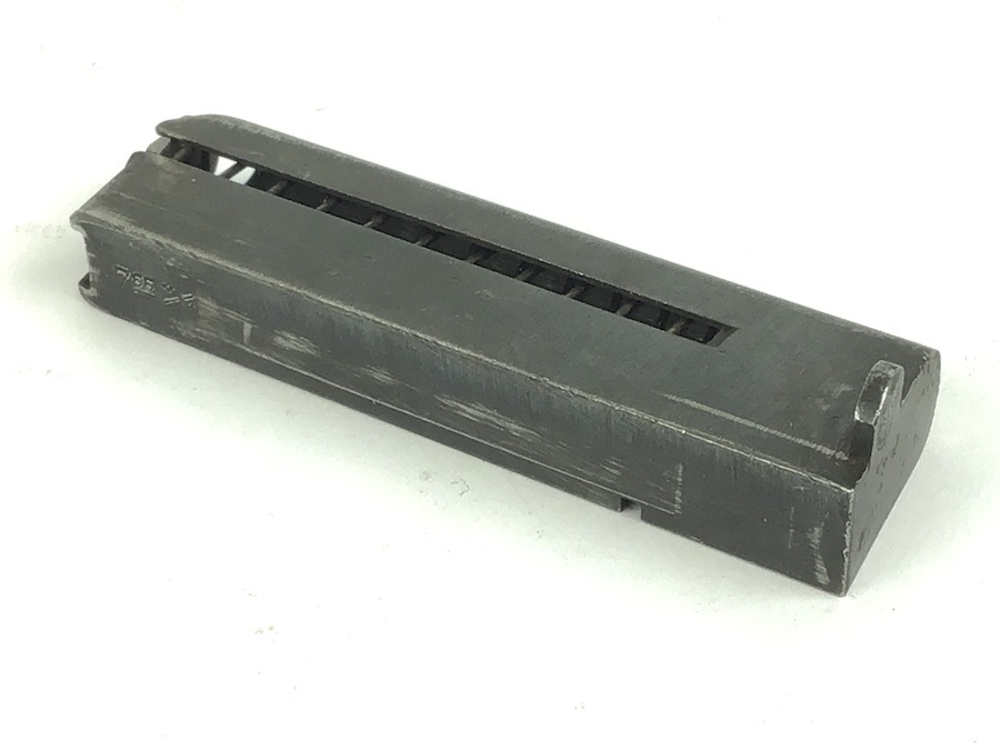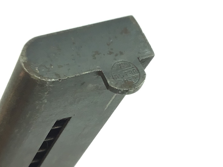 4/22/22 – This is an original WW2 era Astra model 300 magazine. The magazine is in 7.65mm browning. There is some mild surface wear and finish loss but no major issues or notable flaws. Stamped on the spine “7.65m/m”. Fully functional spring. The base is stamped with the Astra logo.