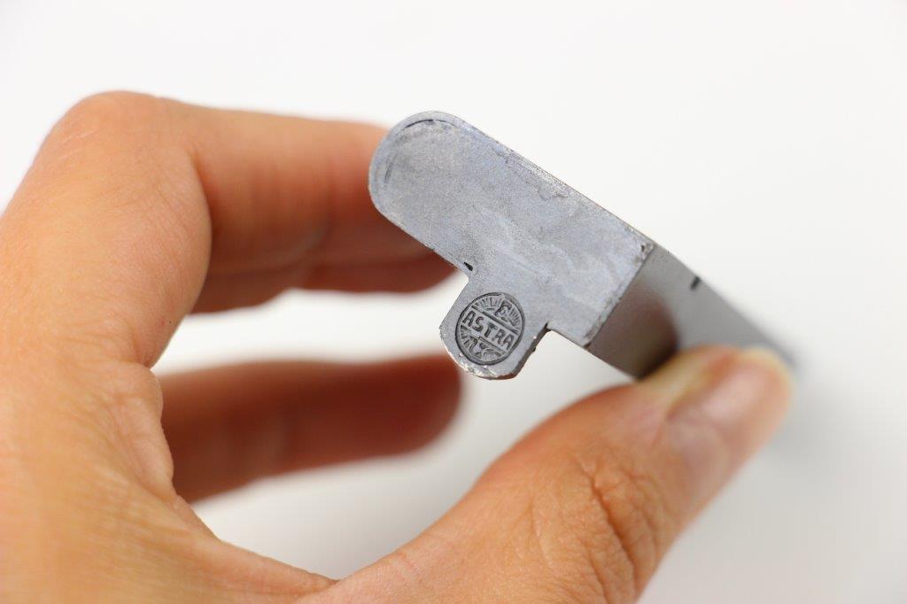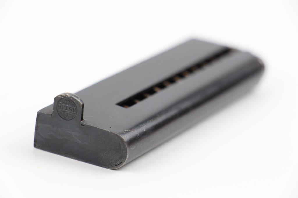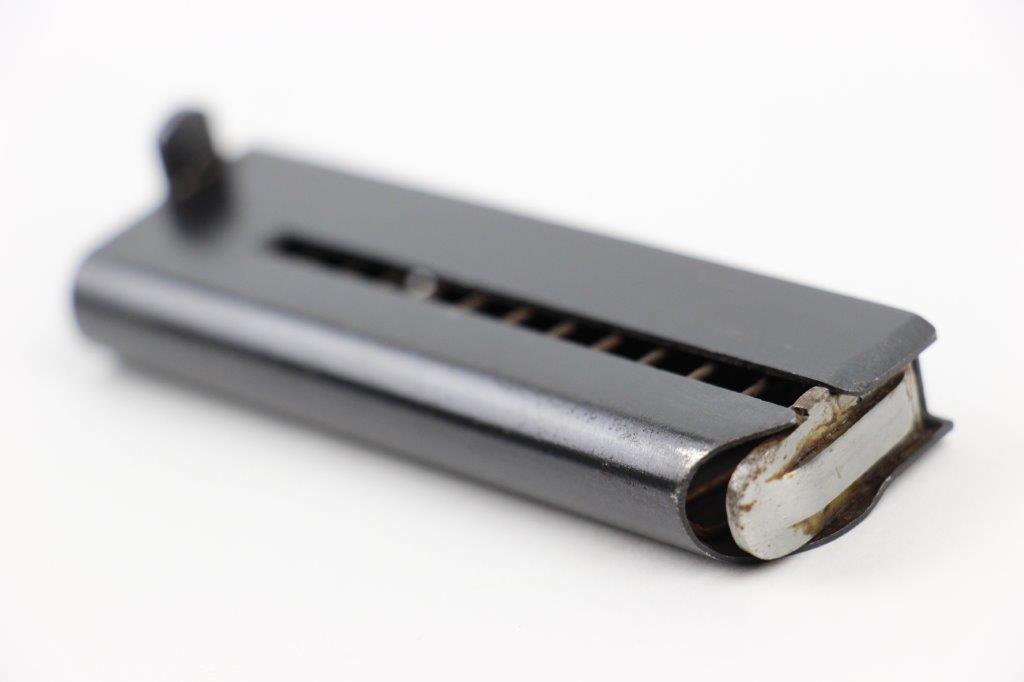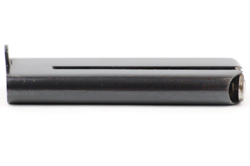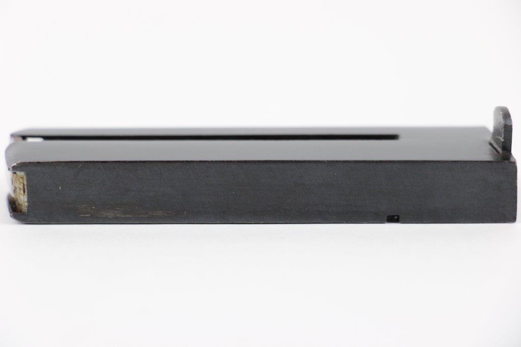 5/20/24 – This is an original Astra model 300 magazine from WW2. The magazine has excellent original blued finish throughout with some light finish loss and thinning from age and use. No rust or pitting, and a fully functional spring. The base is Astra maker stamped, as shown.