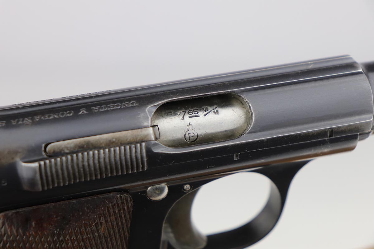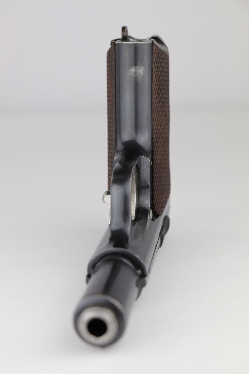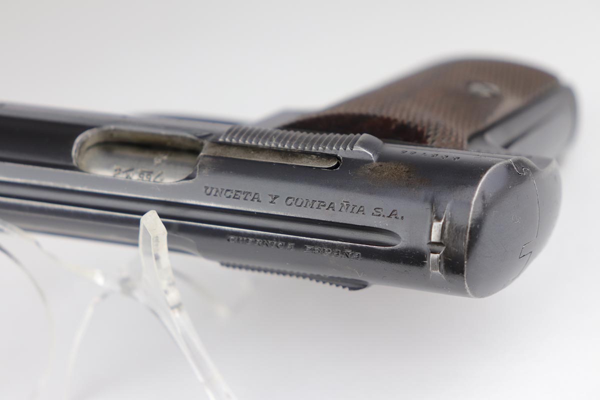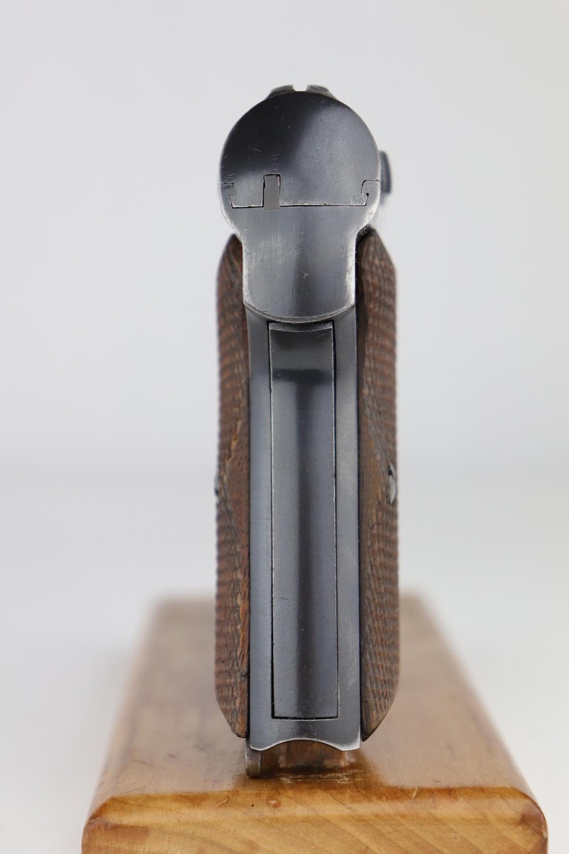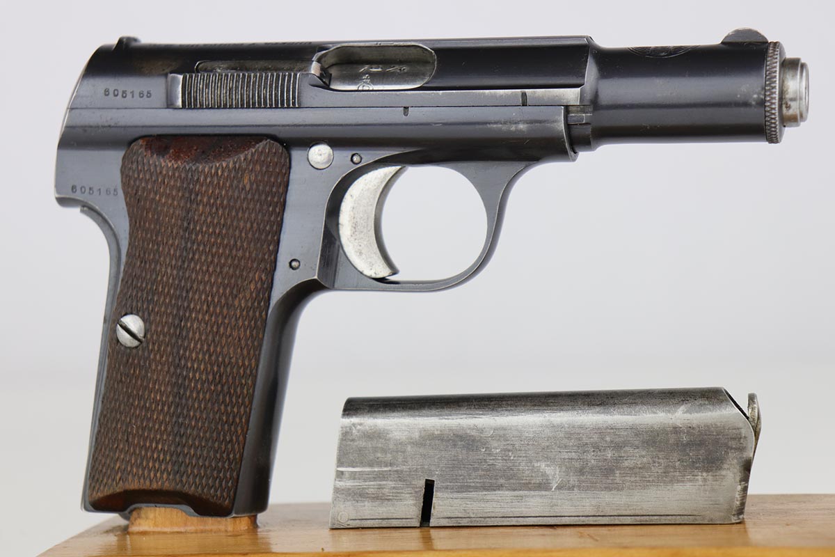 6/5/19 – This is a nice and original Astra 300 that was part of the second contract order by the Nazi Army. This pistol was part of a batch that was delivered on April 1, 1944. There were only ~22,000 of this variation produced, with no waffenamt on the frame and chambered in 7.65mm. The original finish rates at about 92-94%, with minor edge wear in a few areas, and a few stray areas of thinning. Excellent bore and grips.