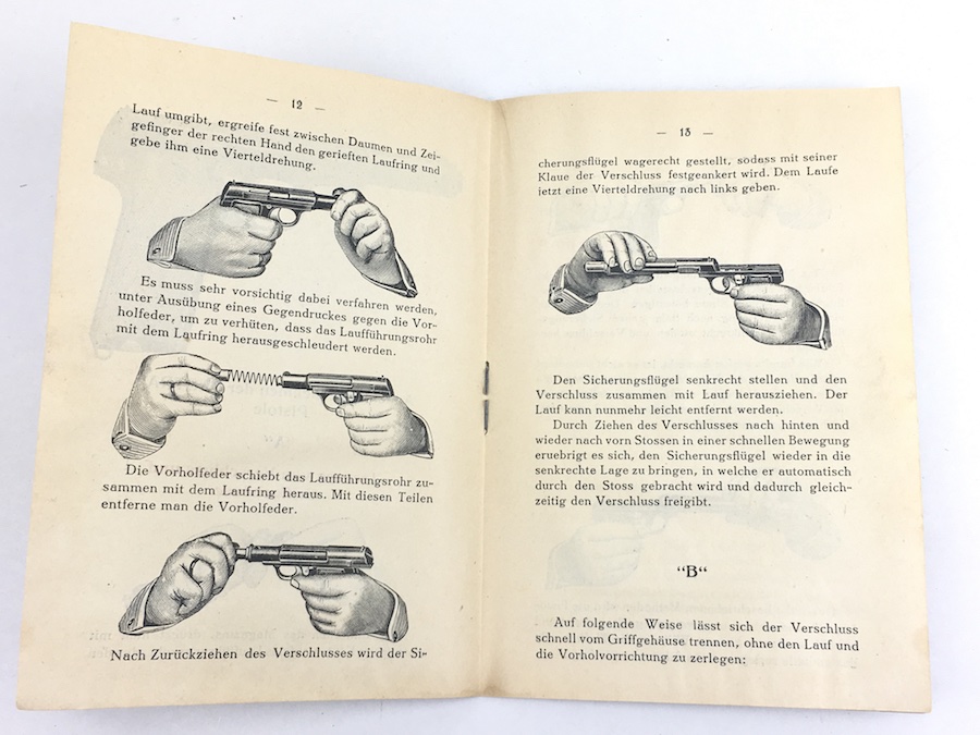 3/28/19 – This is an original WW2 era, German manual for the Astra 600/43 pistol. Printed in 1944 and delivered to the German Army together with over 10,000 pistols. 25 pages with several pictures. Complete with all pages. Minor fading on the front cover but intact. Hard to find manual. Guaranteed original.