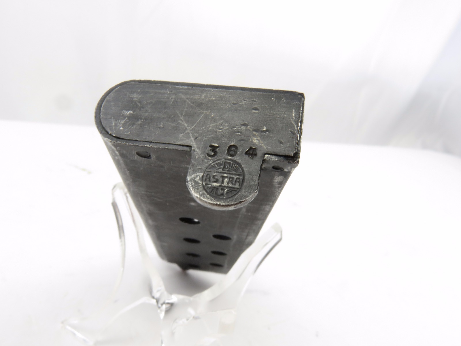 9/1/17 – This is an original WW2 era production Astra 600 magazine. The magazine is in great shape with only minor use wear. The base is ASTRA maker stamped and serial numbered “364”. The spring is strong and fully functional. Guaranteed original.