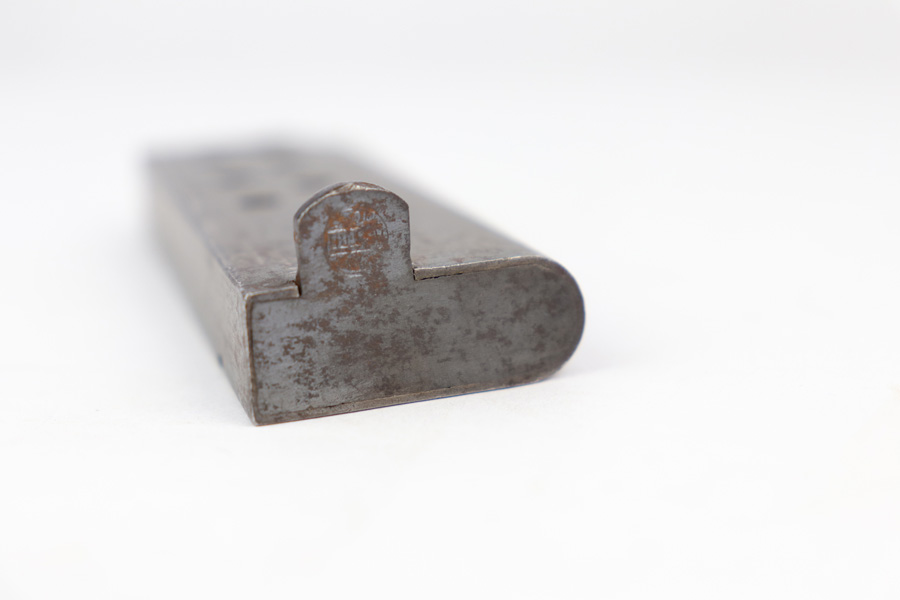 1/10/19 – This is an original Astra model 600 magazine in 9mm. The magazine is in good condition and fully functional with a strong spring. The tube has light brown patina throughout, as shown in photos. The base has some light surface rust near the astra logo. Guaranteed original and authentic.