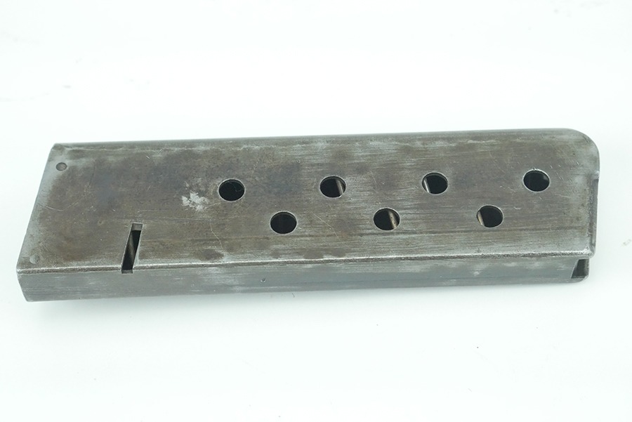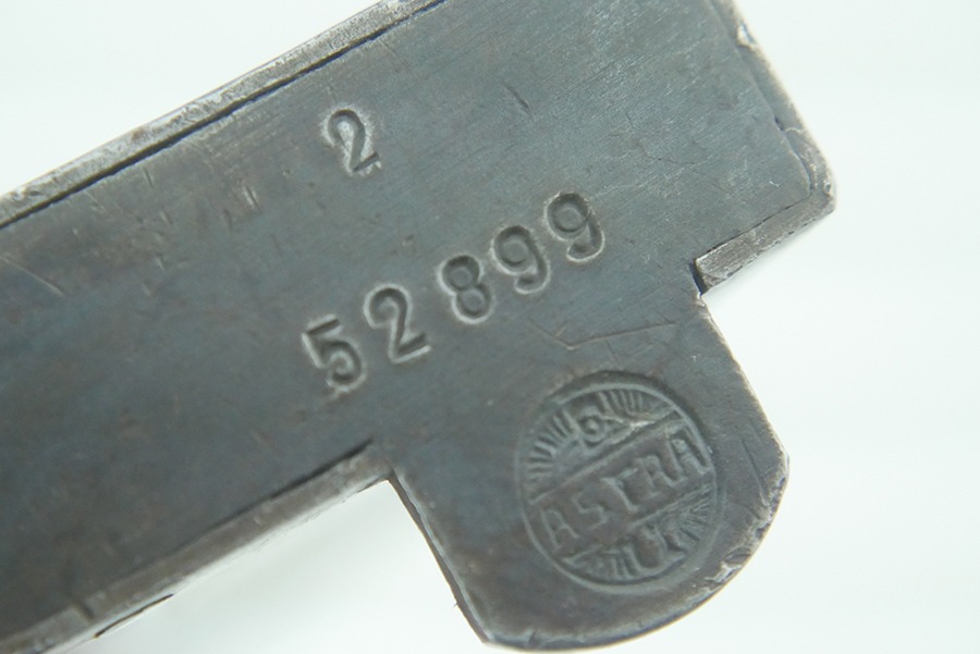 10/4/24 – This is a good example of an Astra 600 magazine from WW2. The body of this magazine maintains some of its original finish, with most finish loss being in areas commonly associated with standard use. There are some small nicks and surface blemishes on the body, but nothing that would effect the functionality and integrity of this magazine. The base plate is stamped with the Astra logo as well as a “2” and serial numbered “52899”. The spring on this magazine is strong and fully functional.