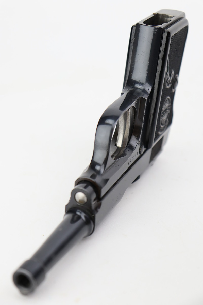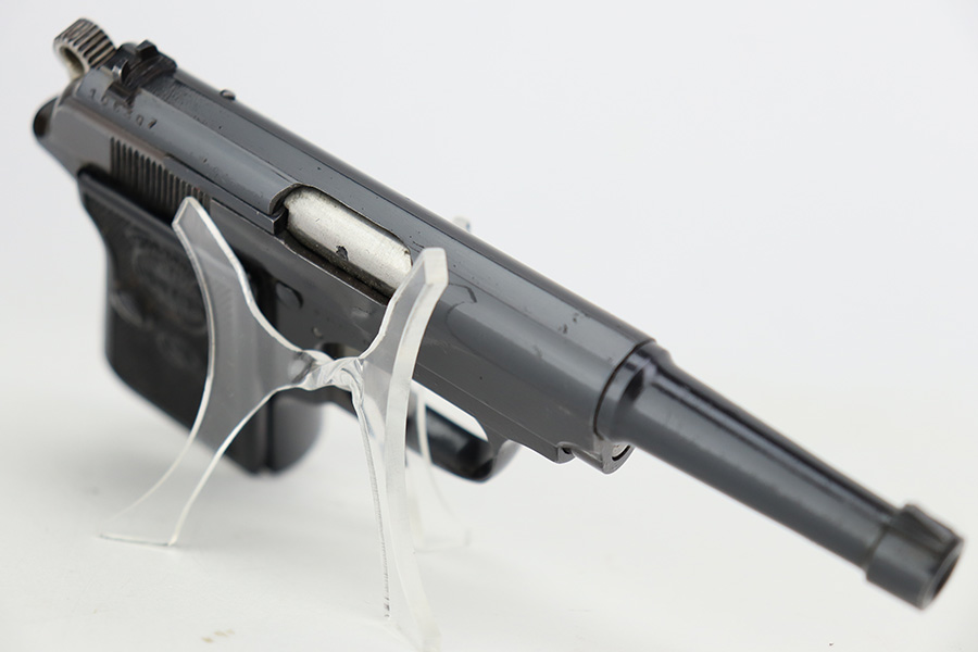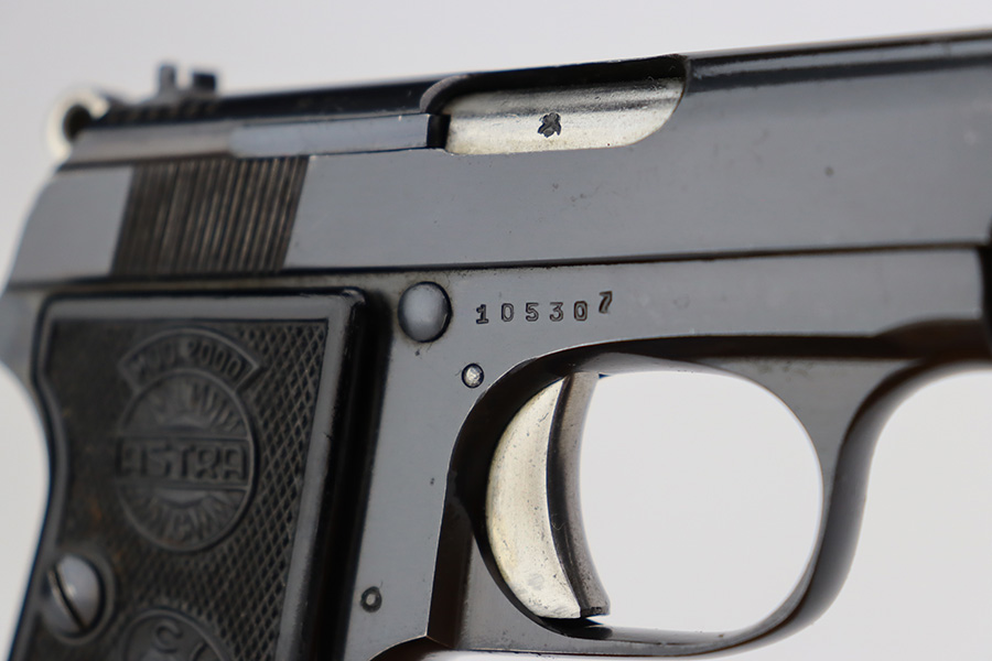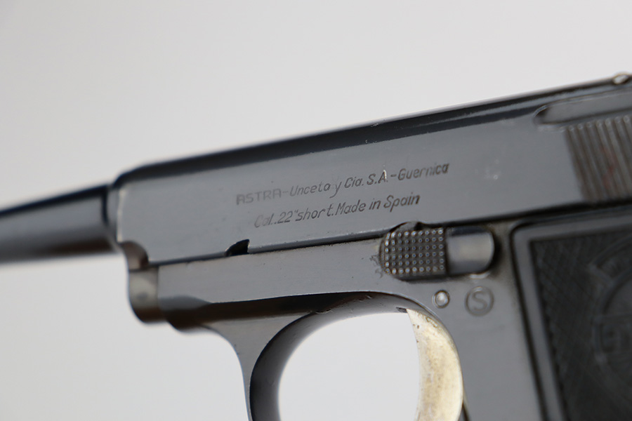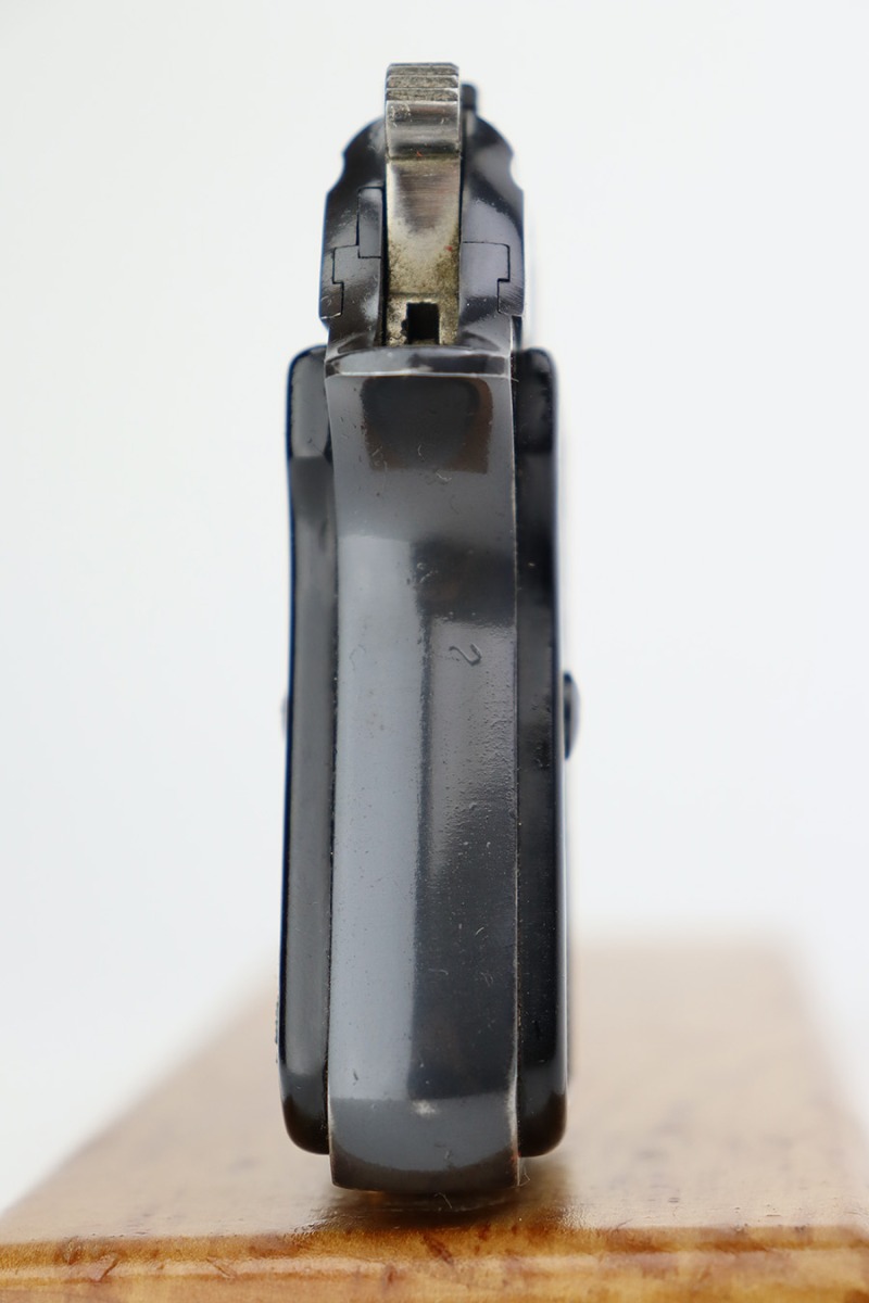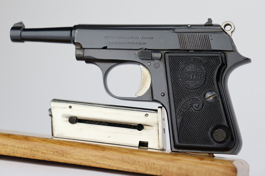 7/28/23 – This is a minty example of a Spanish Astra Model 2000 Cub, chambered in .22 Short. We can’t make out a date code, but from the serial number we believe it was manufactured in the 1960’s. All matching. The gun has retained virtually all of its high polish finish with hints of wear on some of the high edges. Fitted with excellent black plastic grips. Comes with one proper magazine. Excellent, shiny bore.