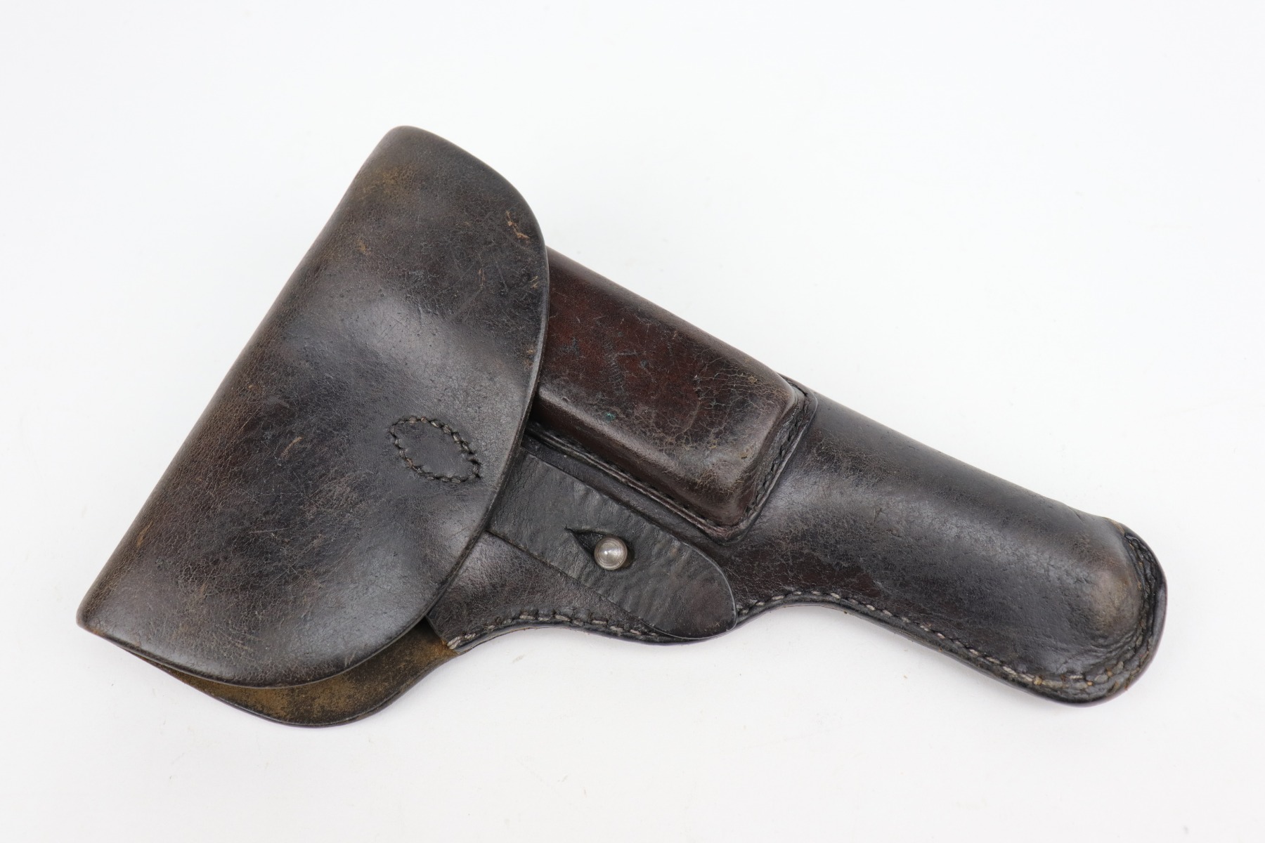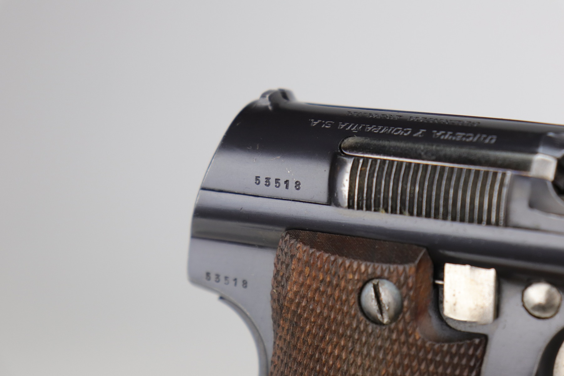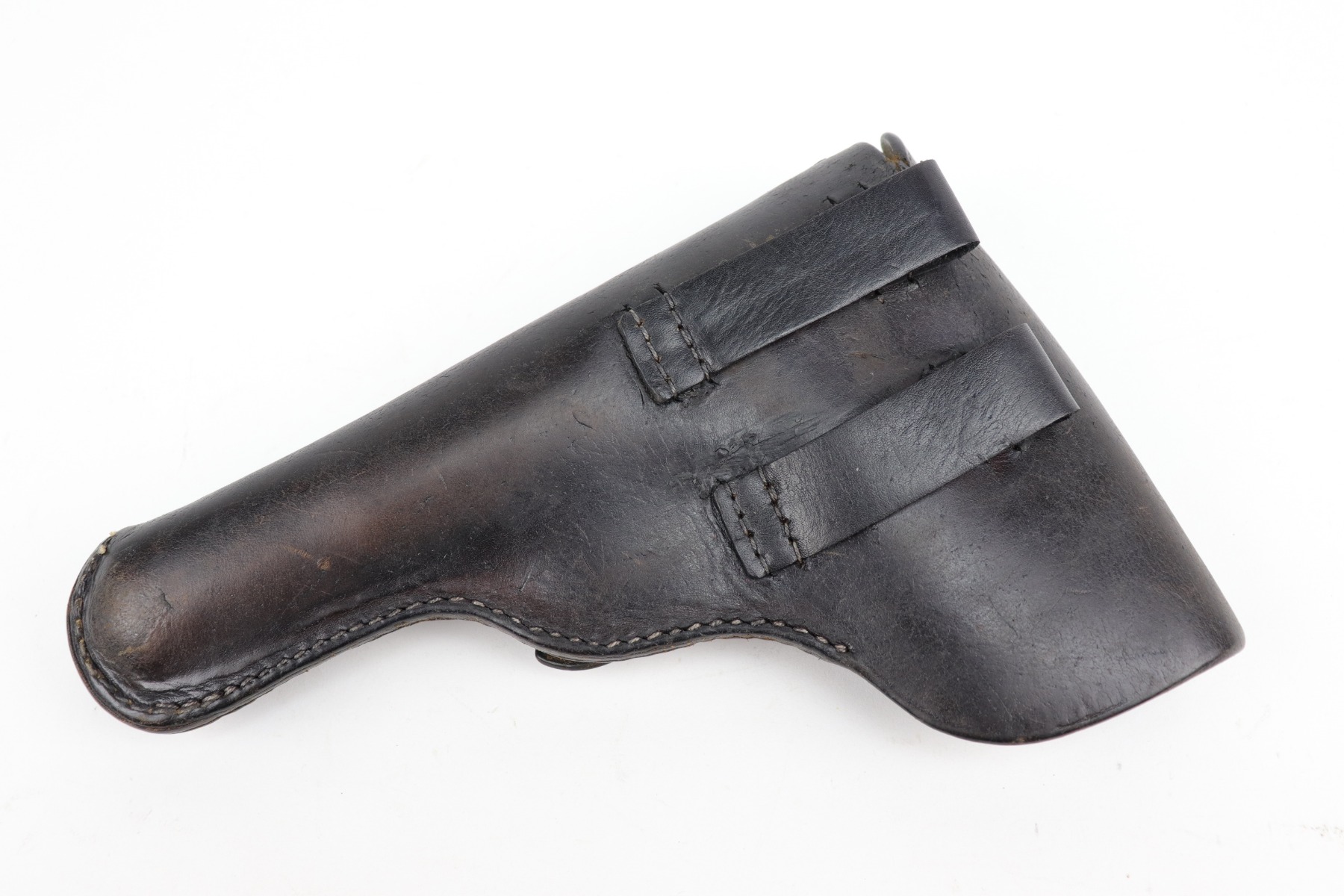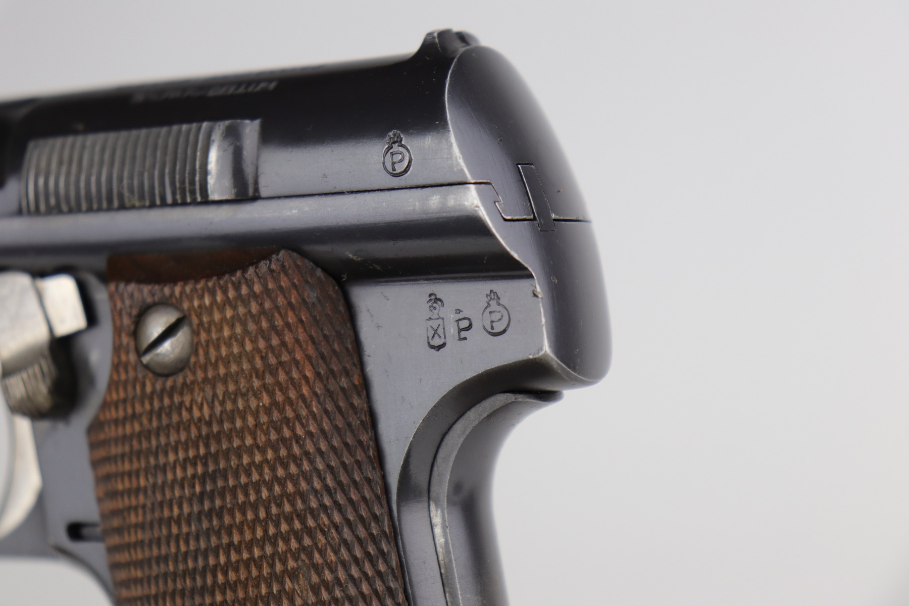 11/20/20 – This is a very nice example of a complete Astra Model 600/43 Rig. It comes with an original holster and two magazines. The gun is all matching and has retained about 92-93% of its original bluing. There is minor wear on the straps and on some of the high edges. It is fully functional and chambered in 9mm. The bore is excellent – shiny with strong rifling.