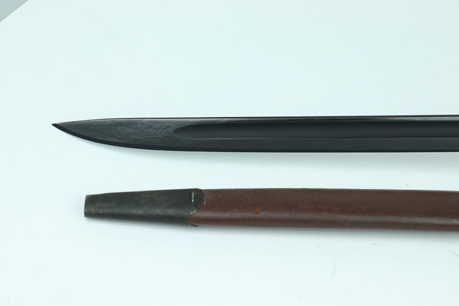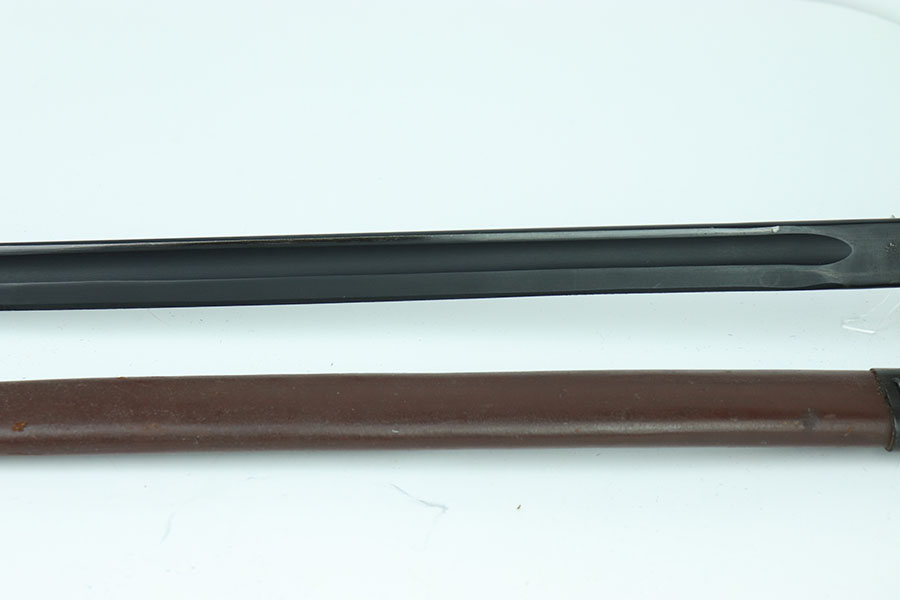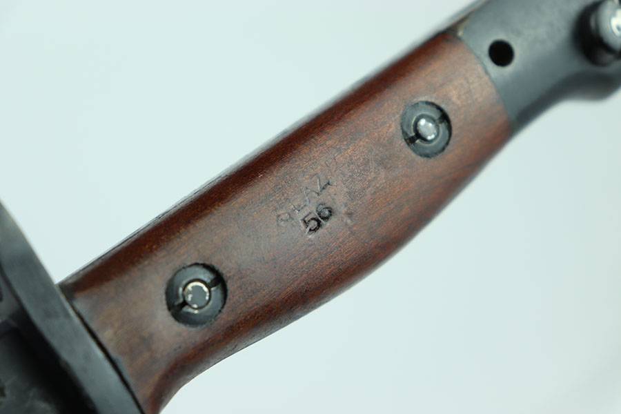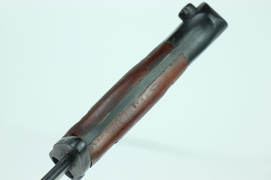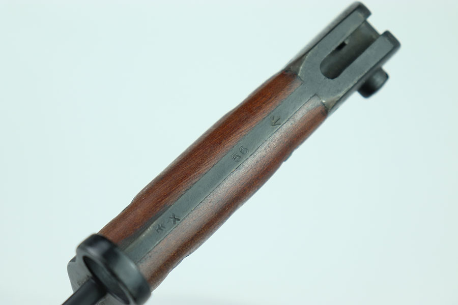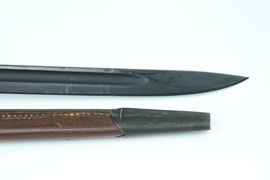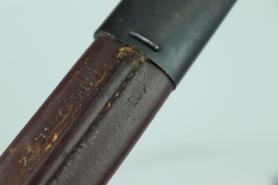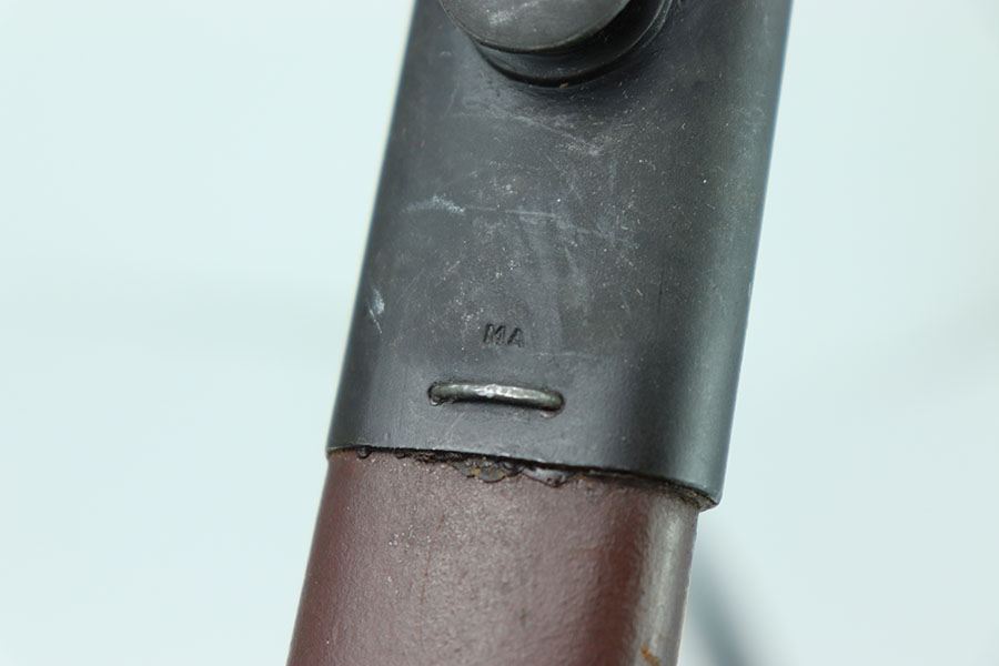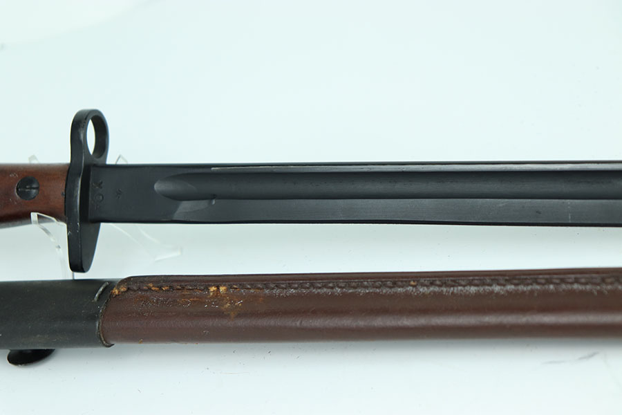 5/22/24 – This is an original and excellent condition Australian P1907 Lee-Enfield bayonet. This example comes with a very nice leather scabbard that has very little wear. The blade shows very little wear and retains its factory edge. MA 1907 is stamped on one side of the blade with other markings on the other. The hand guard has some minor wear but no rust or pitting. This example comes with an excellent wood handle that is marked “Slaz 56” on both sides indicating it is an Australian manufacturer. The pommel is in great shape. The bayonet is fitted with an excellent condition leather scabbard that is stamped on one side. At some point it appears this bayonet may have been refurbished due to the finish runs, one spot on the blade the other on the hand guard but this does not affect the items collectability.