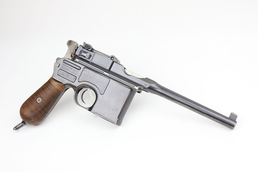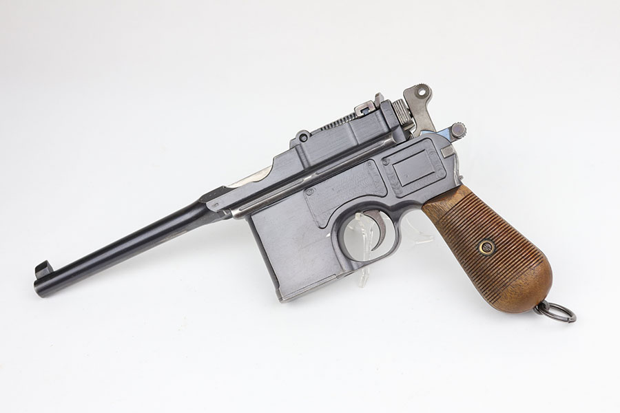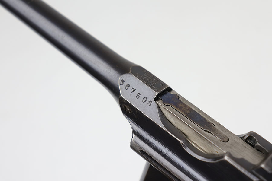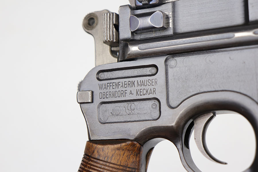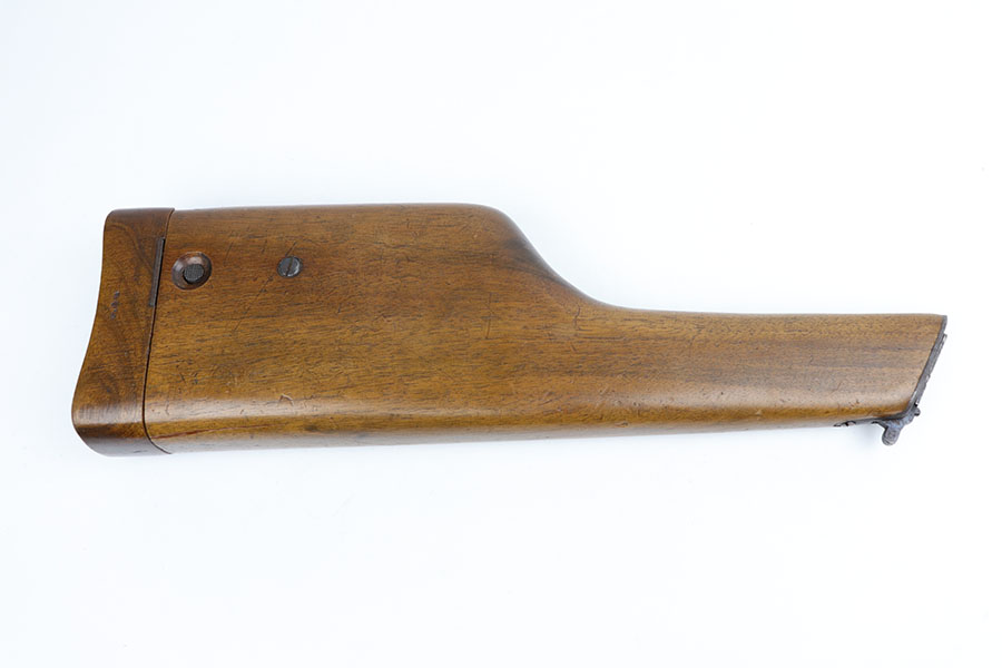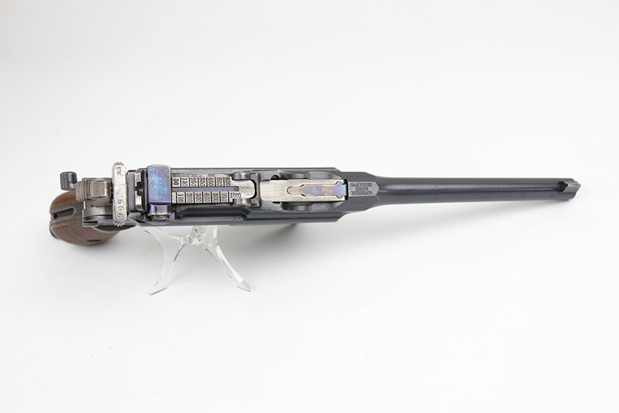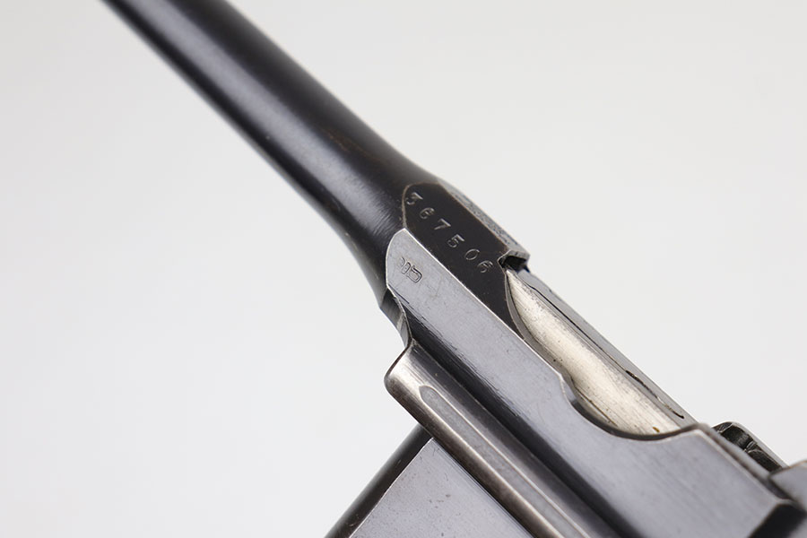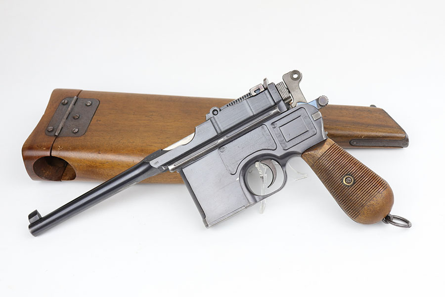 5/19/20 – This is one of the best examples of an early Mauser C96 Austrian Imperial contract rigs, made in 1916, and so marked on the chamber and the stock. This very uncommon gun retains around 94-95% of its original blue, with high edge wear and wear under the barrel from being stored in its matching shoulder stock. Austrian contract guns were taken directly from the Imperial German contract, and as a result, have a German acceptance stamp on the right chamber and on the shoulder stock. In addition, an Austrian Imperial proof, consisting of ‘W.n.’, an Imperial Eagle and the date were struck on the right diagonal flat over the chamber. Same proof was repeated on the lid of the shoulder stock. The gun is all matching and has an excellent bore and grips and generous amounts of fire blue on the small parts. Matching shoulder stock is equally nice with no cracks and an Austrian and German acceptance marks present. Just a great, all original set, that is very difficult to find in such outstanding condition.