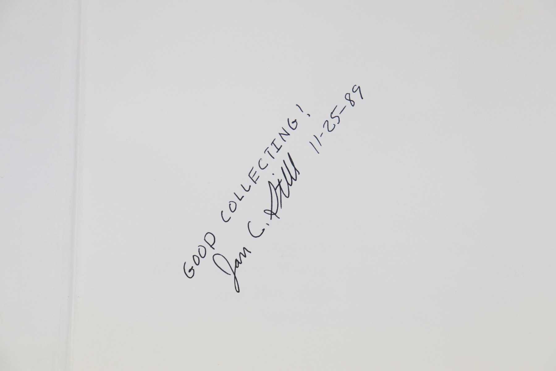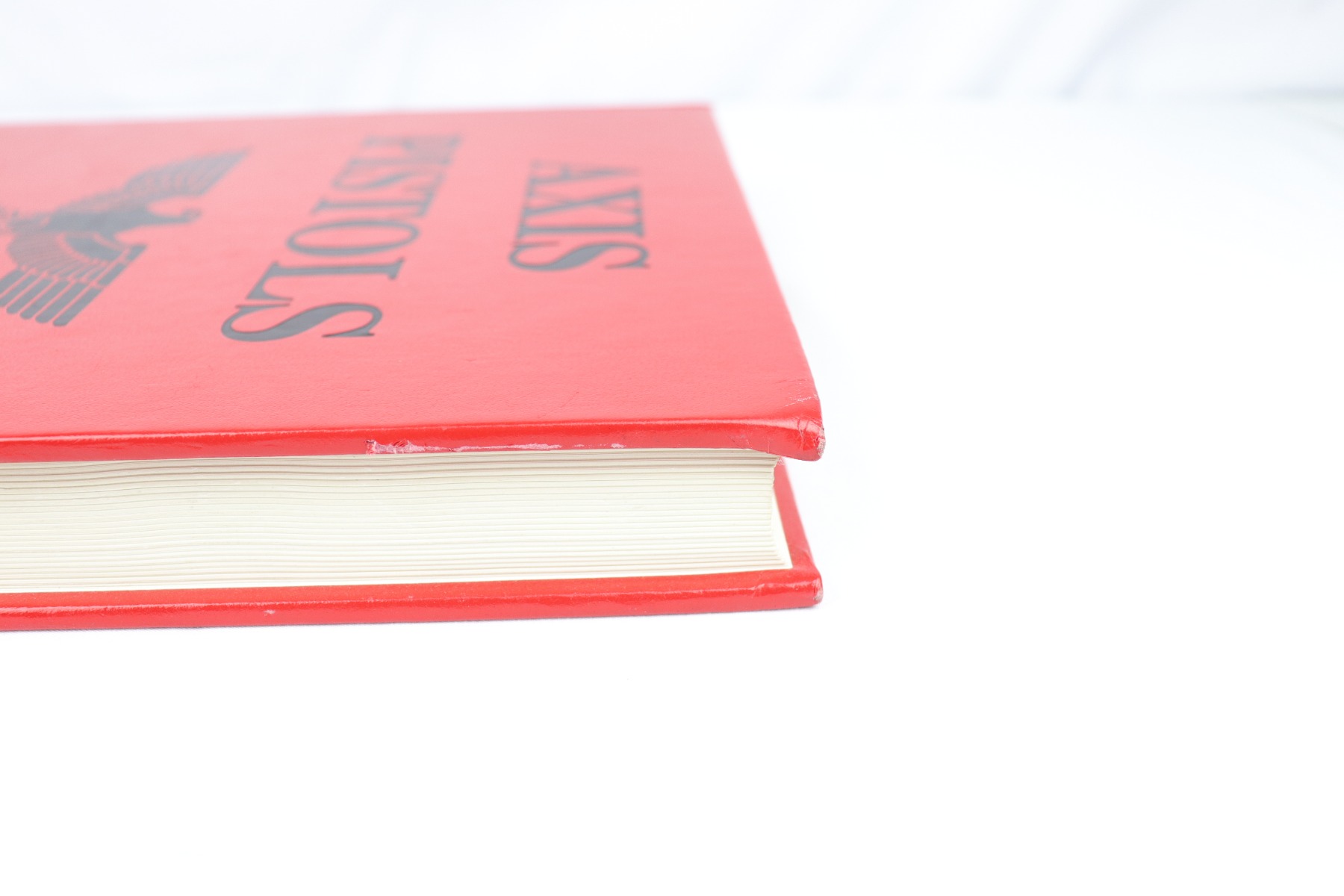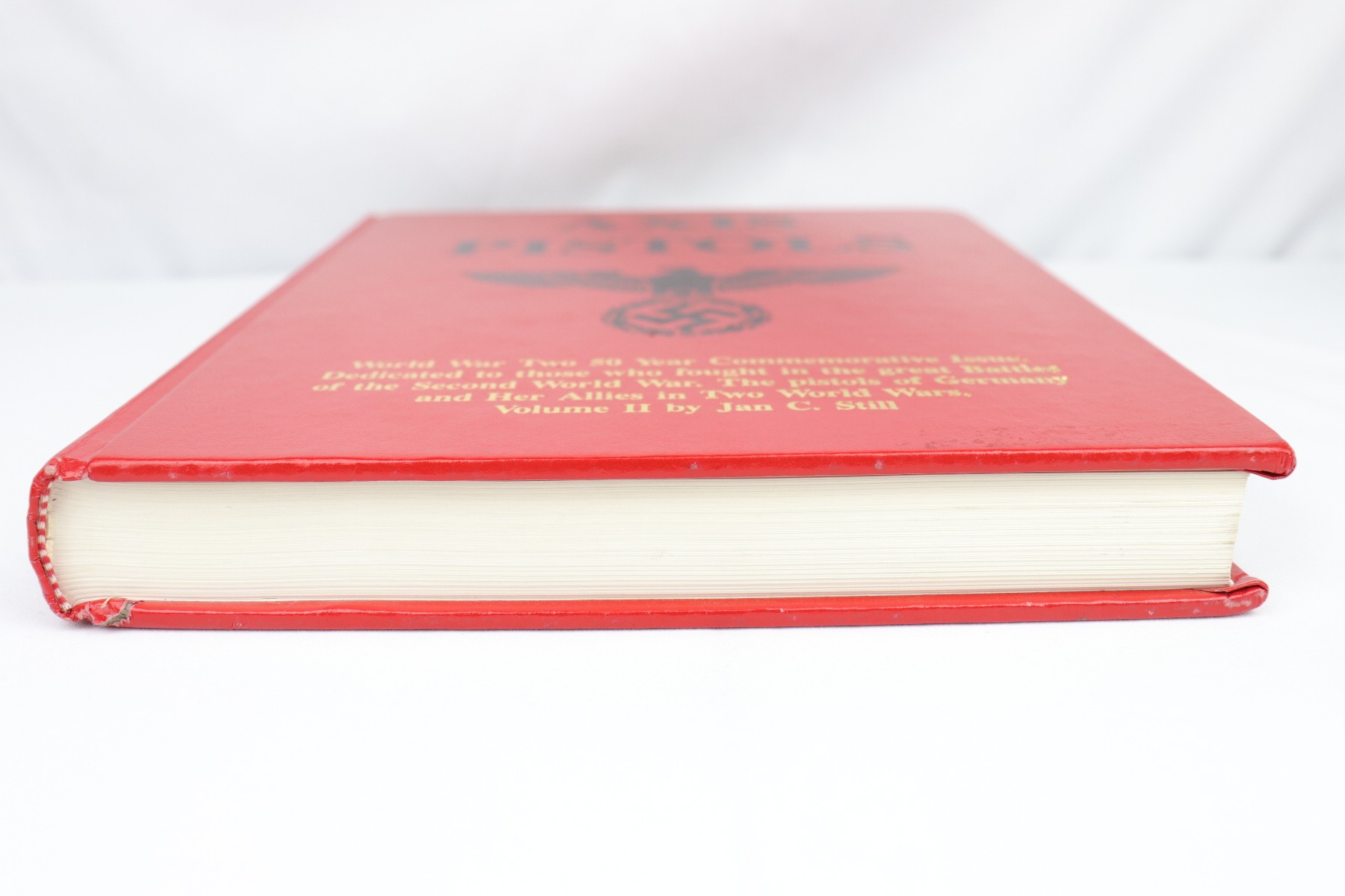 8/11/19 – This is a signed copy of Axis Pistols by Jan Still complete with a price guide. This book covers the Army, Luftwaffe, Kreigsmarine, police and NSDAP pistols of Nazi Germany and of her Axis allies. There are more than 300 pistol variations photographed and described in detail. There is a small scratch on the top right leading corner of the book cover and a small tear on the bottom of the binding. There also a small ink stain on the price guide near the binding.