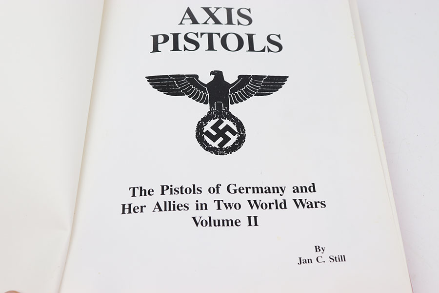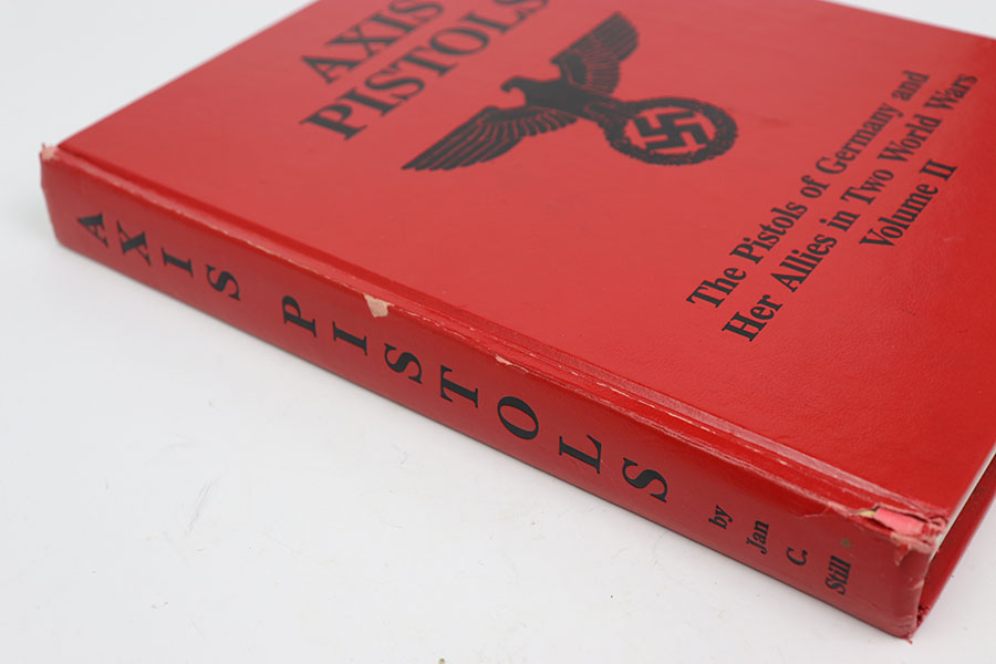 7/26/24 – This is an original copy of Jan C. Still’s Axis Pistols hardcover book. An excellent resource on WW2 German handguns and is a must-have for Axis pistol collectors. This copy is in great+ condition due to the minor damage to a few of the corners as seen in the photos. All interior pages are in “Like New” shape and completely intact.