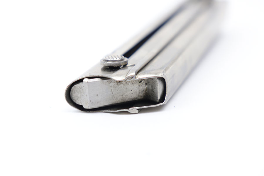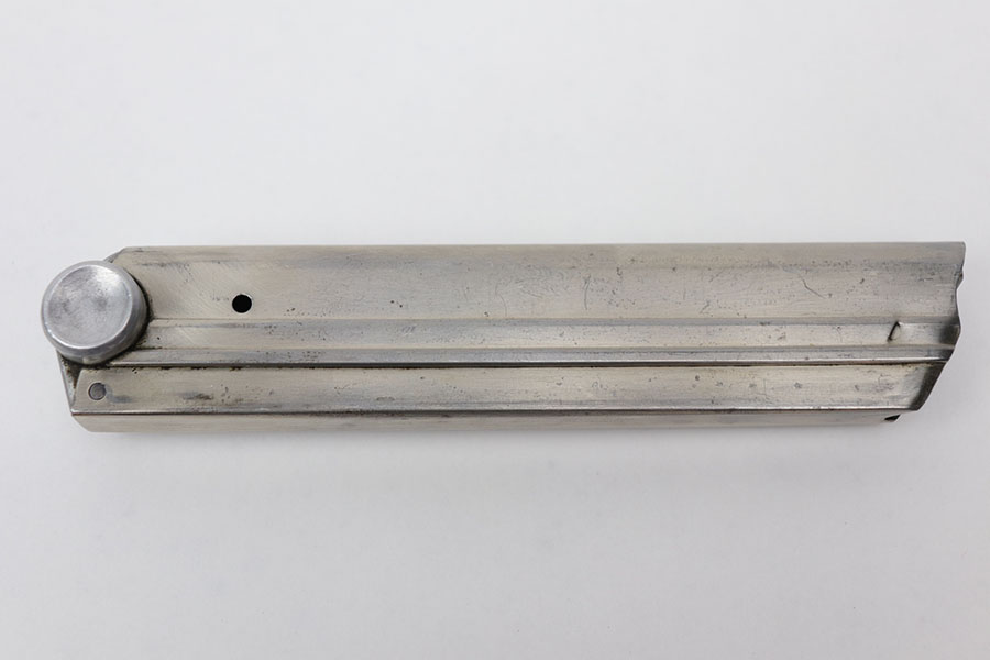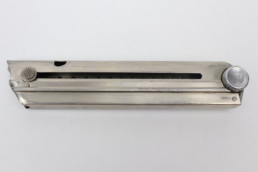 11/6/20 – This is an excellent, original and early WW2 production K Date luger magazine from 1934. The base of the magazine is serial numbered with an “a” letter suffix, “+” sign, and b/90 proof stamp. Excellent tube with minimal signs of aging, and no rust or pitting. Fully functional spring.