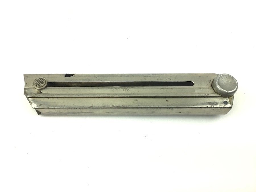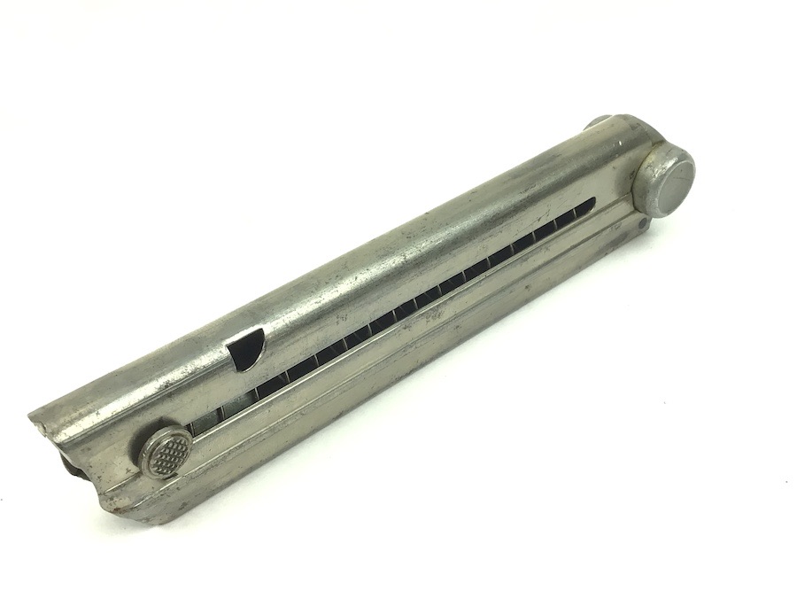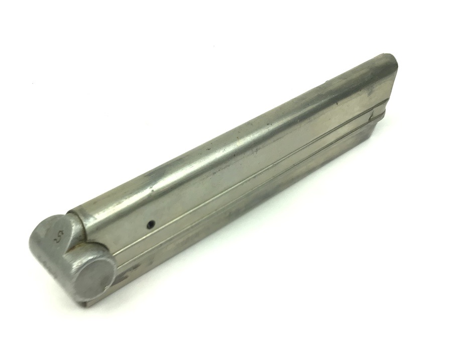 6/13/22 – This is an original B/90 proof stamped K Date Luger magazine. The base is serial numbered “5237” along with the Gothic “S” and the B/90 proof stamp. B/90 proof is only found with K Date lugers. The magazine has some mild discoloration but no rust or pitting and a strong, fully functional spring.