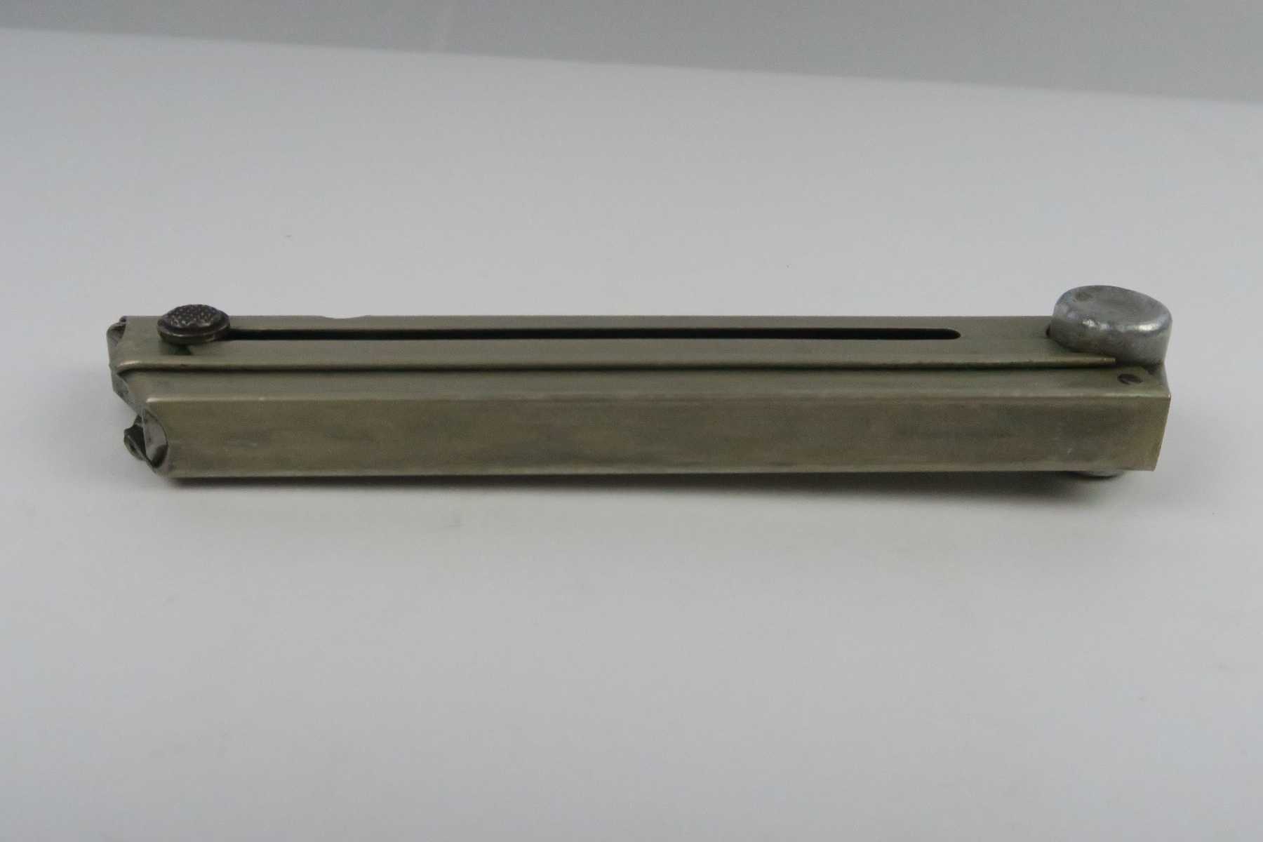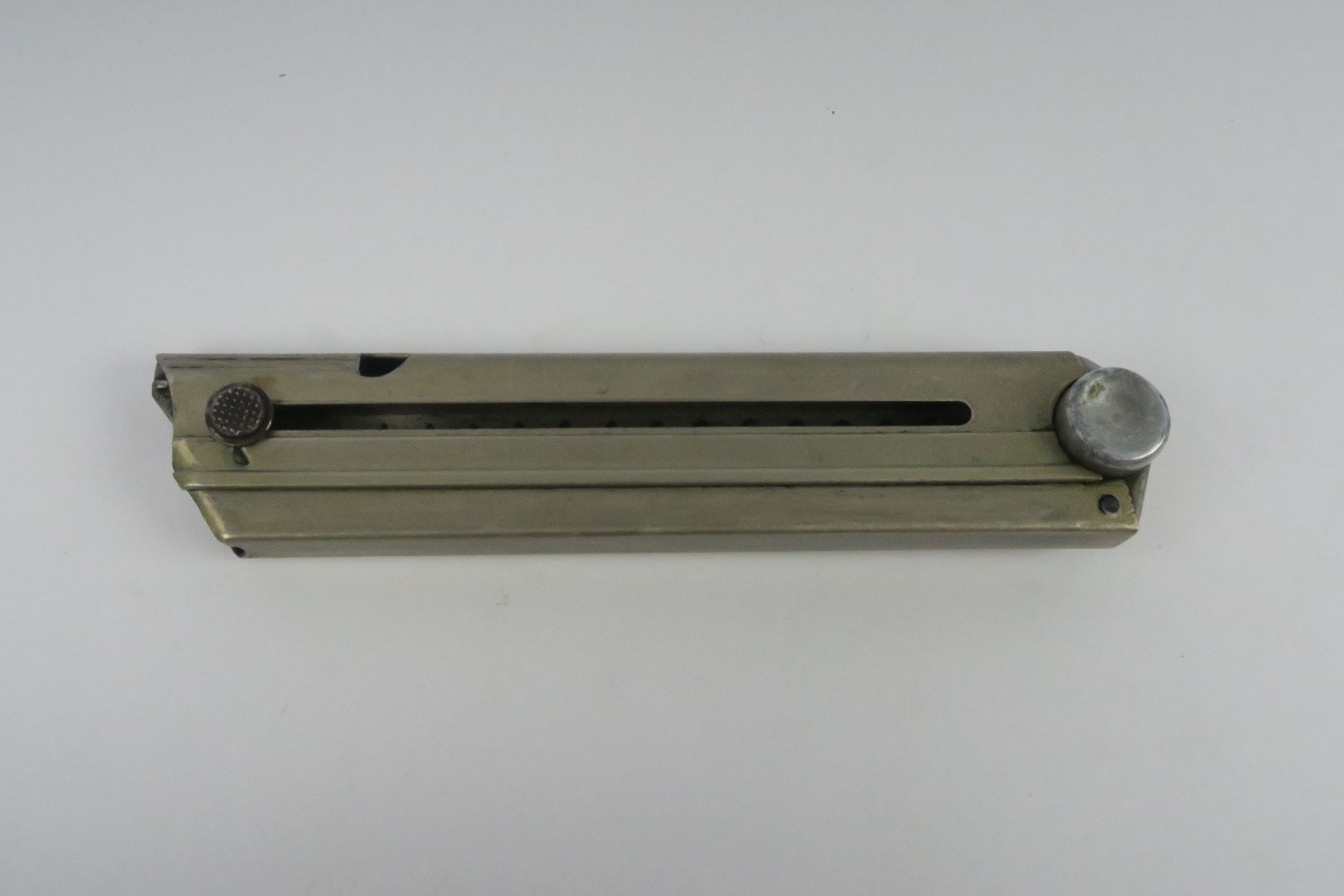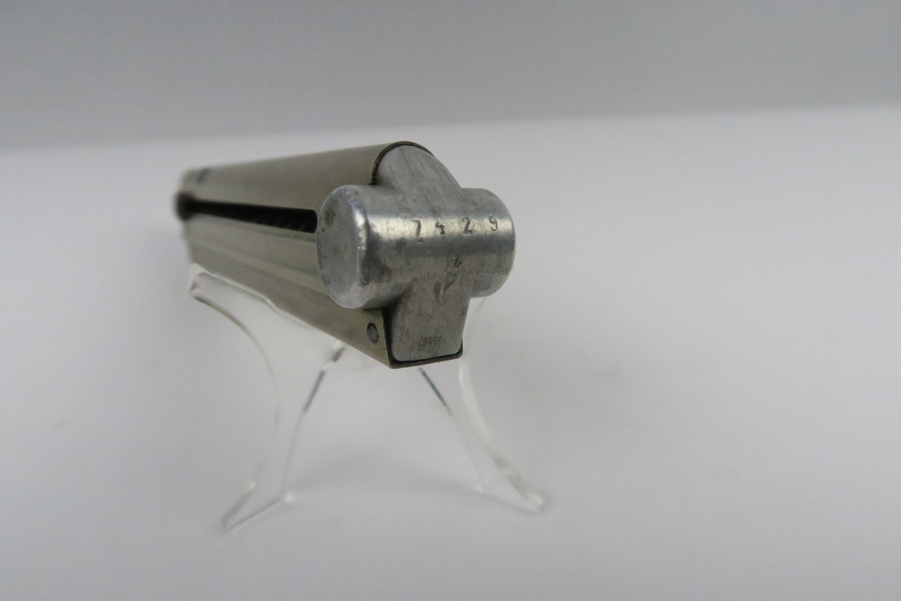 1/24/18 – This is an original G Date Luger magazine with a B/90 proof stamp on the base. The B/90 proof is seen on G Date and K Date Lugers, but K Date Lugers didn’t have letter suffixes except for a few thousand in the a block (I think the latest recorded K Date serial is 12xx a). This magazine would be for an early G Date since it’s still in the “a” block, but past the first 1500 serial numbers. The base is serial numbered 7429 a with a “+” sign, making this the spare magazine. The magazine is in excellent, fully functional condition. Guaranteed original.
