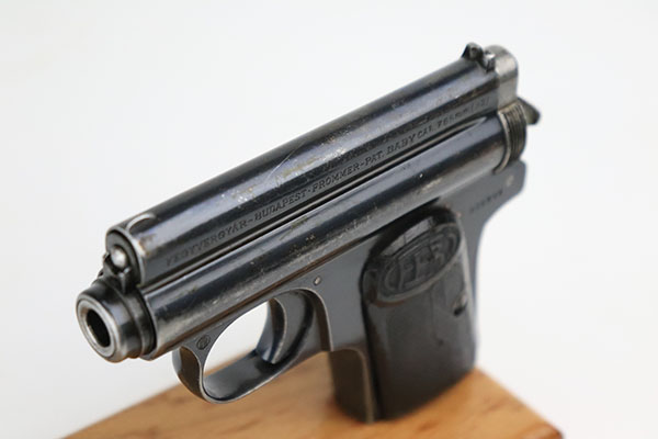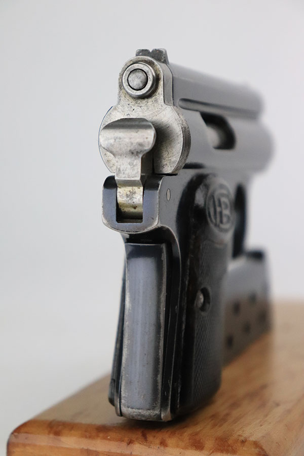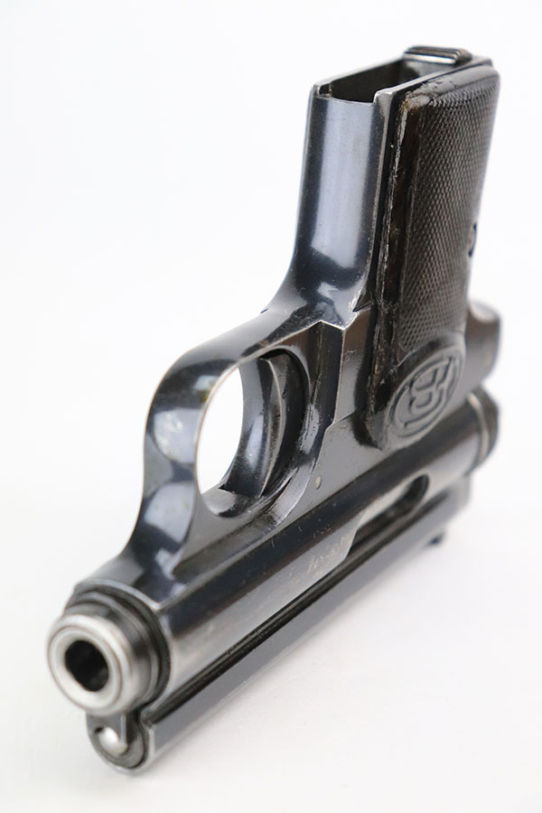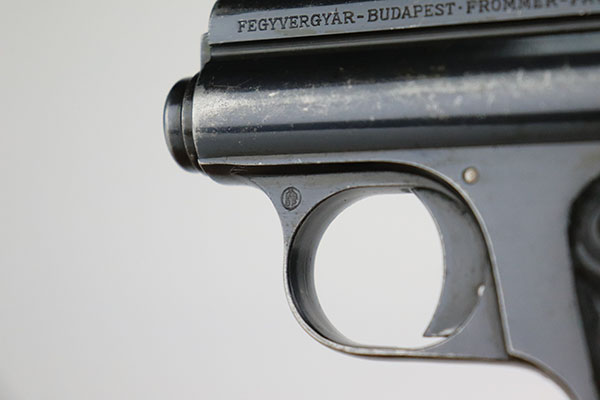 10/4/22 – This is a very nice example of a scarce Hungarian “Baby” Frommer Stop Model 1912 manufactured in Budapest and chambered in 7.65mm. These are just small versions of the original Frommer Stop design. This one is all matching and has retained roughly 85% of its original bluing. There is light scratchy wear on the round edges of the frame and thinning on the back strap. Comes with period-correct grips (light cracking and tiny chipping on both sides) and one proper magazine. Excellent bore with great rifling.
