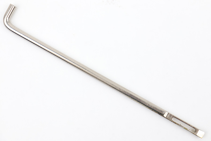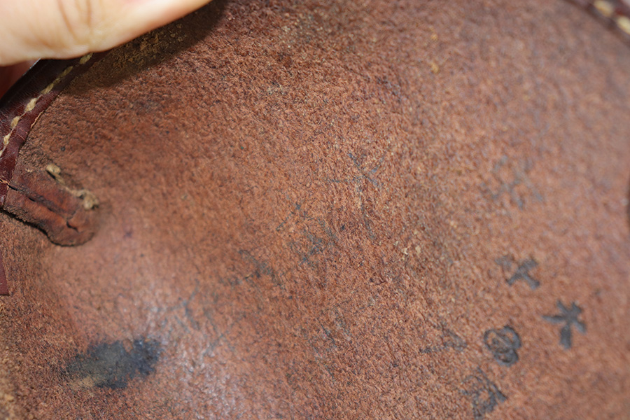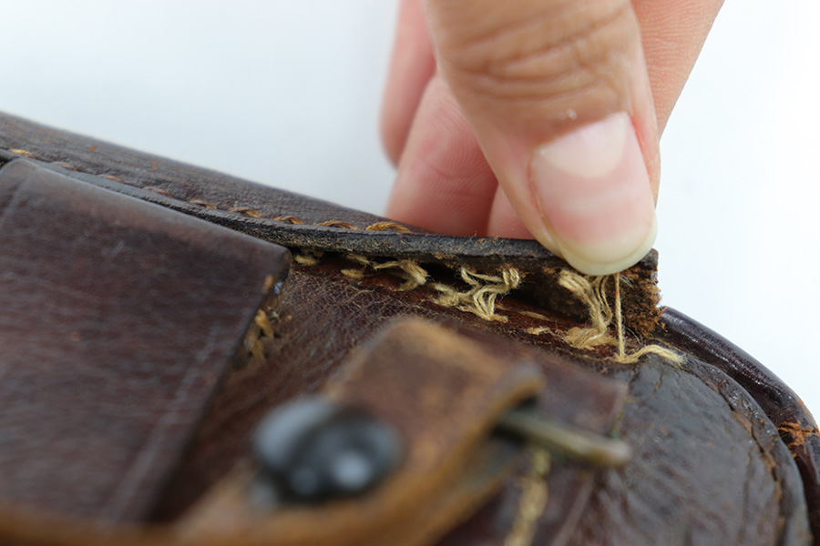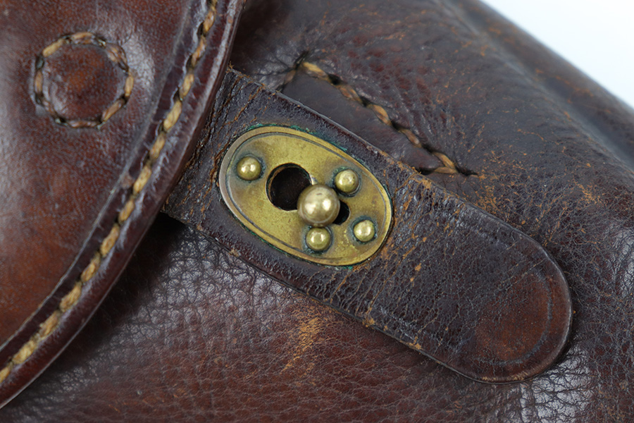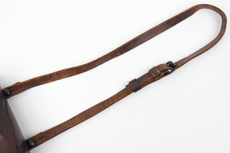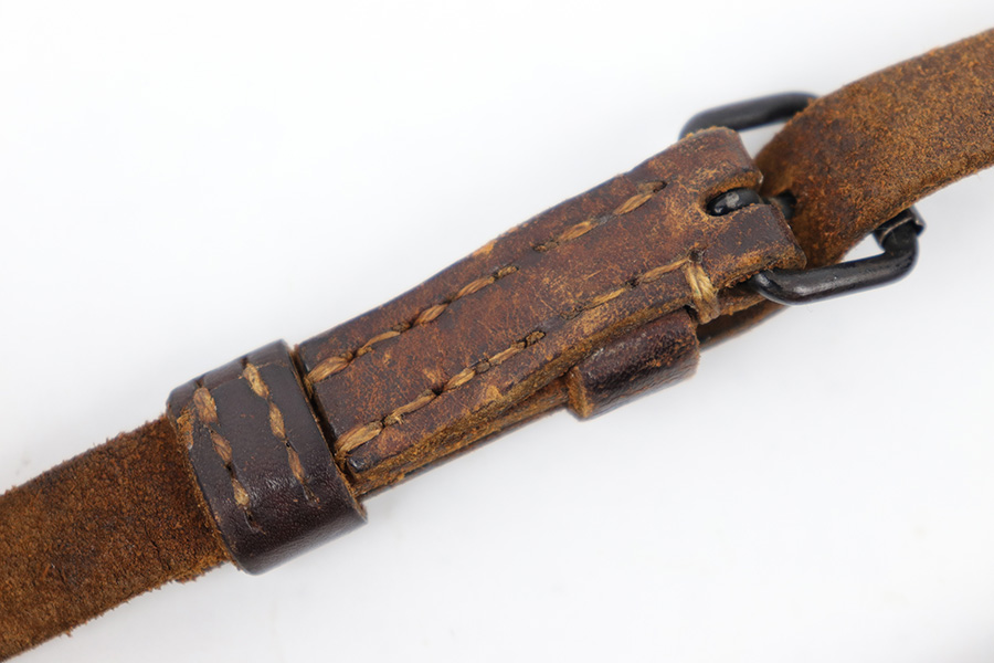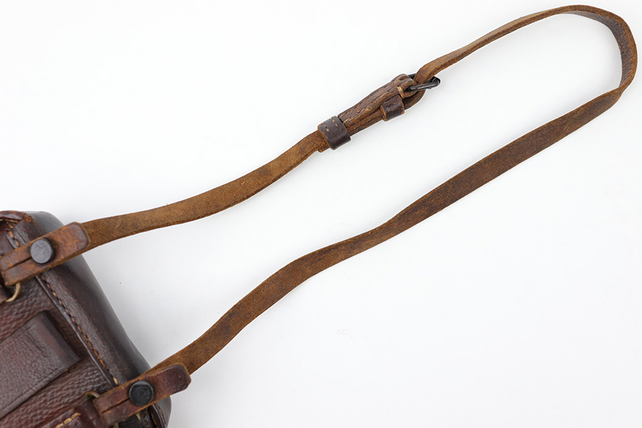 4/4/23 – This is an extremely rare, all original leather holster for a Baby Nambu pistol. The holster is a soft-flap 2nd variation style with an original leather shoulder strap attached. Also comes with an original Baby Nambu cleaning rod. The holster is in great overall condition with very nice leather that has normal pliability and some typical surface wrinkling on the front exterior leather. The interior lid has a manufacturer’s ink stamp as shown. The interior leather is clean throughout, including the leather ammunition pouch with individual loops for holding spare rounds of ammo. This pouch is excellent internally and externally. The stitching is all original, however there are a few loose and missing stitches on the back where the lid attaches to the main body of leather. Otherwise the stitching is excellent. The shoulder strap has surface wrinkling and light cracking throughout, but this isn’t deep into the leather and overall the shoulder strap is in great shape. The cleaning rod has a nickel finish and is in excellent condition. Measures about 13.5cm long.